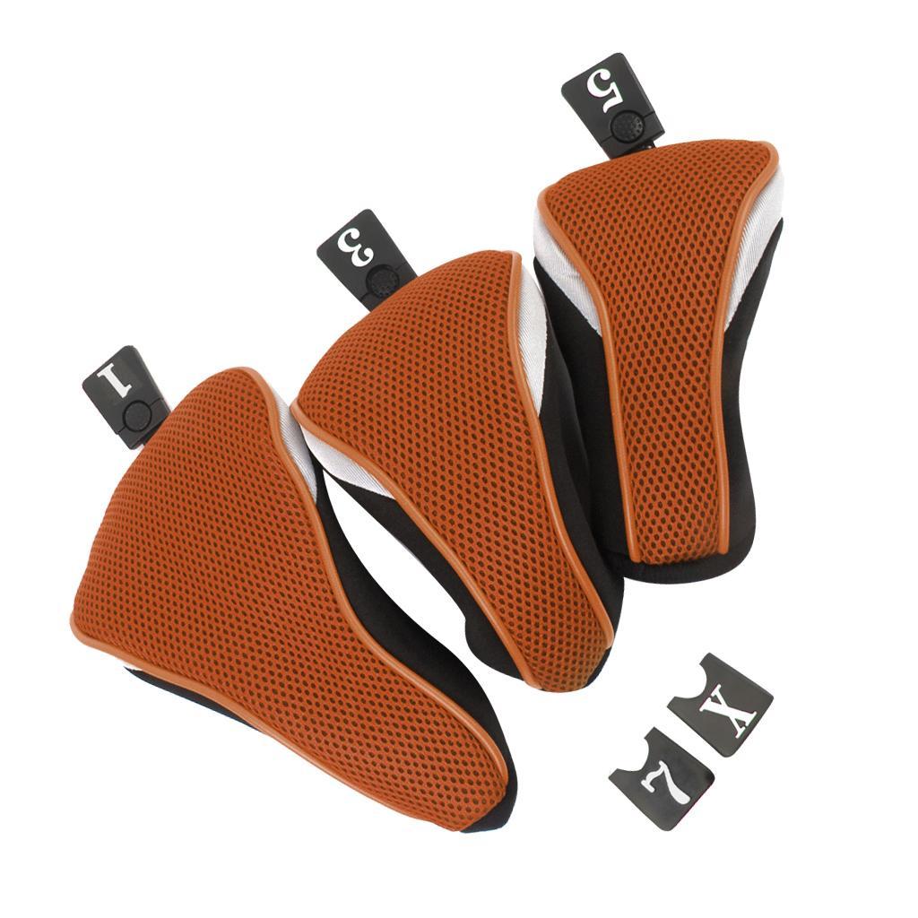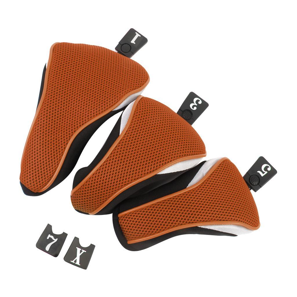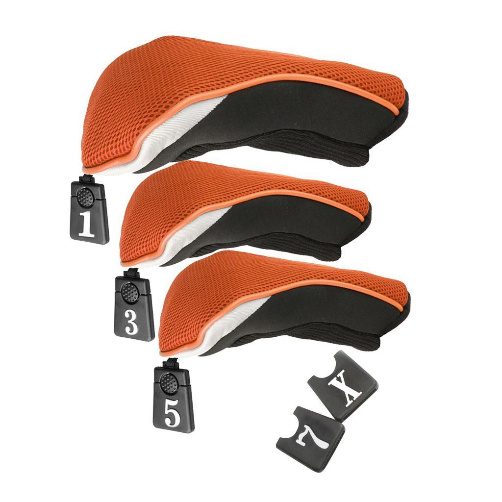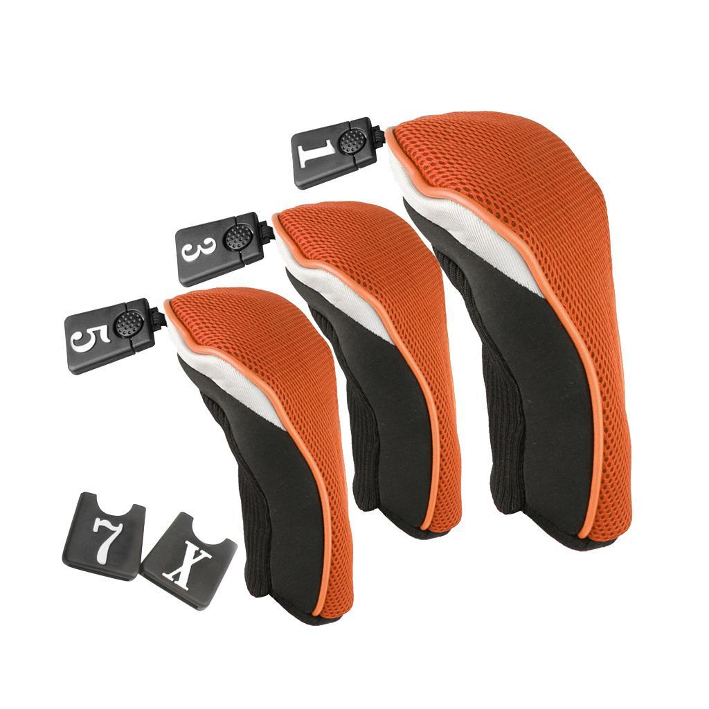 3Pcs Soft 1 3 5 Wood Golf Club Driver Headcovers Head Covers Set - Orange Black