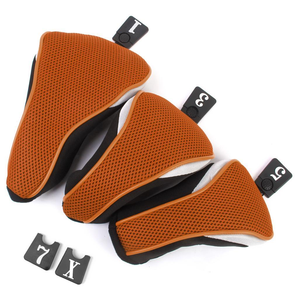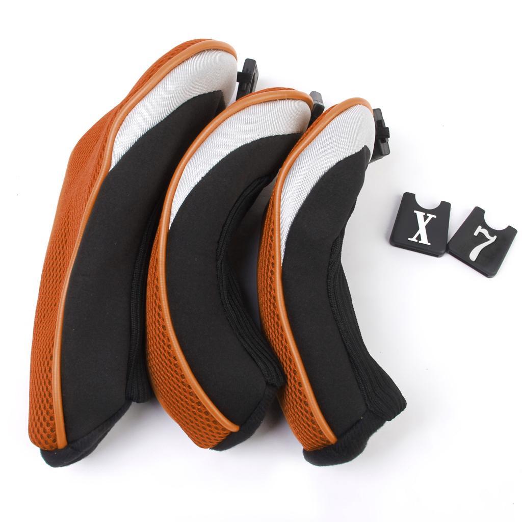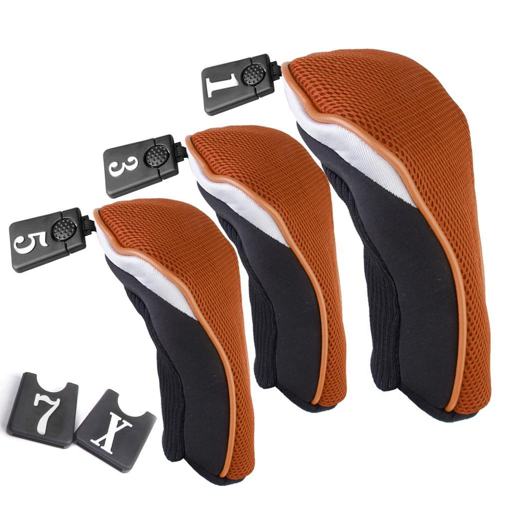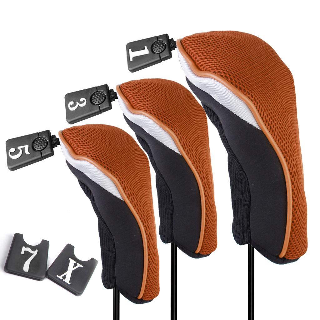 3Pcs Soft 1 3 5 Wood Golf Club Driver Headcovers Head Covers Set - Orange Black