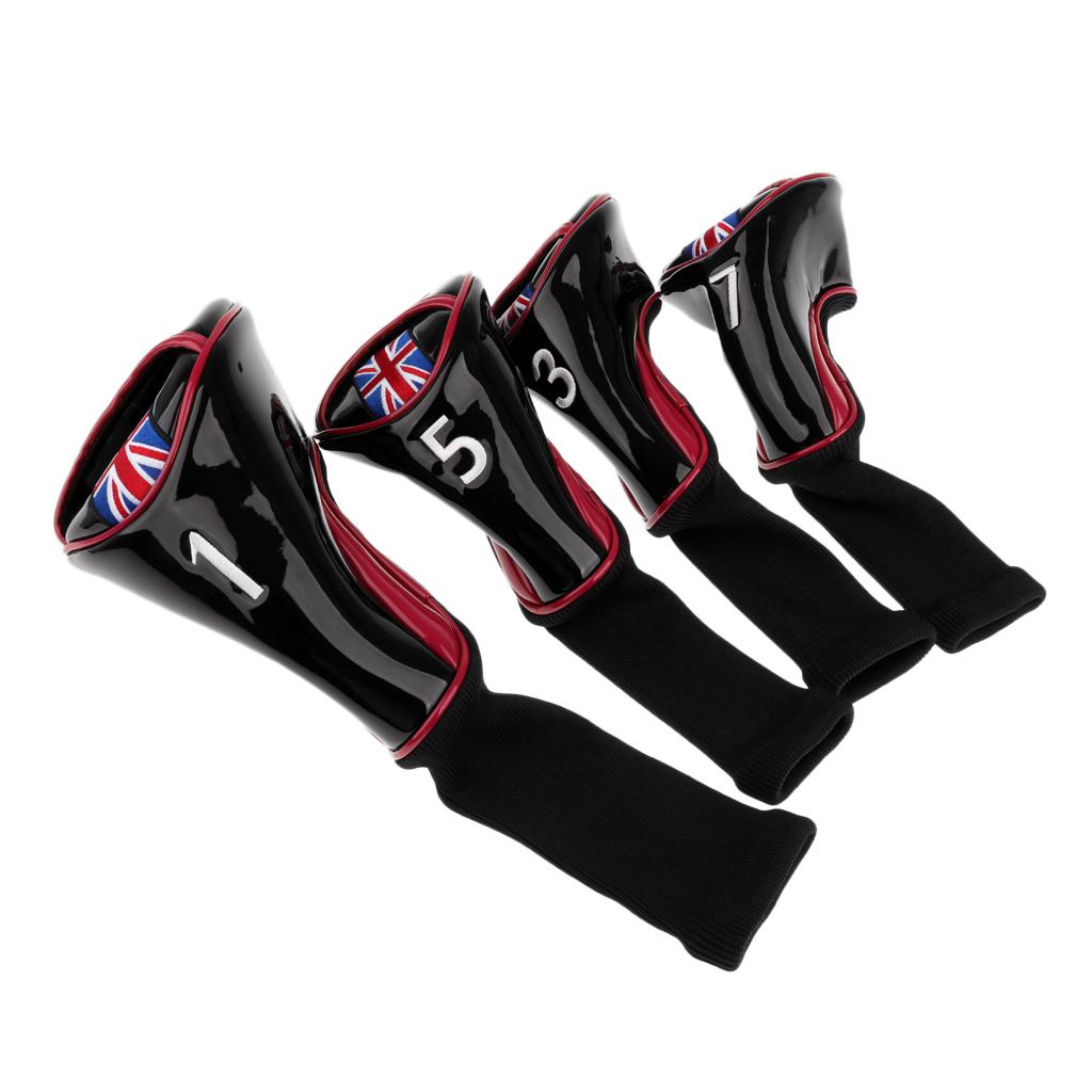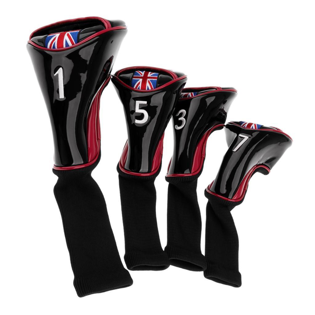 4pcs Long Neck Golf Club Head Cover Wedge Iron Protect Headcover Red Black