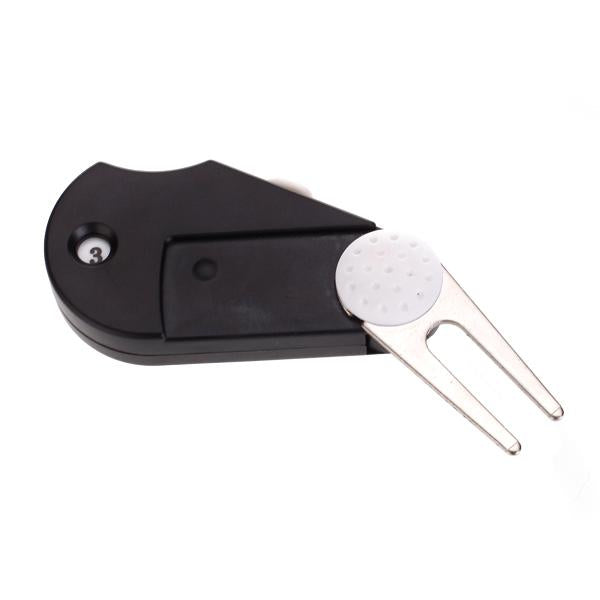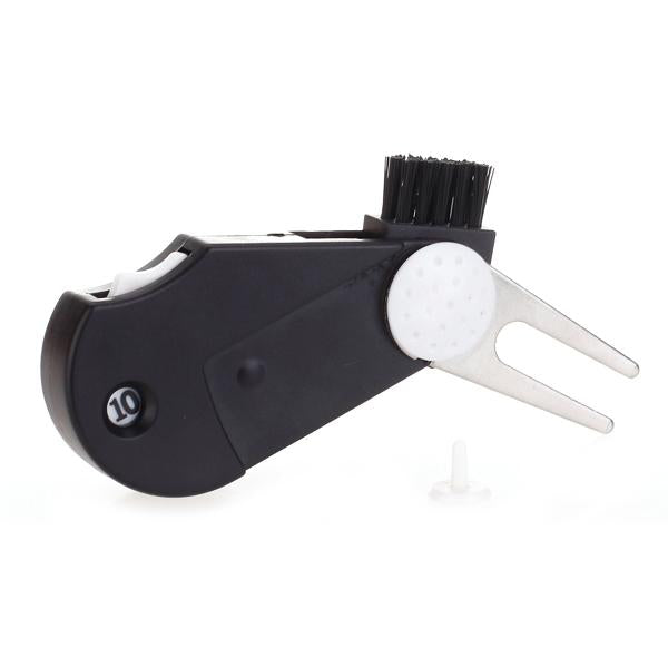 Lightweight 5-in-1 Golf tool has retractable brush, detachable ball marker, repairs divots, counts strokes and cleans grooves. This Multi-functional Golf tool can be easily clipped to belt or pocket. This 5-in-1 Golf tool is a indispensable accessory for golfler