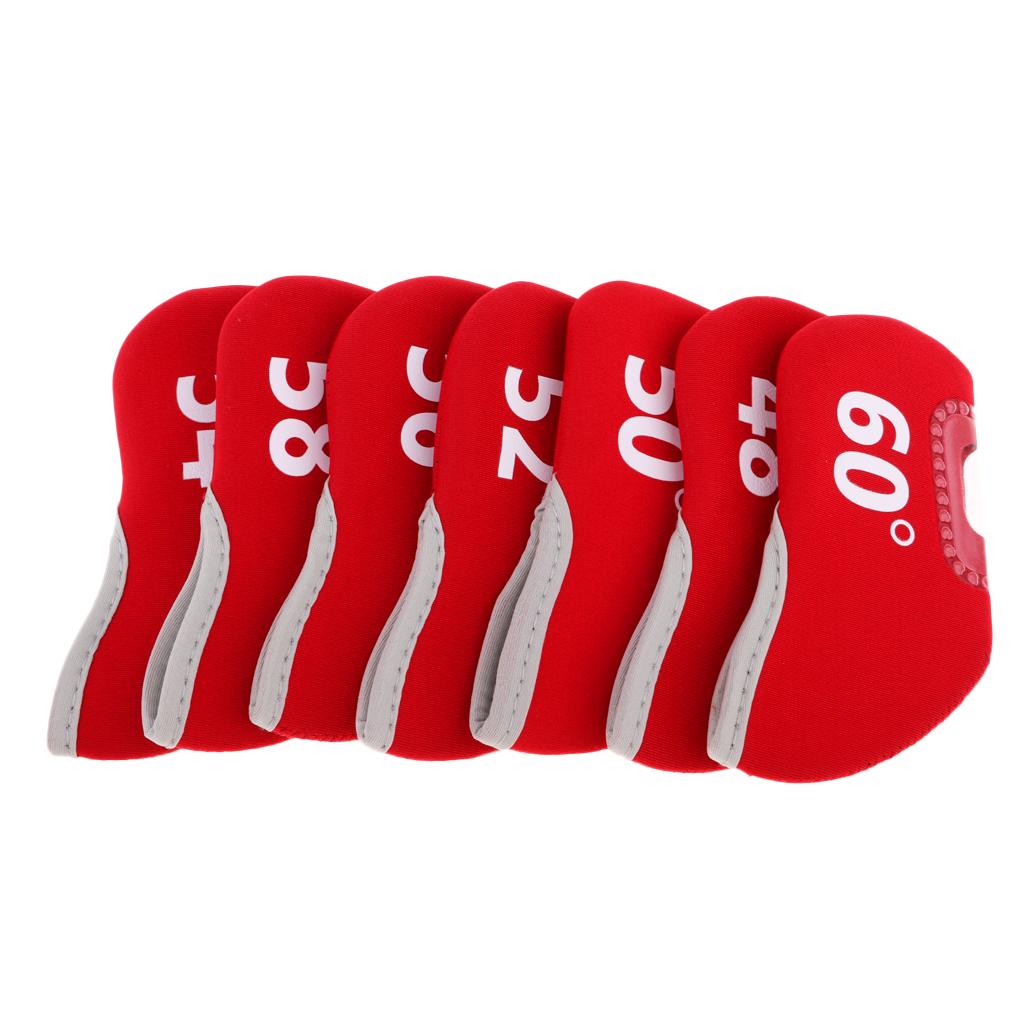 7 Pieces Golf Club Iron Putter Headcover Head Cover Protector Set Red