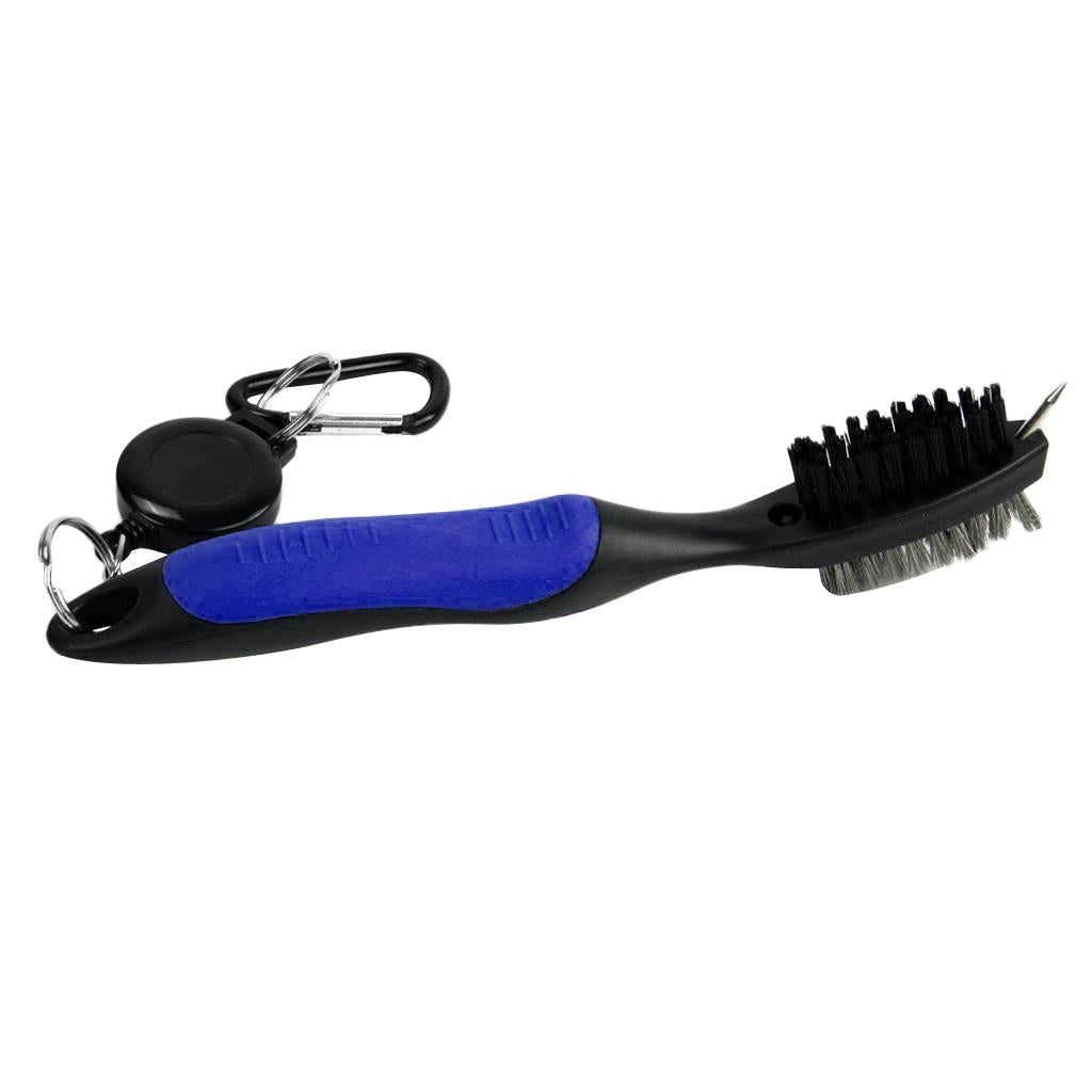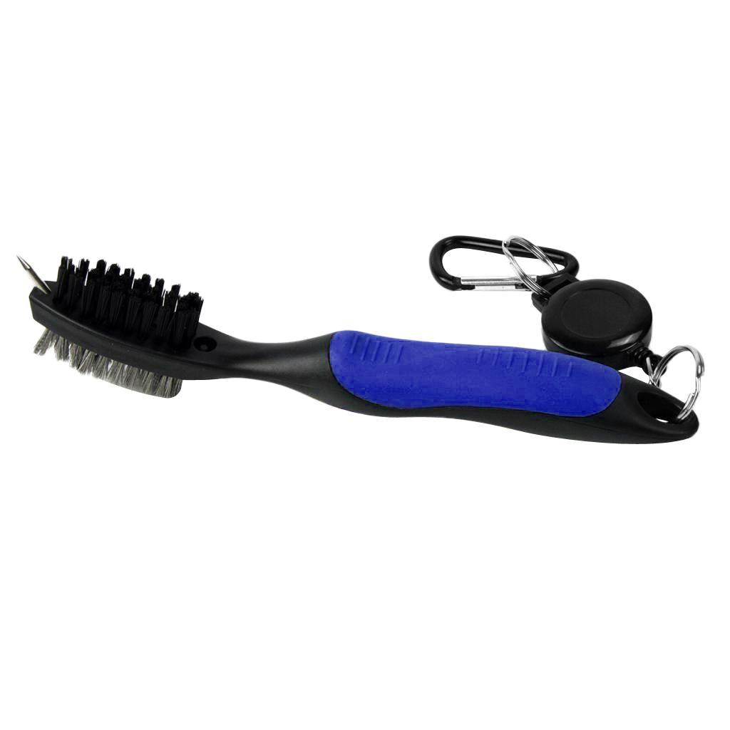 Dual Bristles Golf Club Brush Cleaner Ball Cleaning Clip Groove Tool Blue