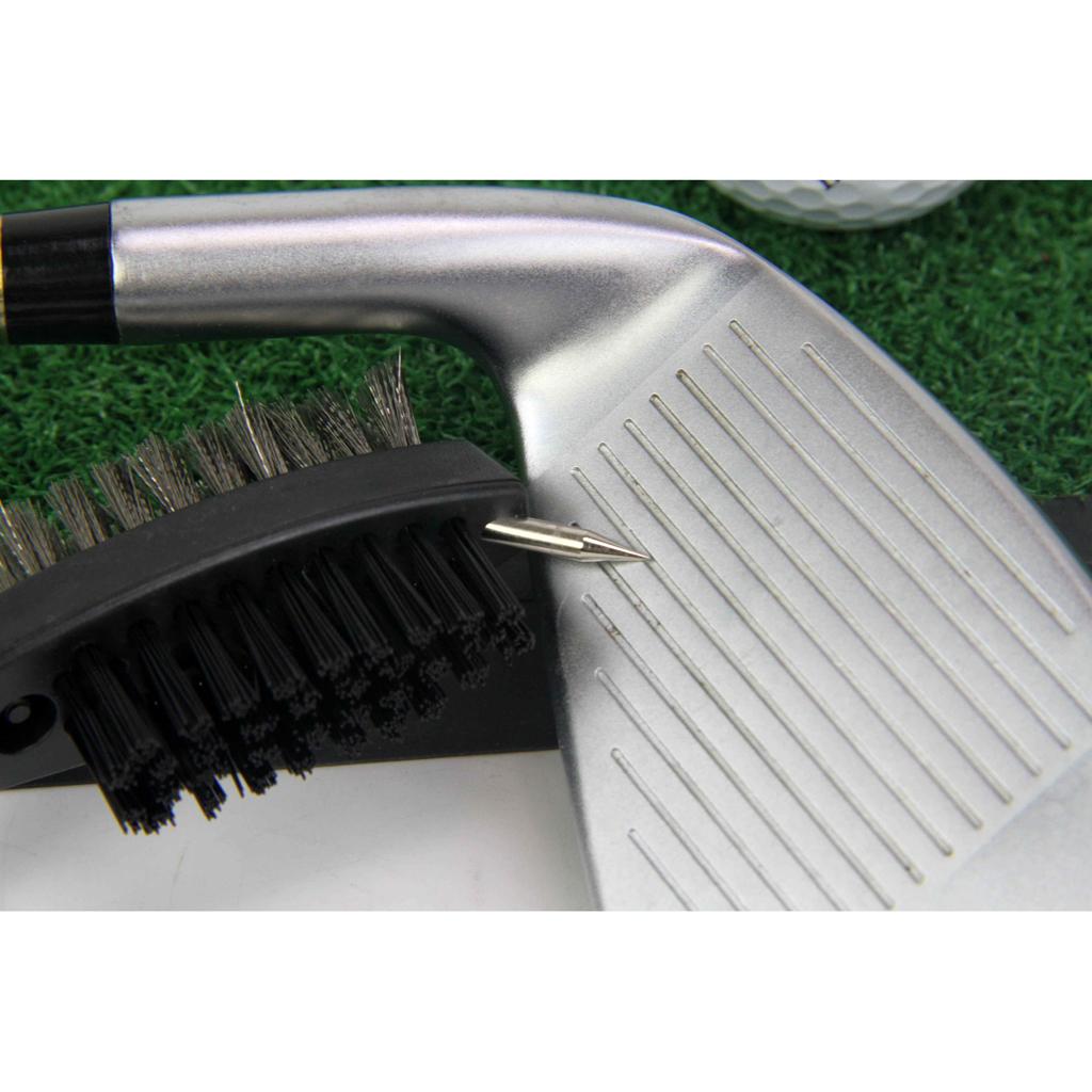 3 in 1 Golf Club Brush: Nylon bristles for cleaning woods. steel bristles for cleaning iron surface. Spike for most stubborn dirt and grime in grooves.