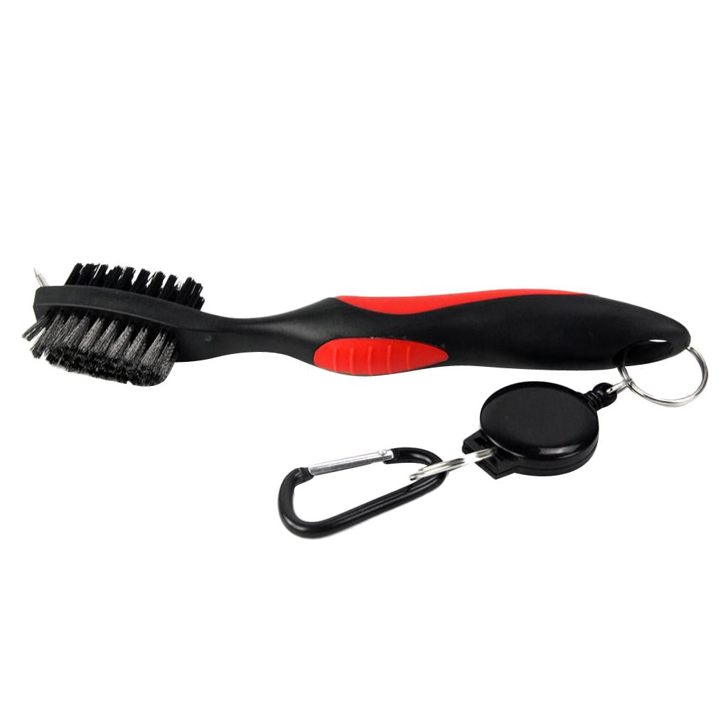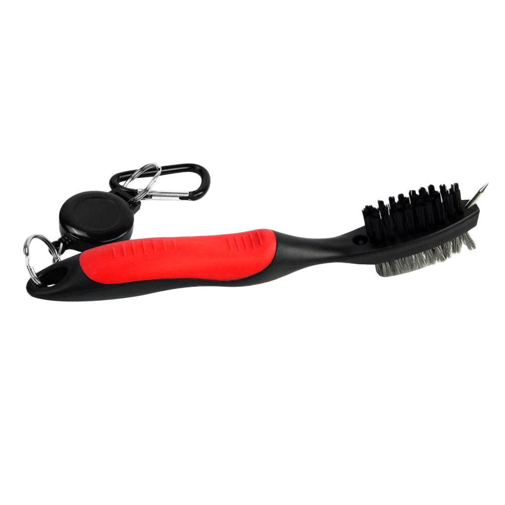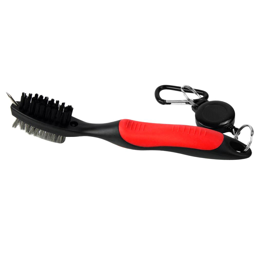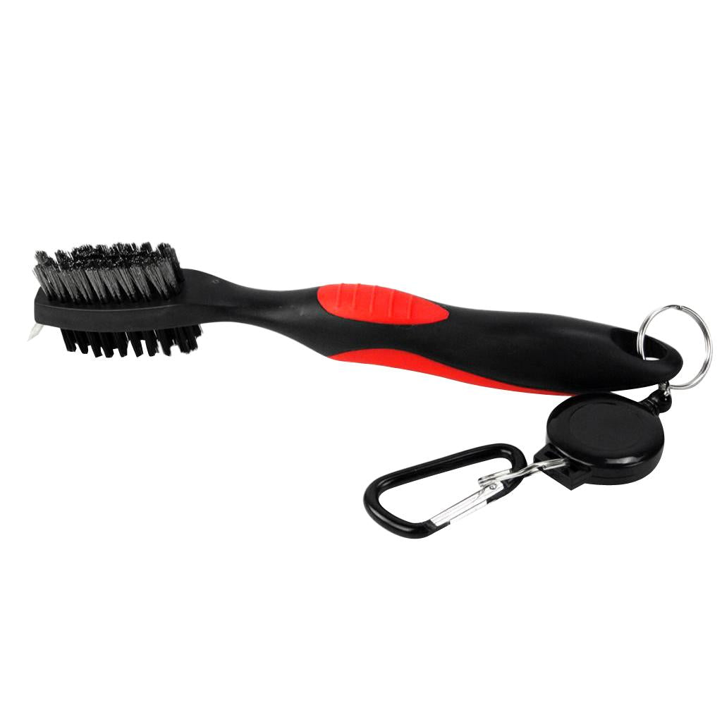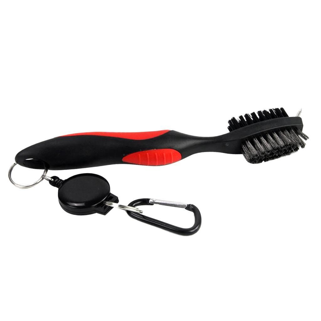 Dual Bristles Golf Club Brush Cleaner Ball Cleaning Clip Groove Tool Red