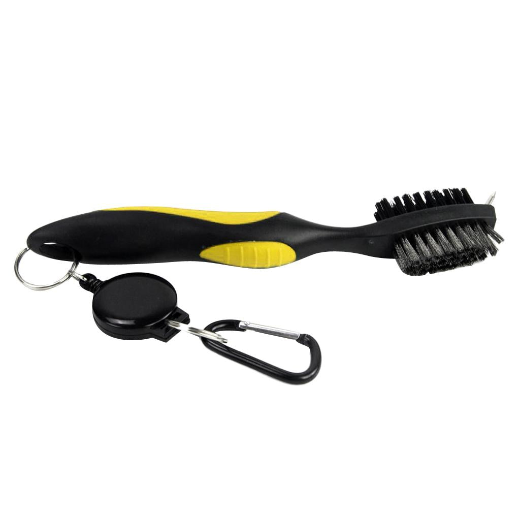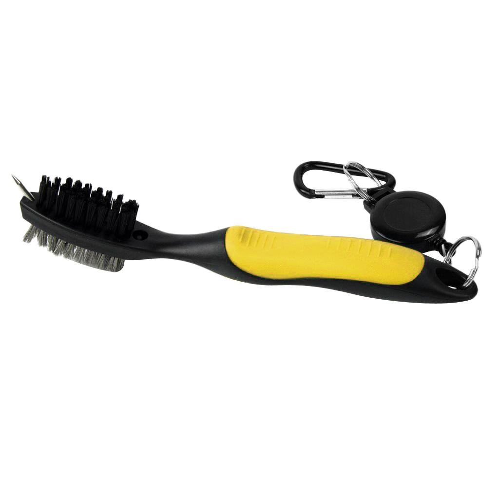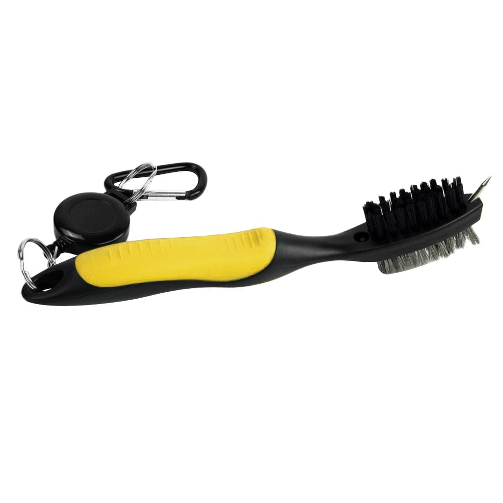 Dual Bristles Golf Club Brush Cleaner Ball Cleaning Clip Groove Tool Yellow
