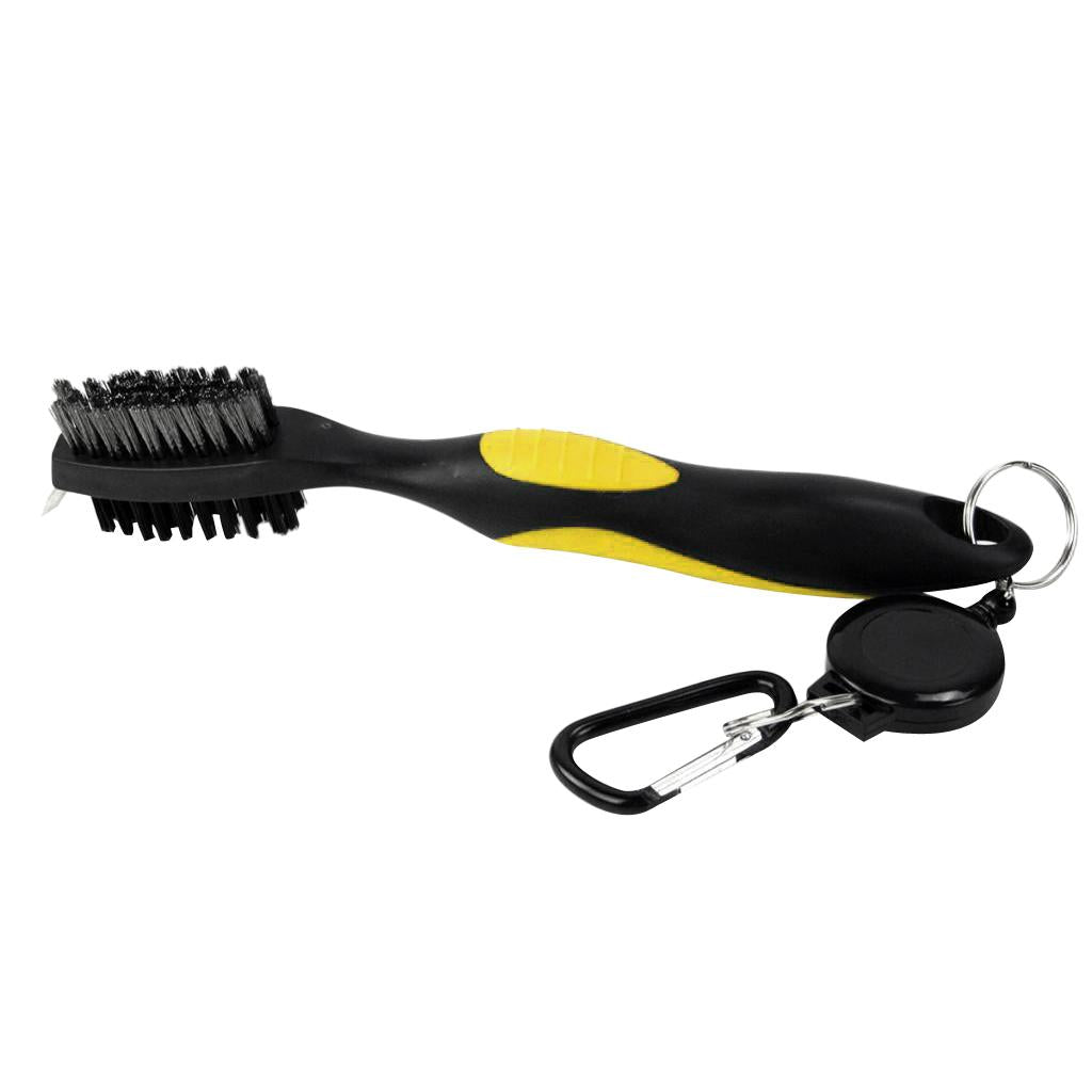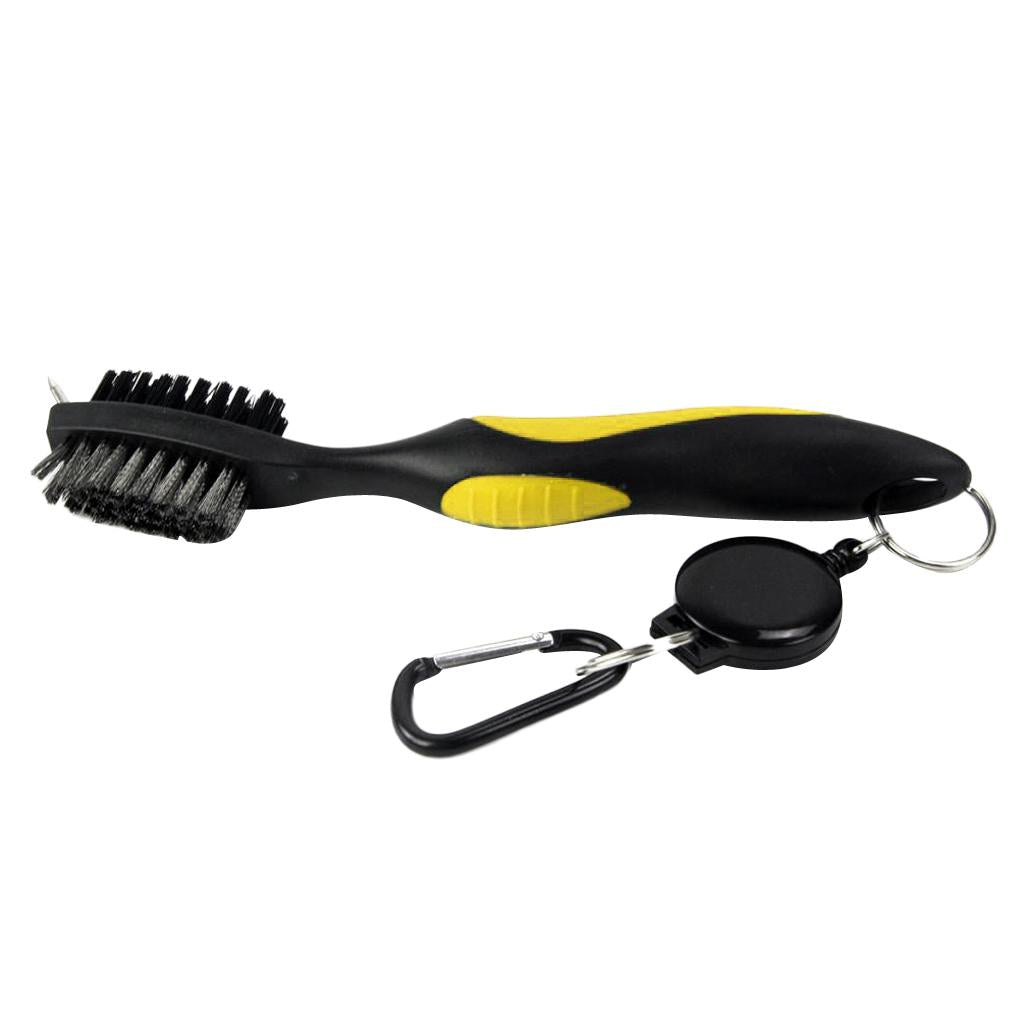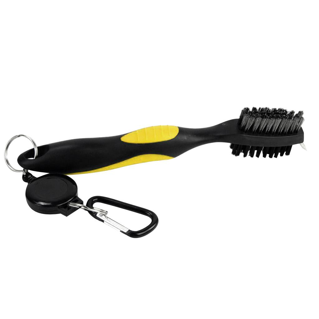 Dual Bristles Golf Club Brush Cleaner Ball Cleaning Clip Groove Tool Yellow