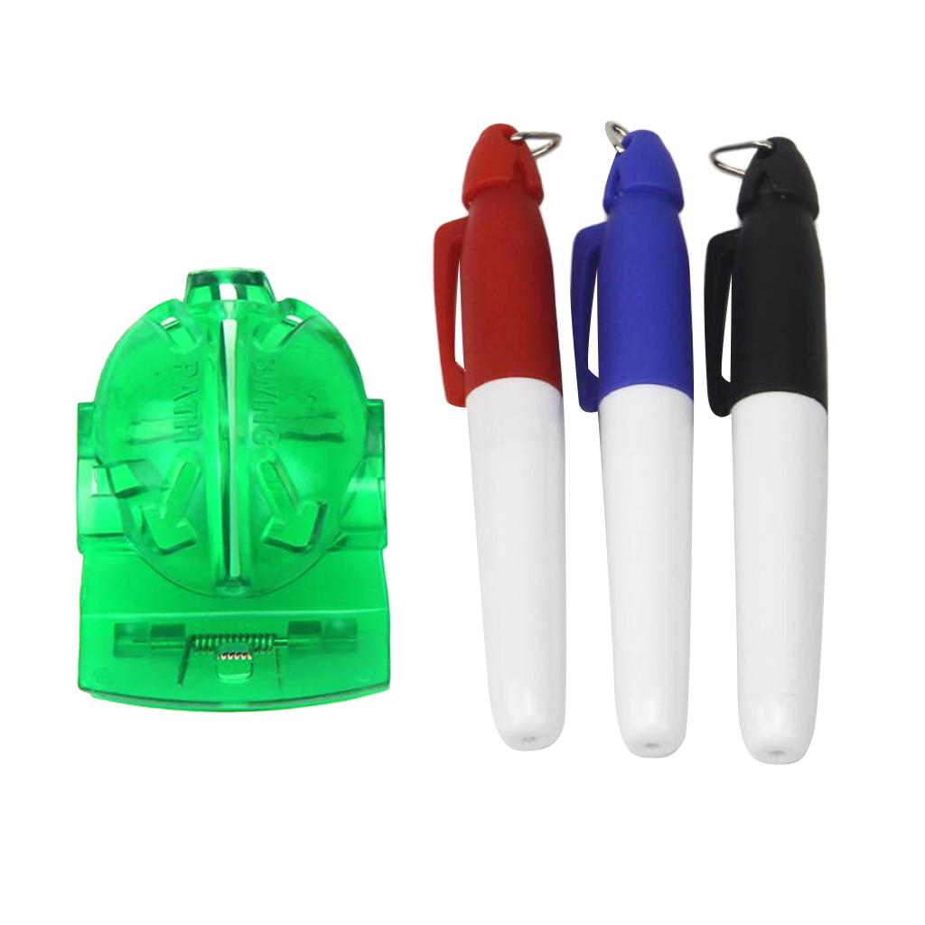 Golf Ball Liner Marker Line Drawing Alignment Tool with 3 Markers Green A