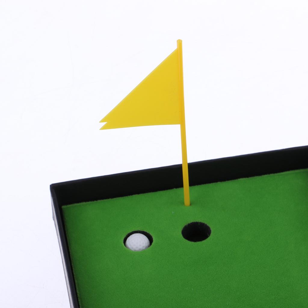 Comes with two golf balls, a flag, putting green, for killing time by mini golf play