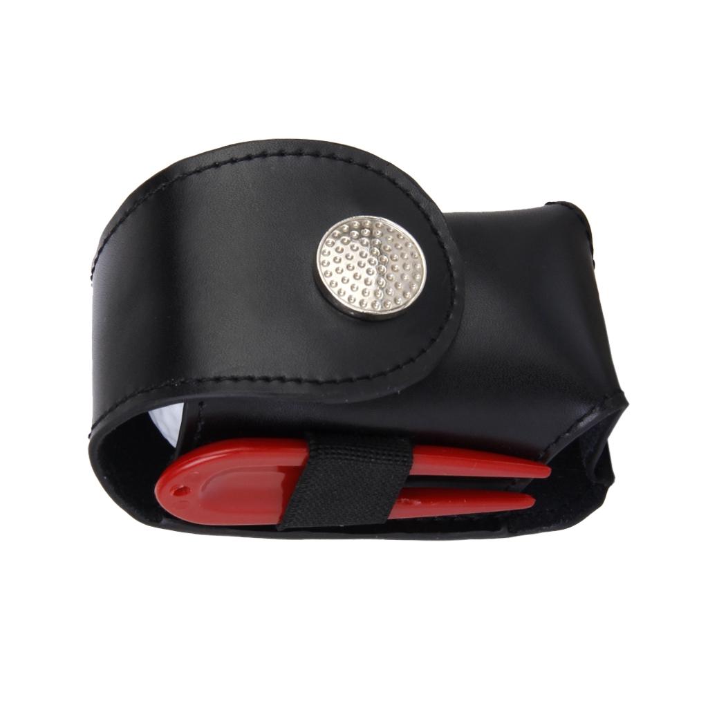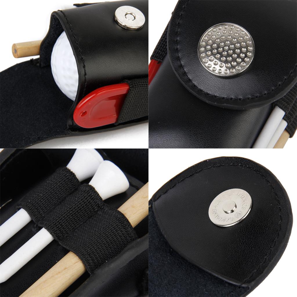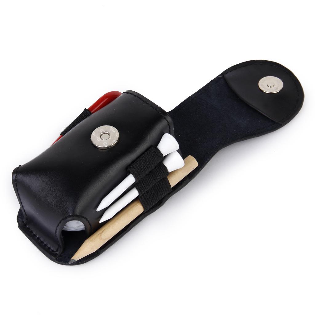 • Leather pouch holds up to 2 golf balls, 2 tees, 1 score pencil and 1 divot fork