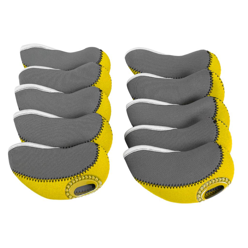 Pack of 10PCS Neoprene Golf Iron Club Head Covers Sporting Goods Golf Accessories Transparent Window Yellow