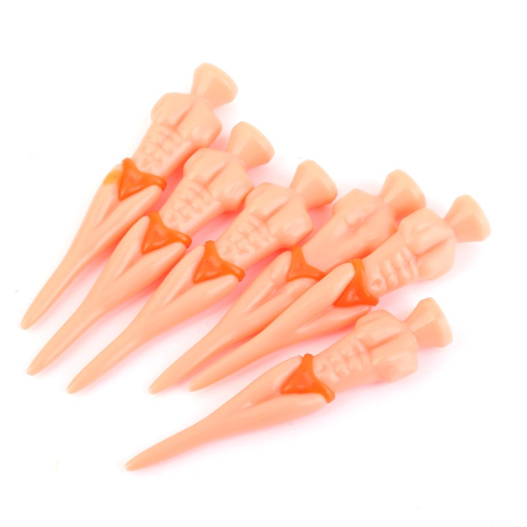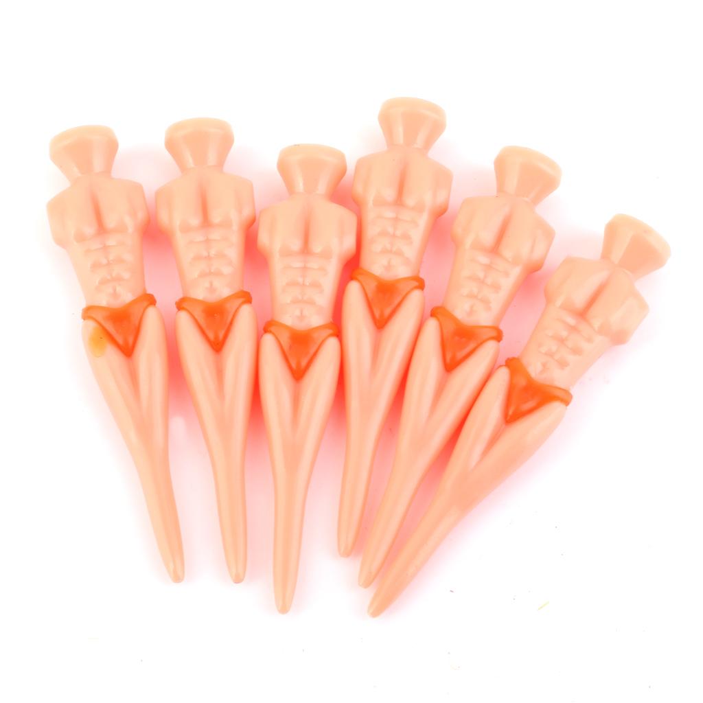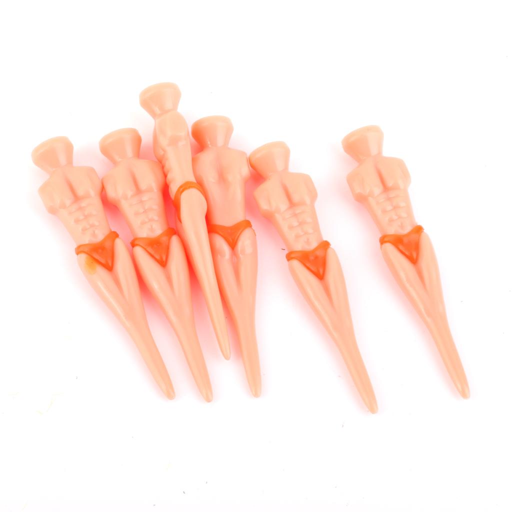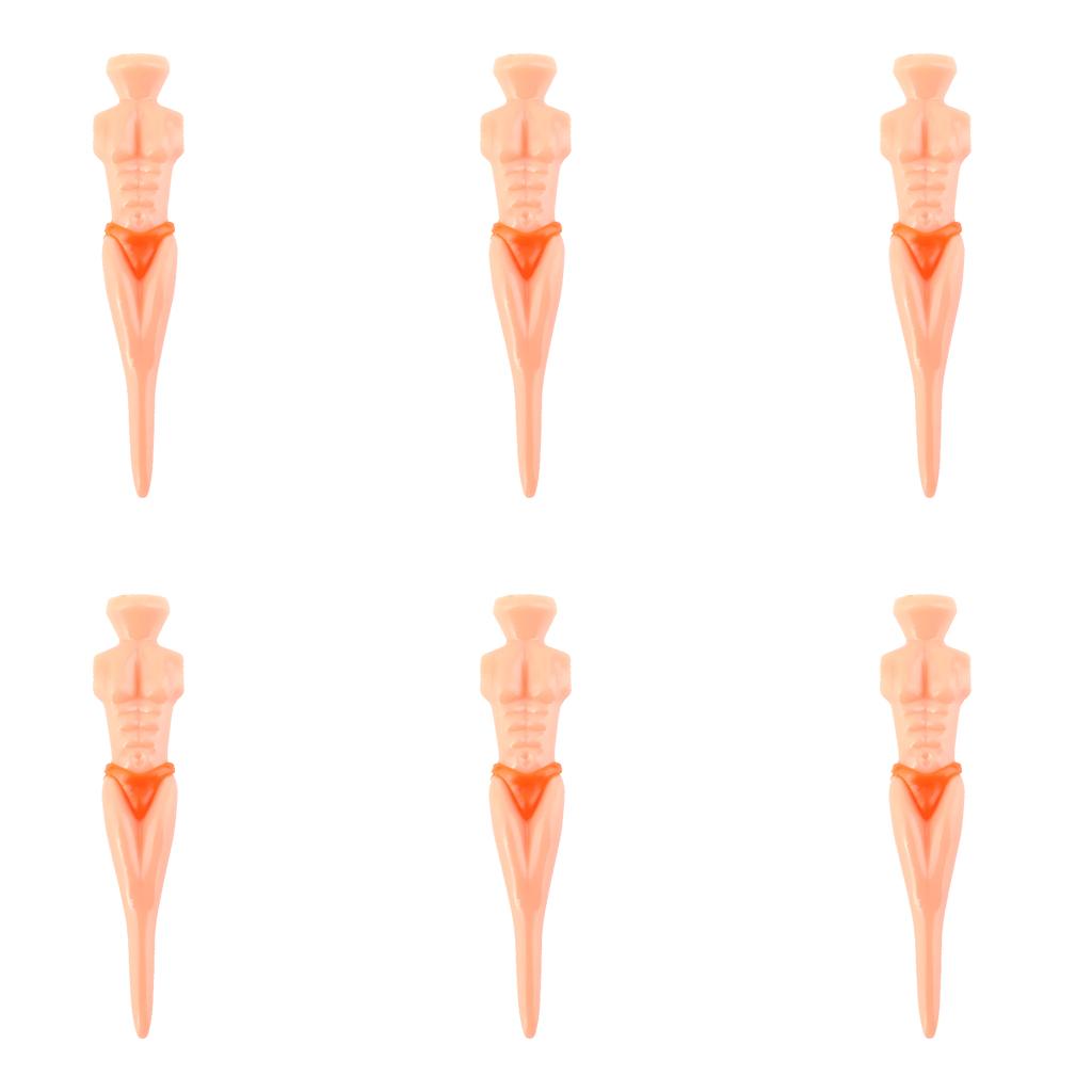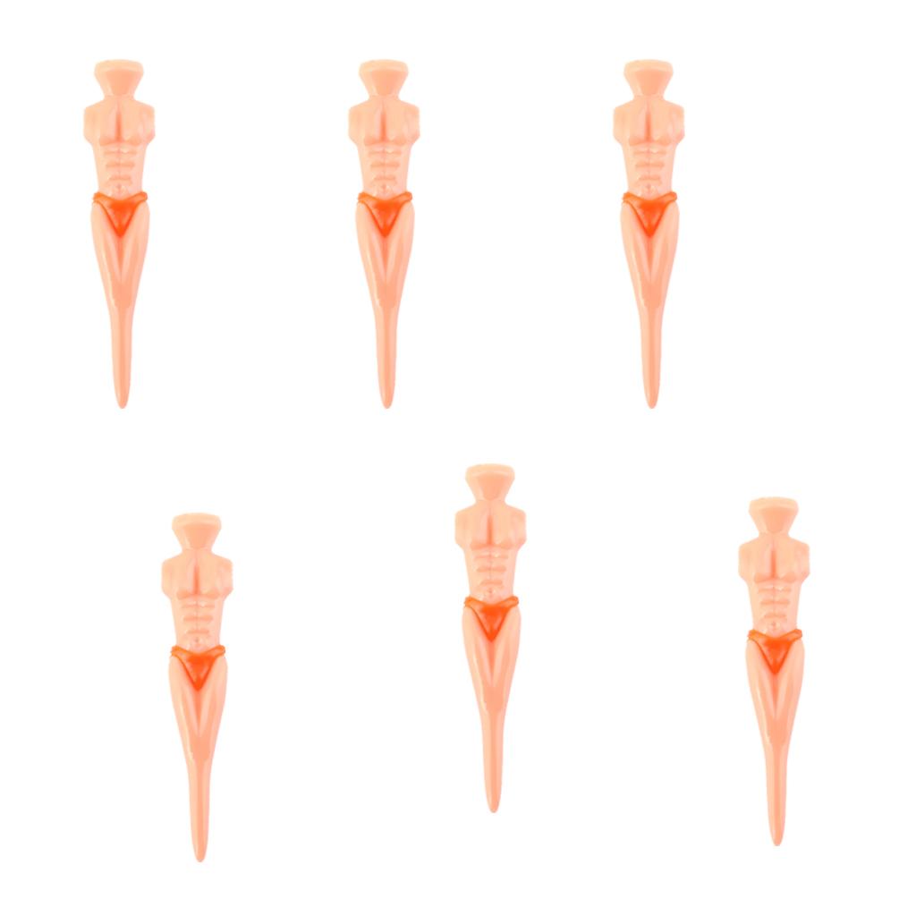 Plastic Novelty Male Model Golf Tees Divot Tool Joke Funny Gift 6PCS Orange
