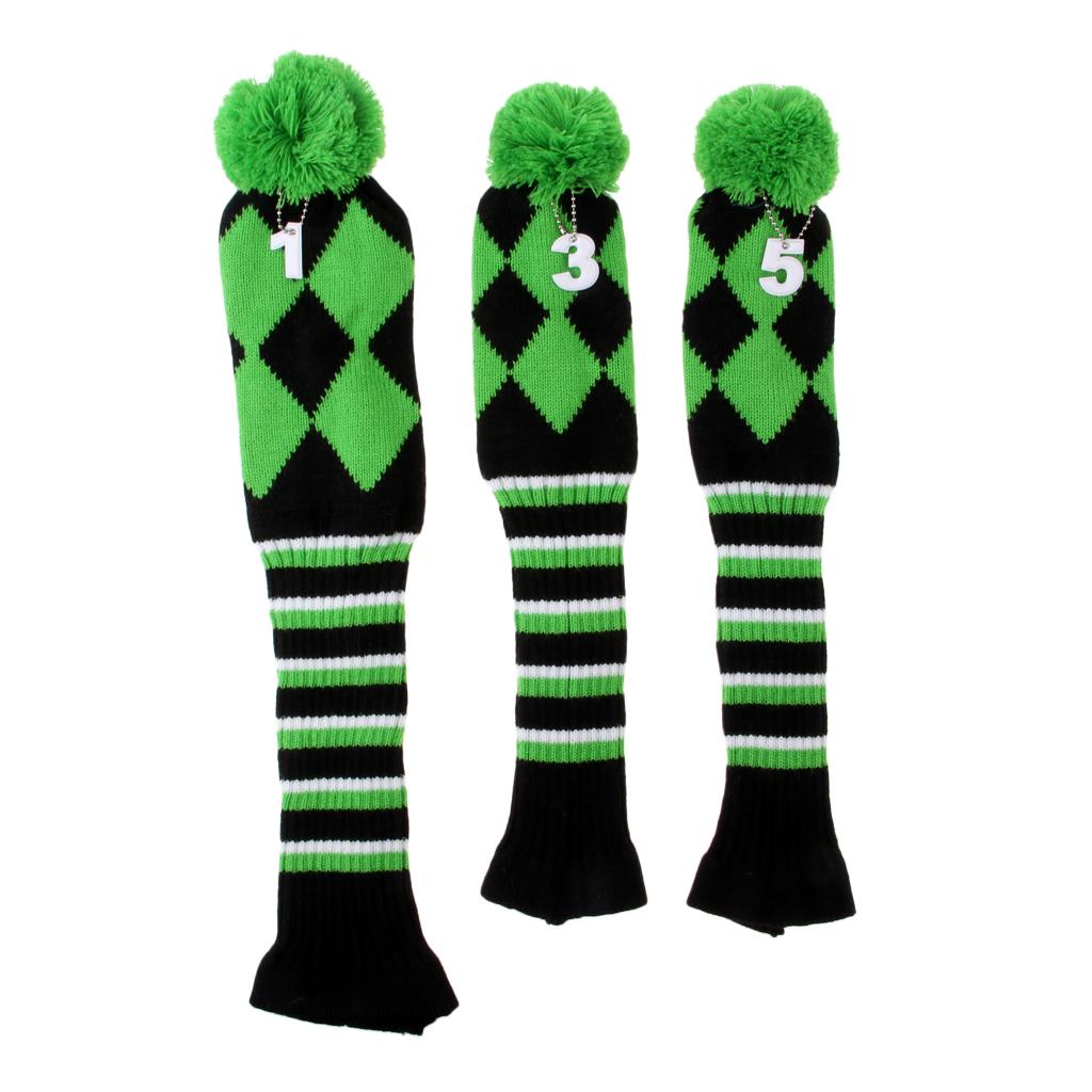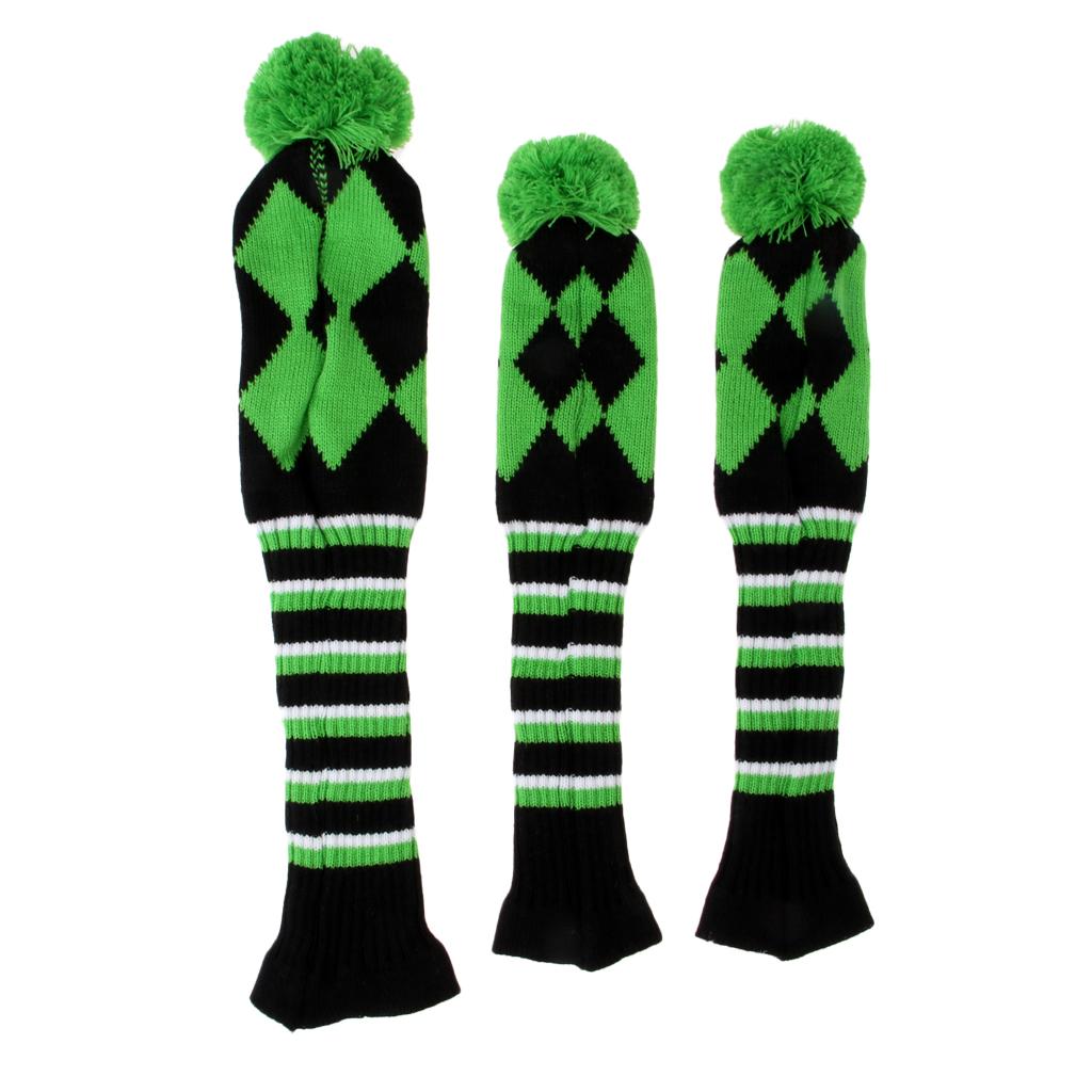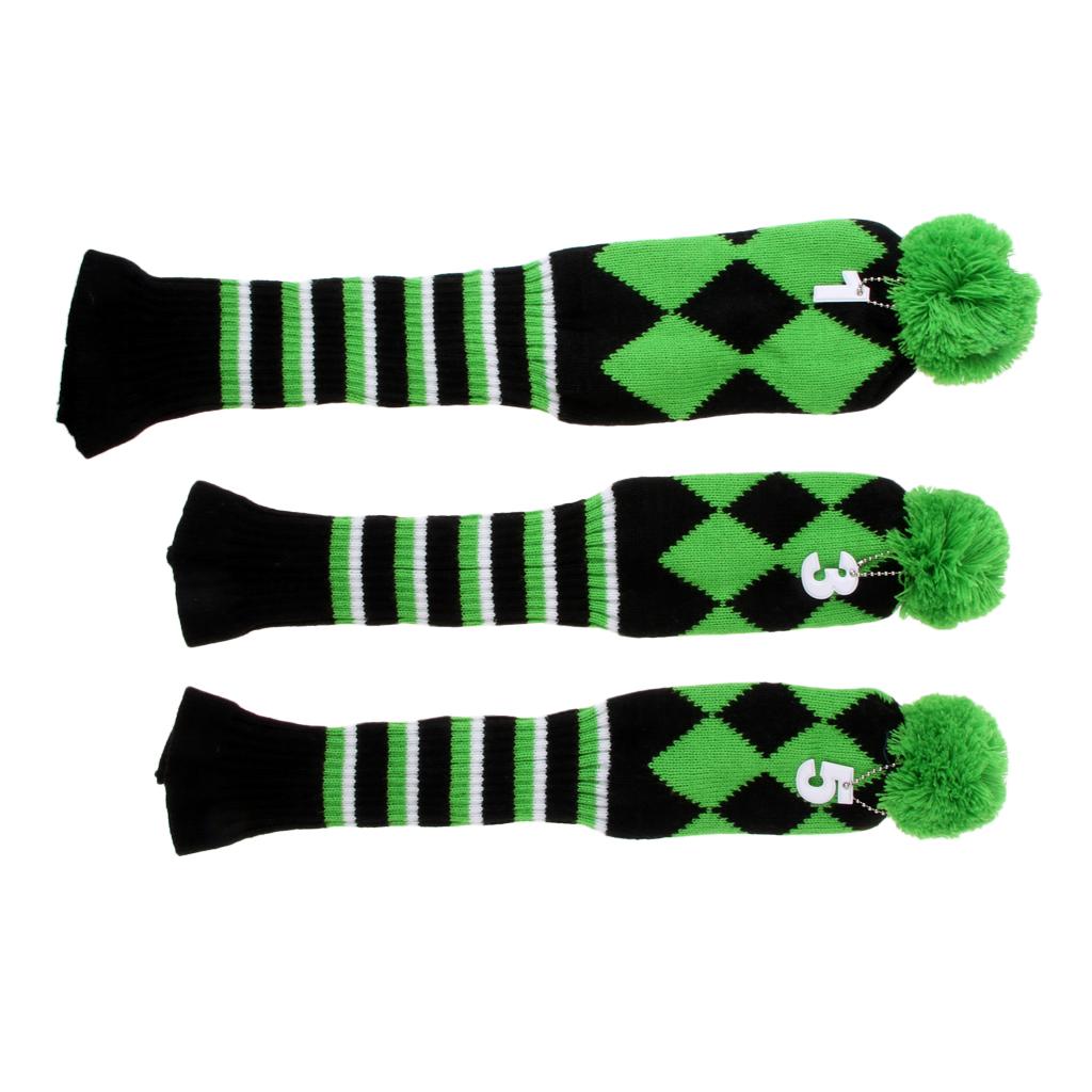 Set of 3 Golf Pom Pom Headcover Driver Fairway Woods Head Covers Green