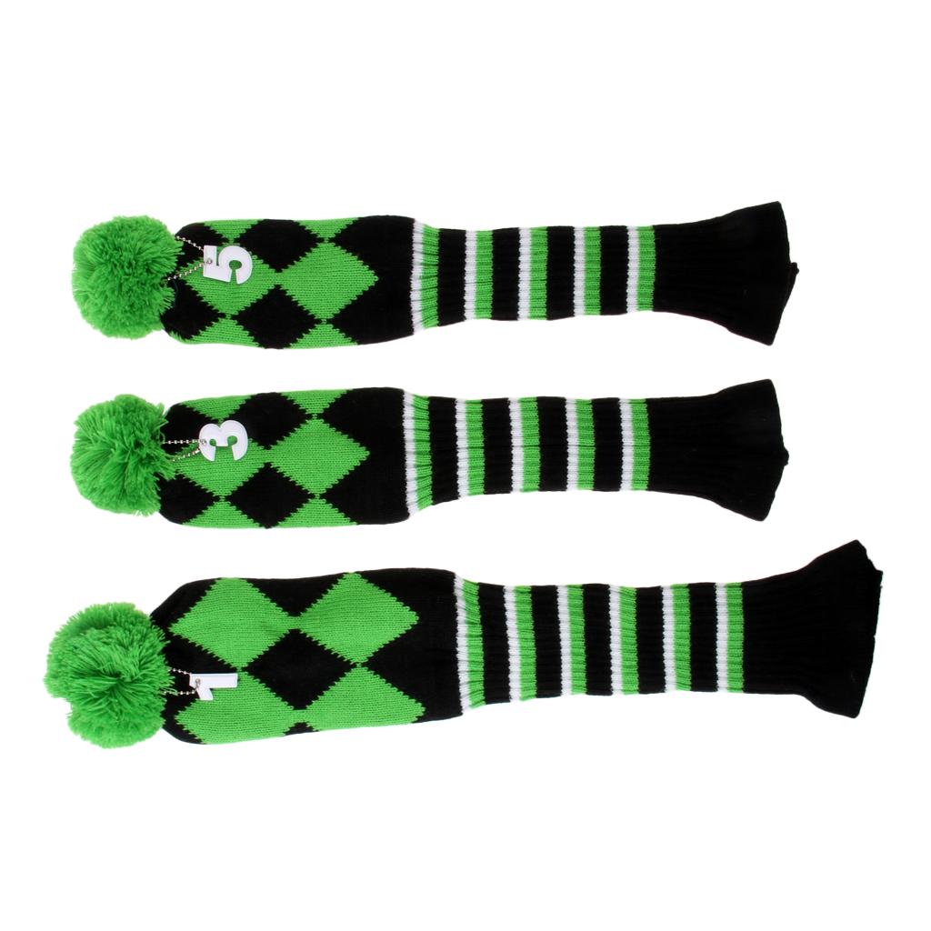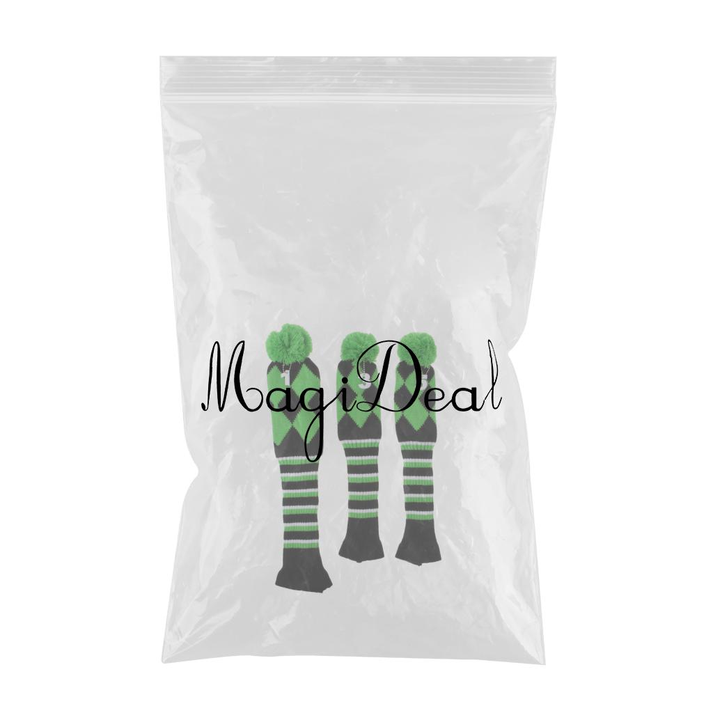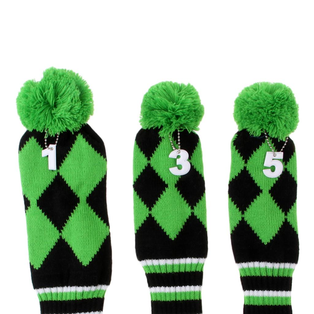 Set of 3 Golf Pom Pom Headcover Driver Fairway Woods Head Covers Green