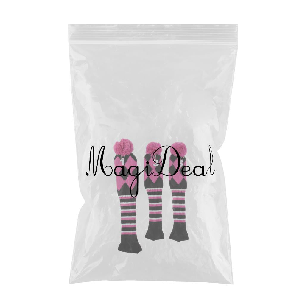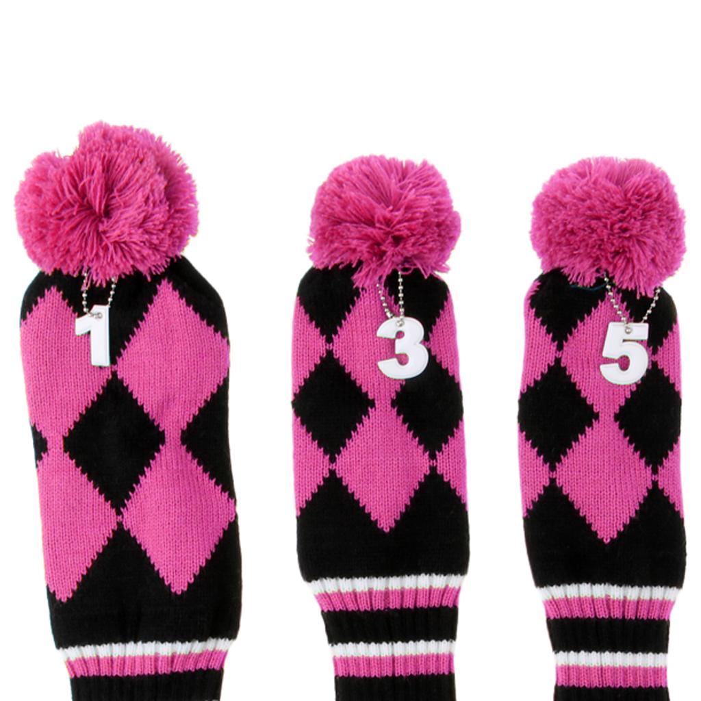 Set of 3 Golf Pom Pom Headcover Driver Fairway Woods Head Covers Pink