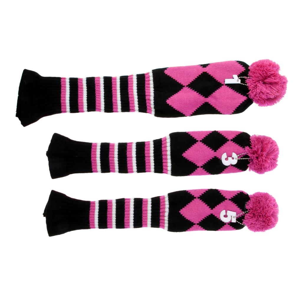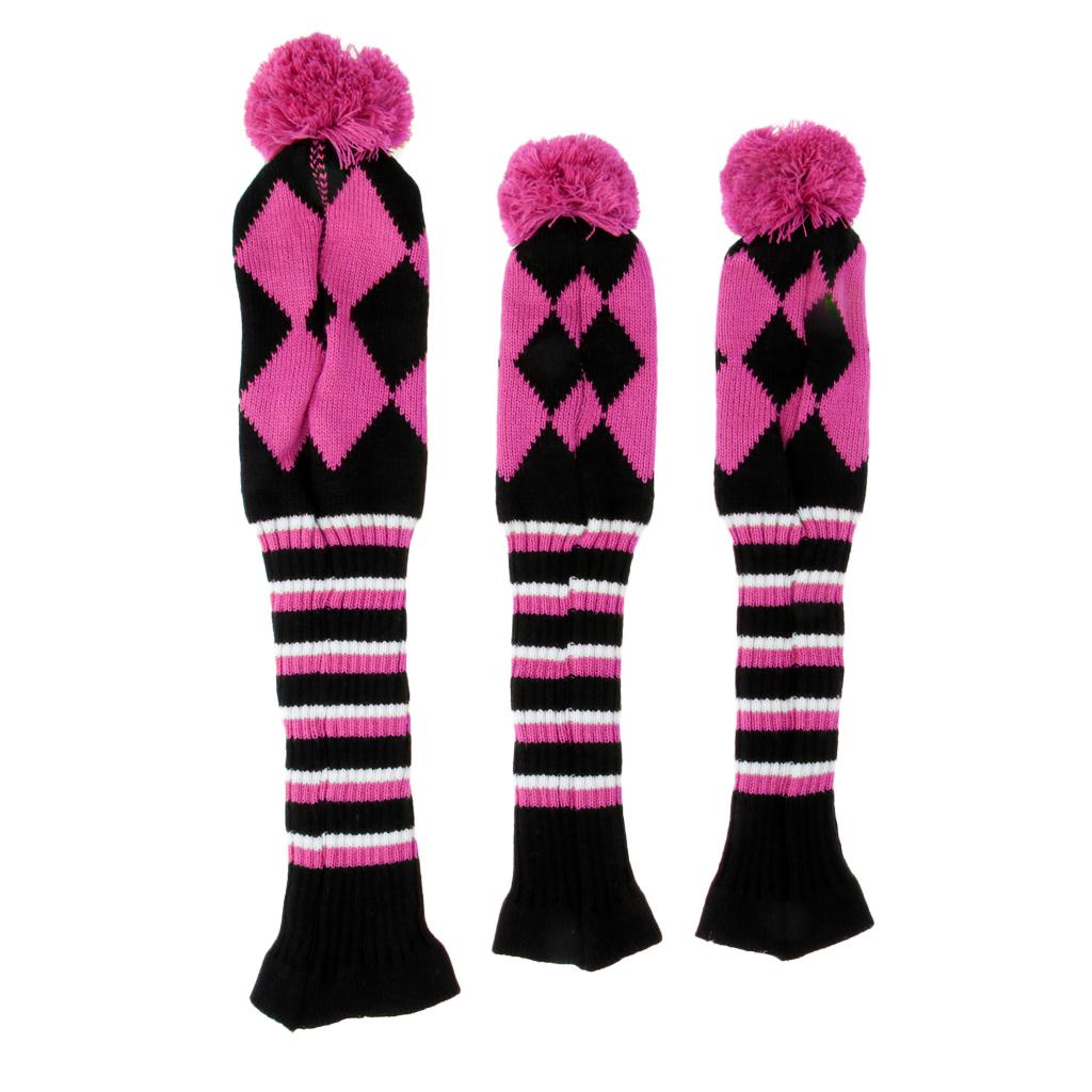 Set of 3 golf Pom Pom wood head cover knit sock headcovers