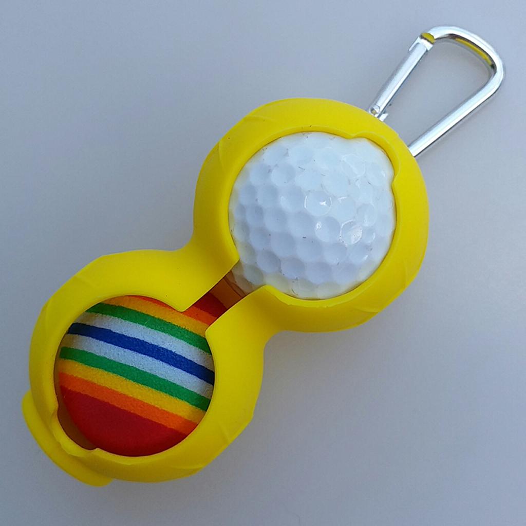 Silicone Golf Ball Holder Carrier w/ Snap Clip for Double Golf Ball Yellow