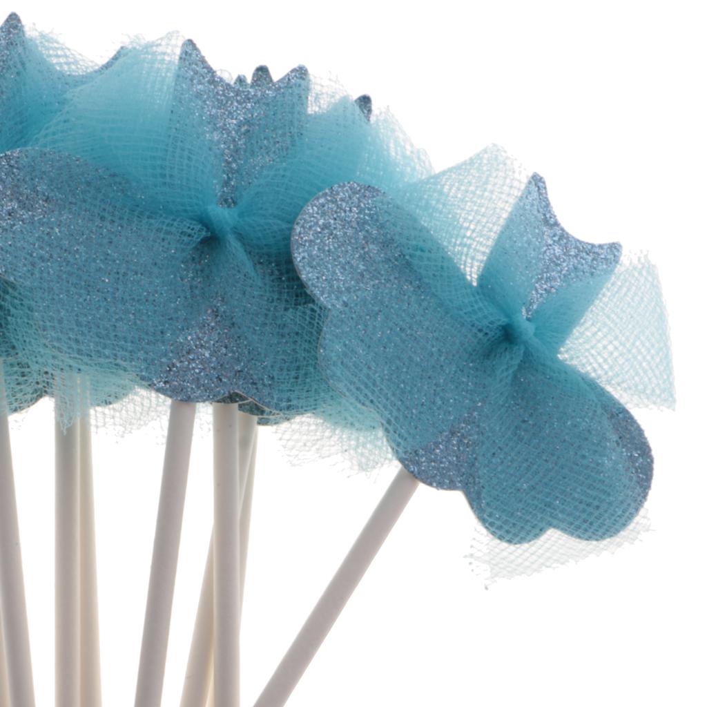 10 Pieces Glitter Dress with Tulle Cake Topper Wedding Birthday Decor Blue