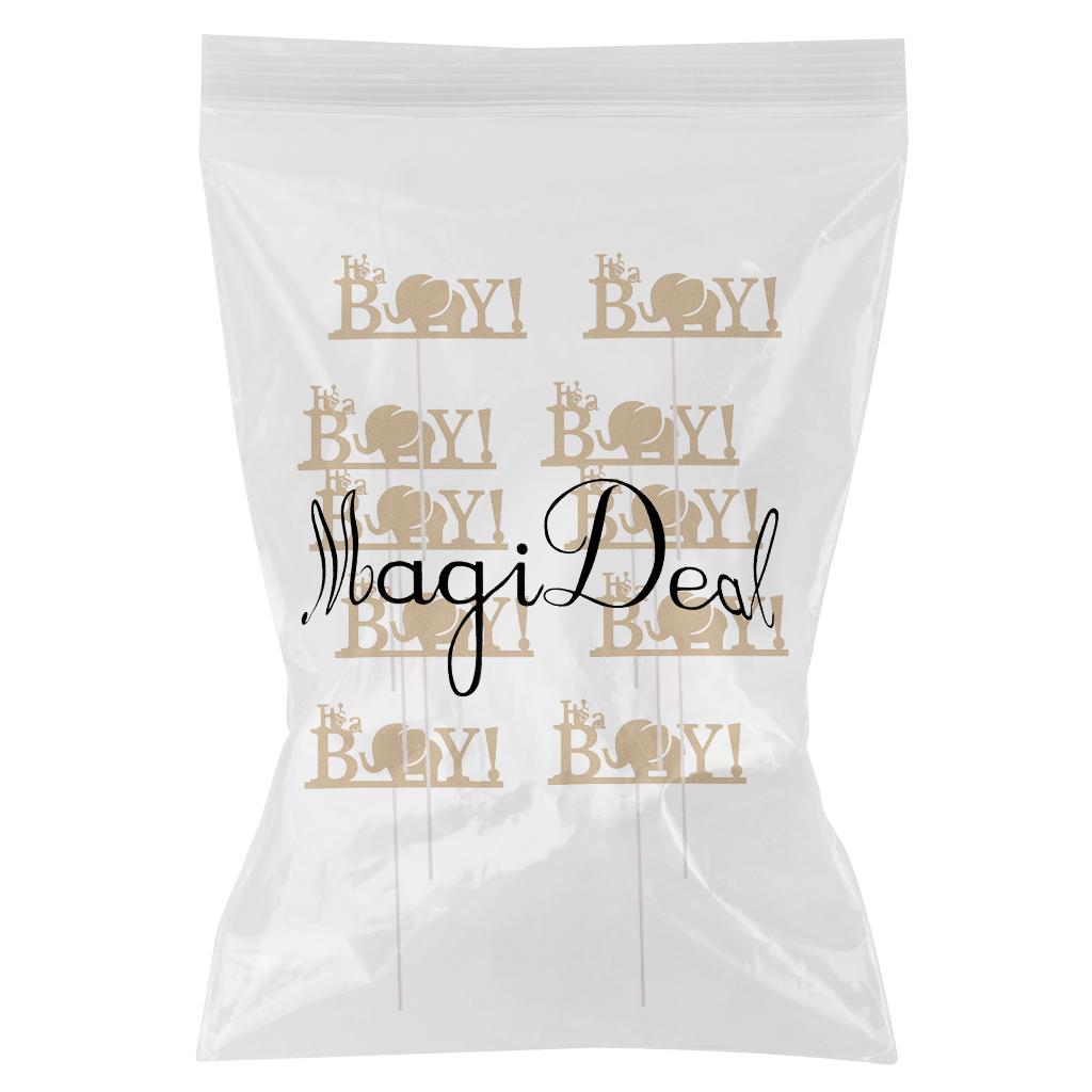 10 Pieces It's a Boy Elephant Birthday Cake Toppers Baby Shower Party Gold