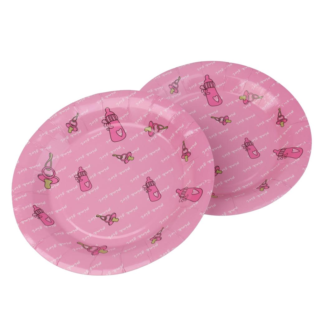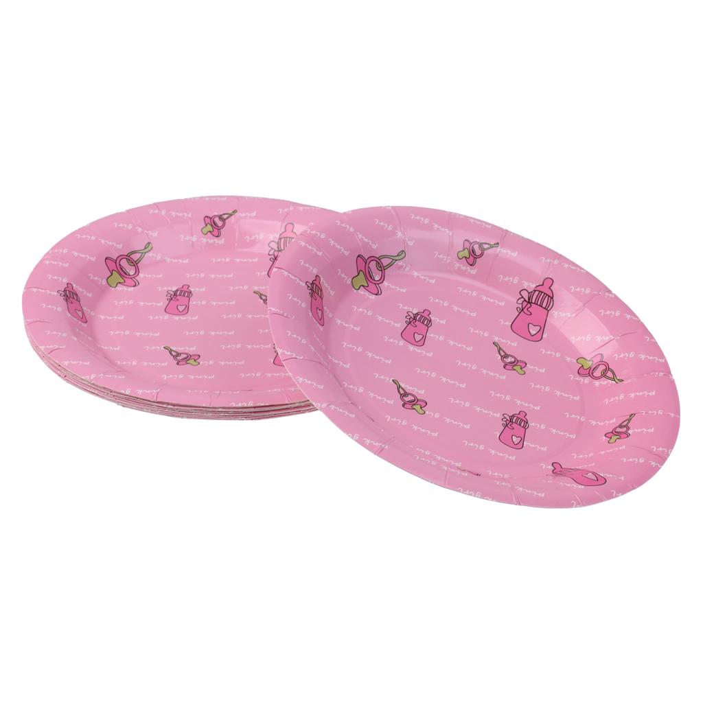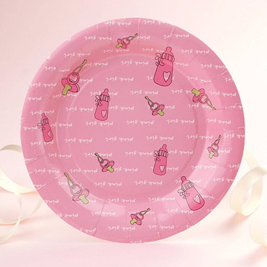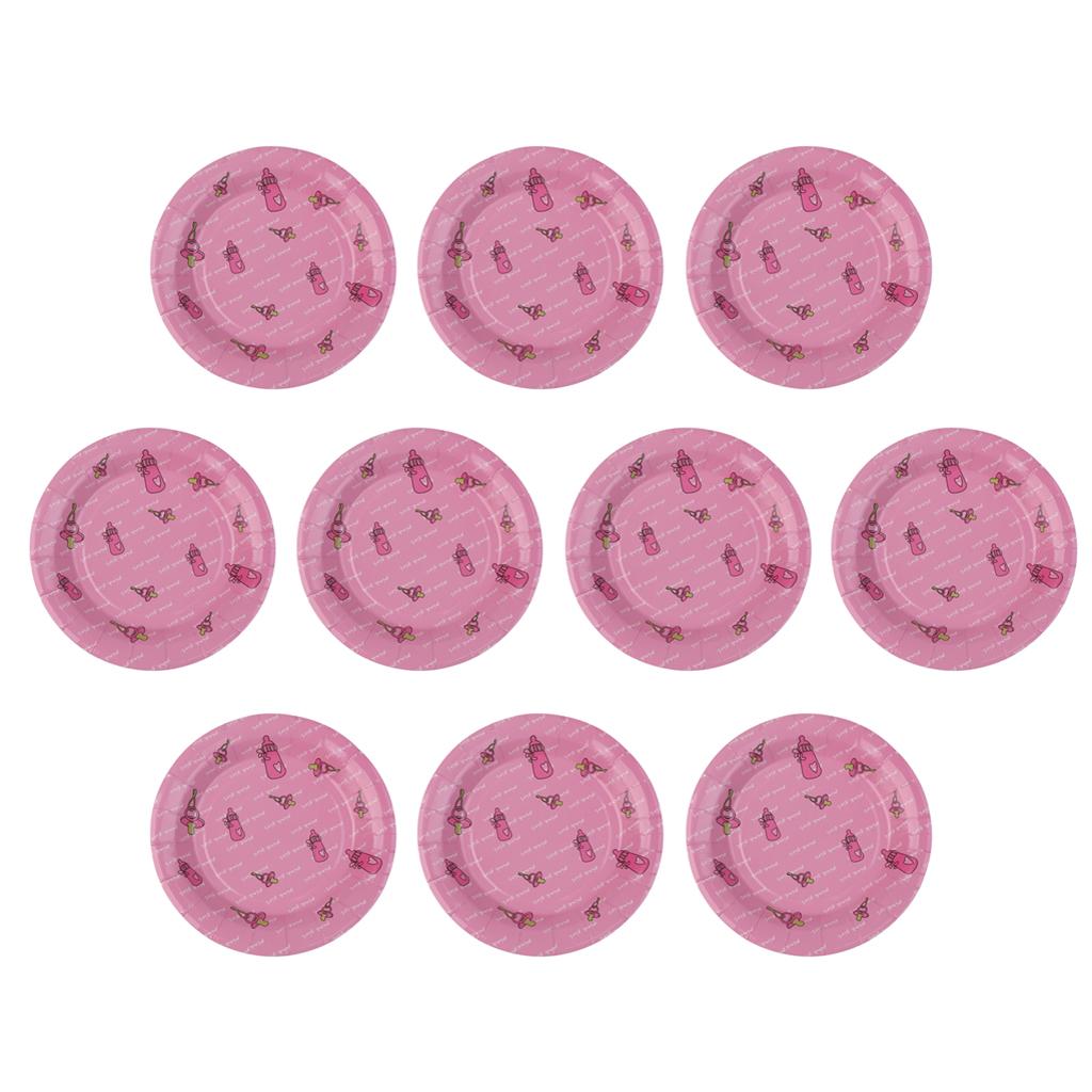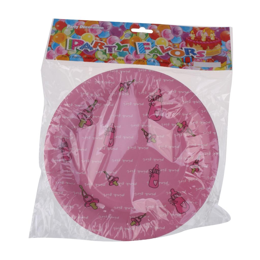 Round shape with Feeding Bottles Pacifiers Pattern Paper Plates