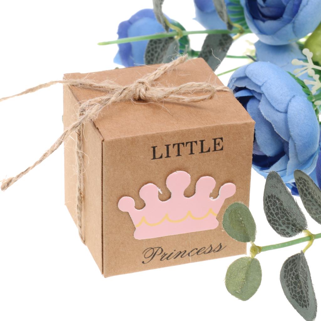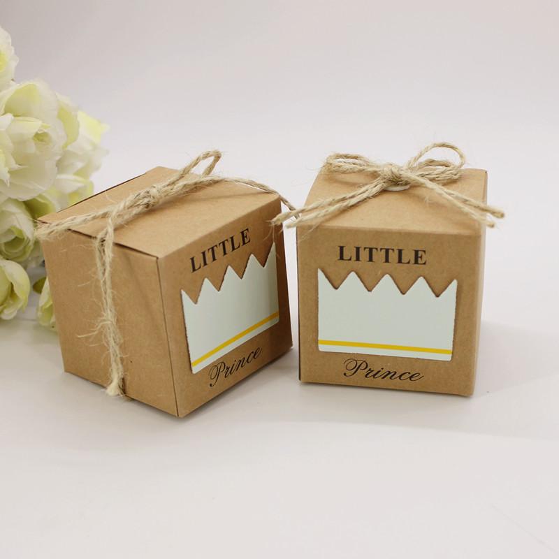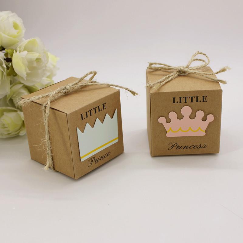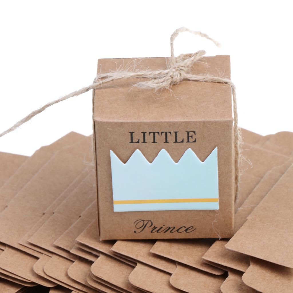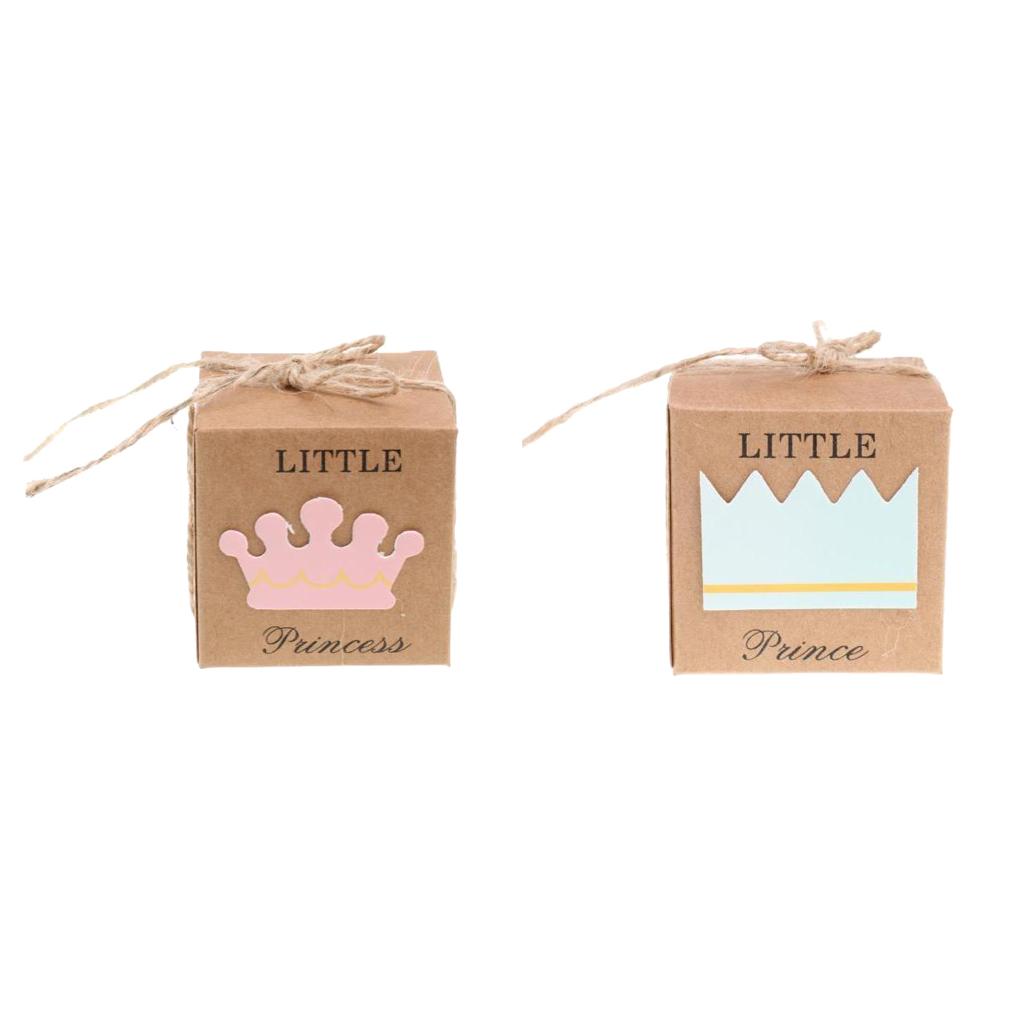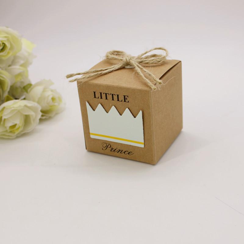 100pcs Kraft Little Prince Crown Candy Box Girl Boy Baby Shower Favors