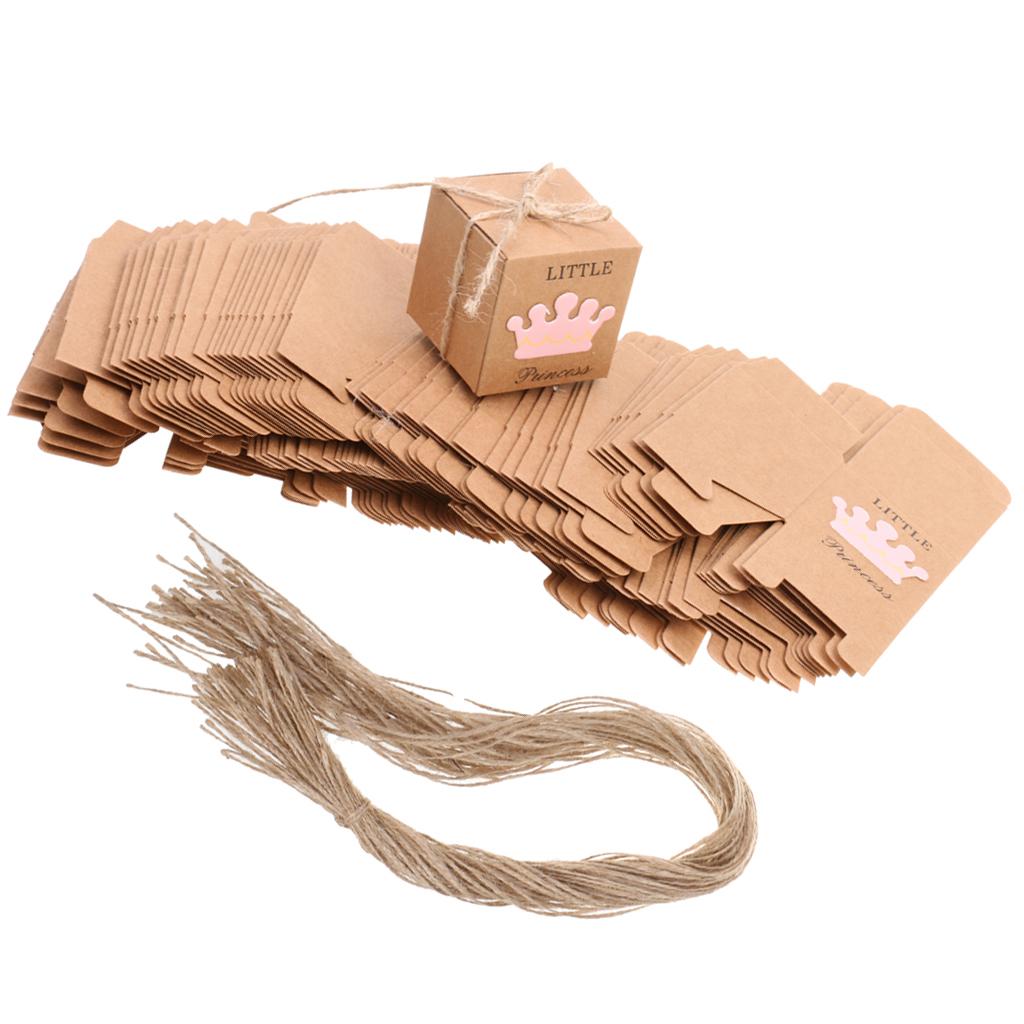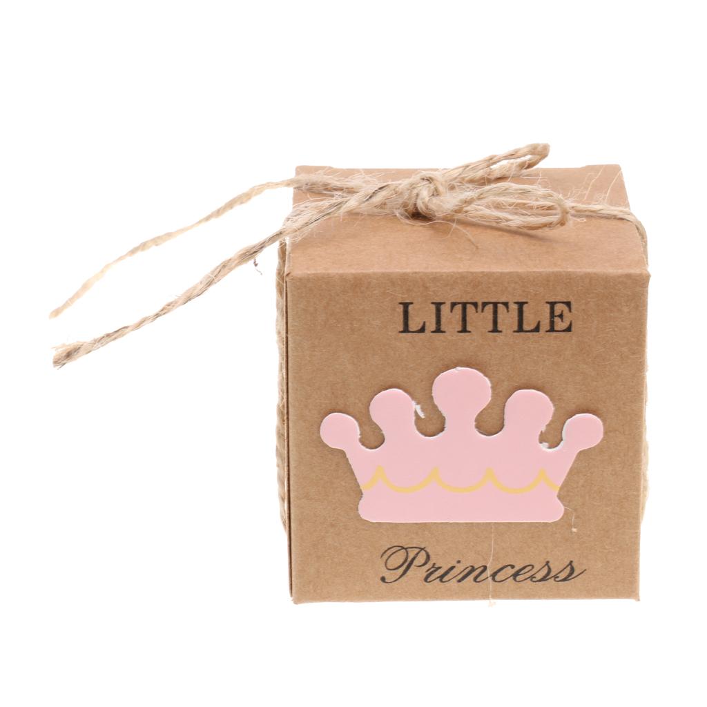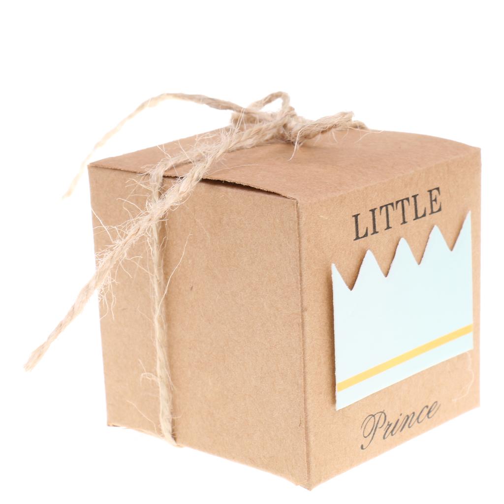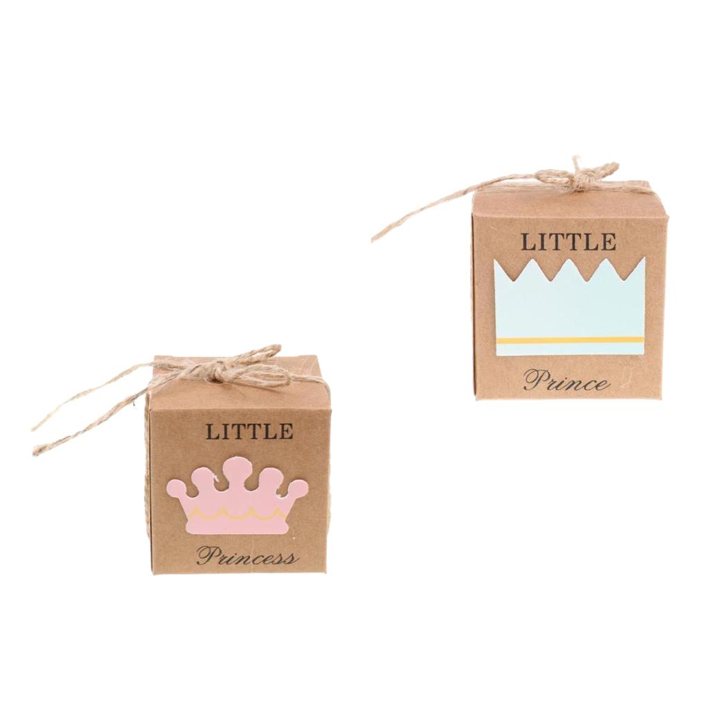 100pcs Kraft Little Prince Crown Candy Box Girl Boy Baby Shower Favors
