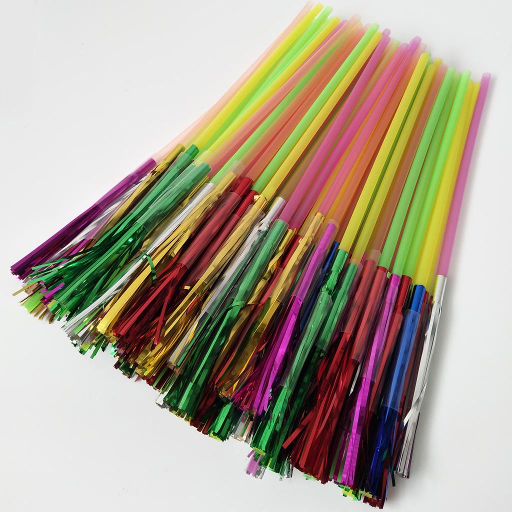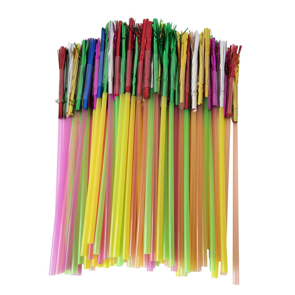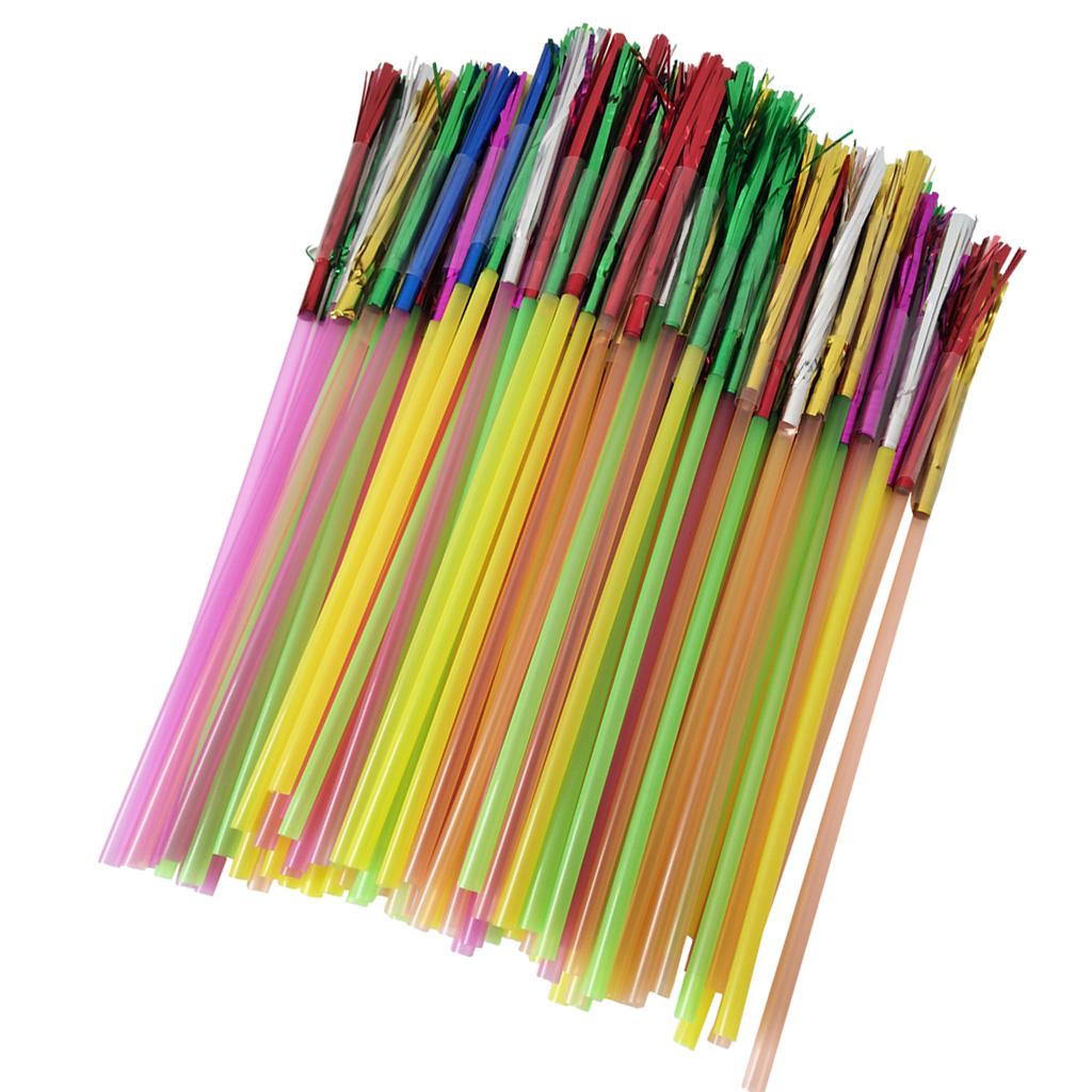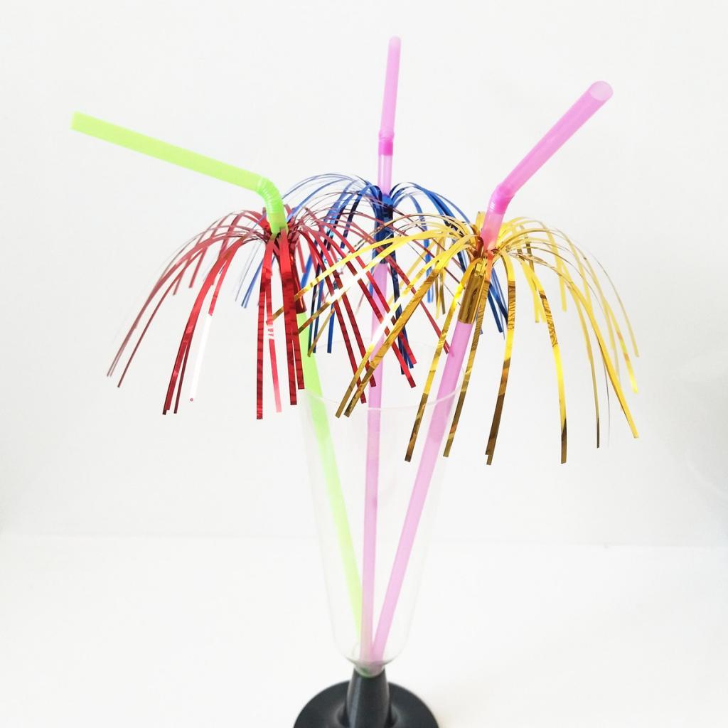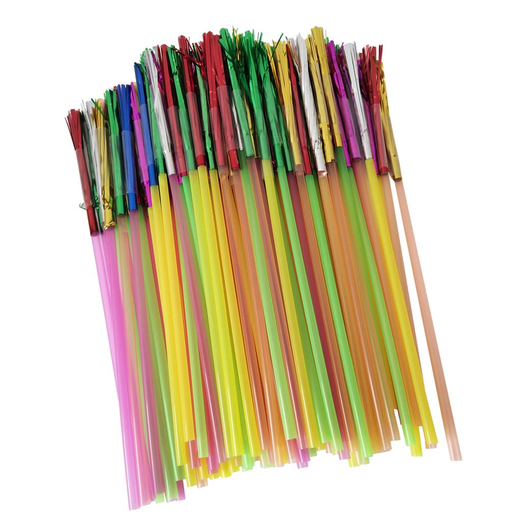 100pcs Metallic Foil Fringe Fireworks Cocktail Party Straws Decor Random
