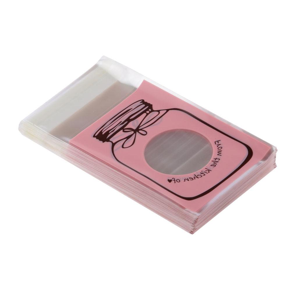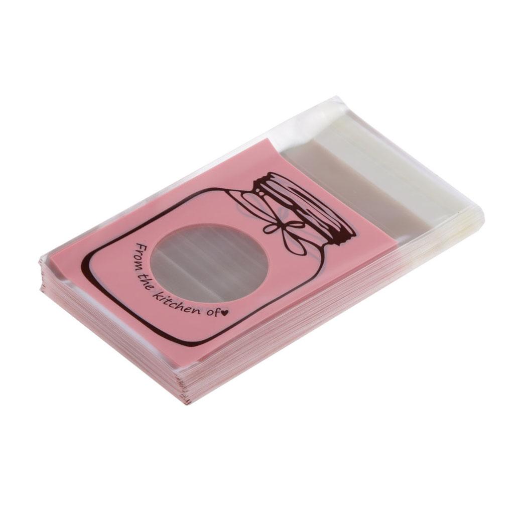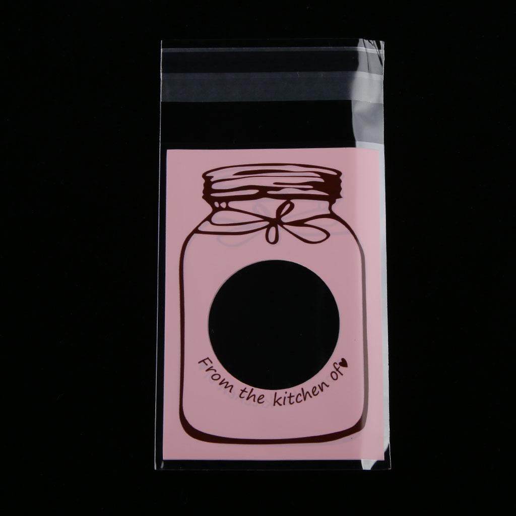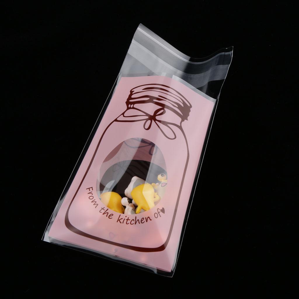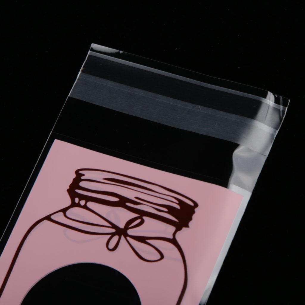100xCute Bottle Design Self-Adhesive Cookie Candy Wrapping Gift Seal Bag-PNK