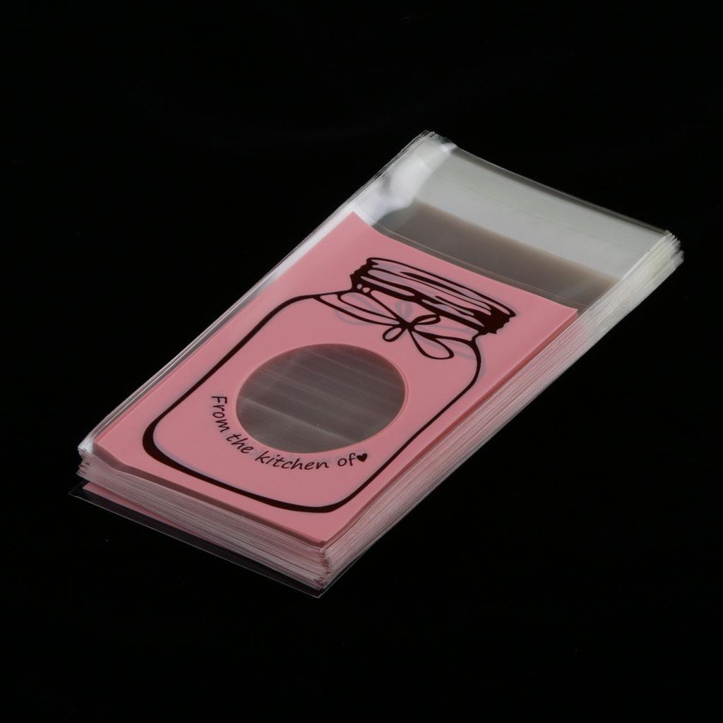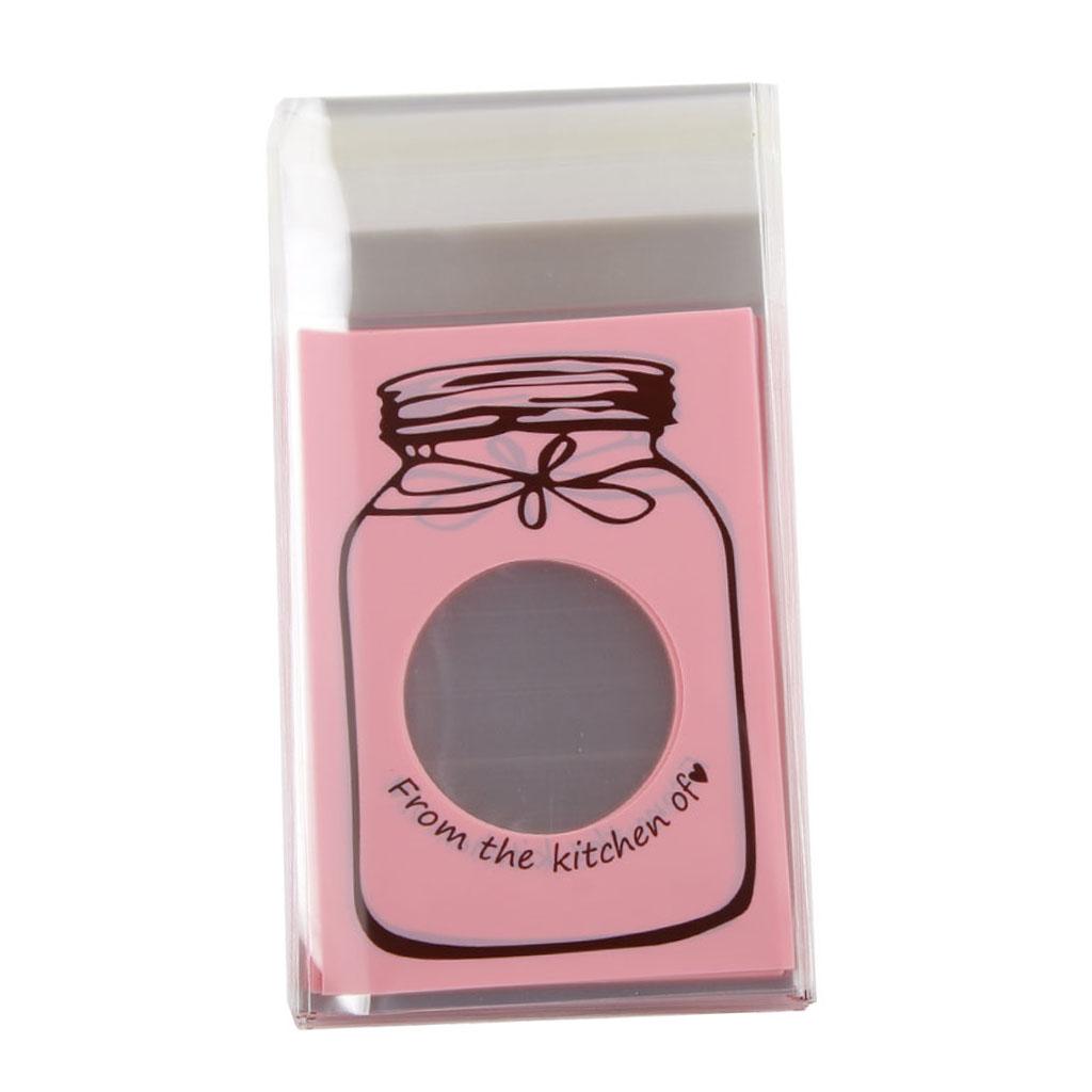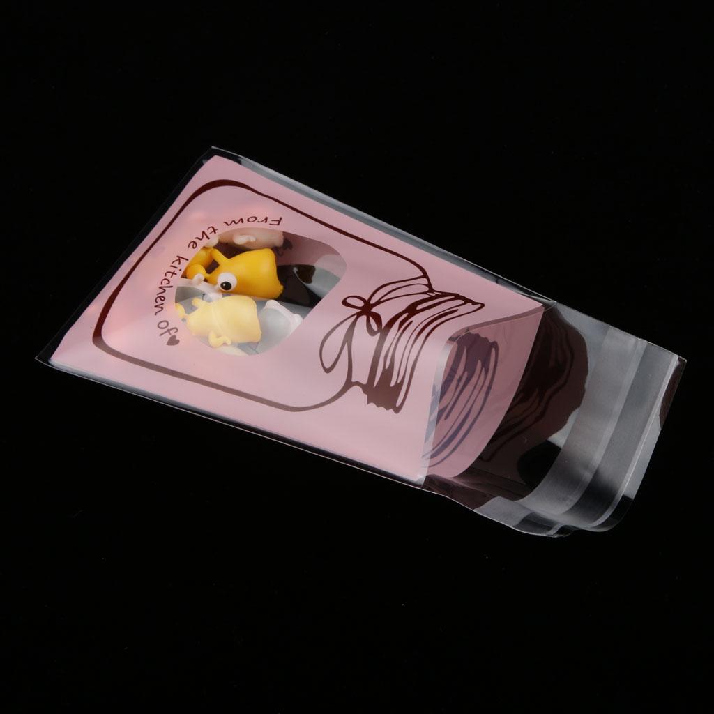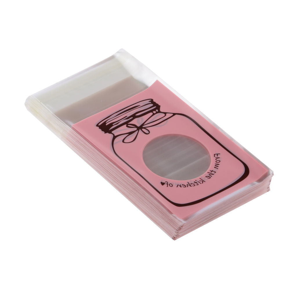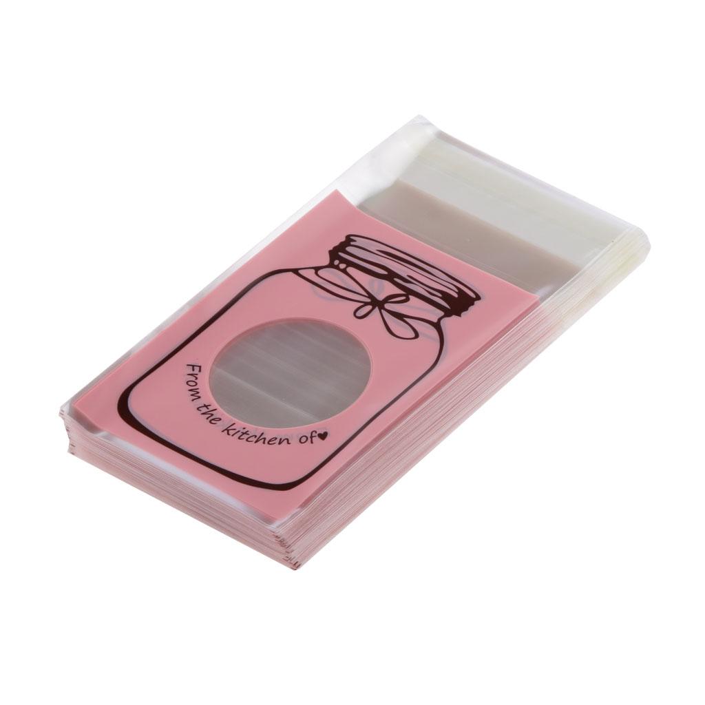 100xCute Bottle Design Self-Adhesive Cookie Candy Wrapping Gift Seal Bag-PNK
