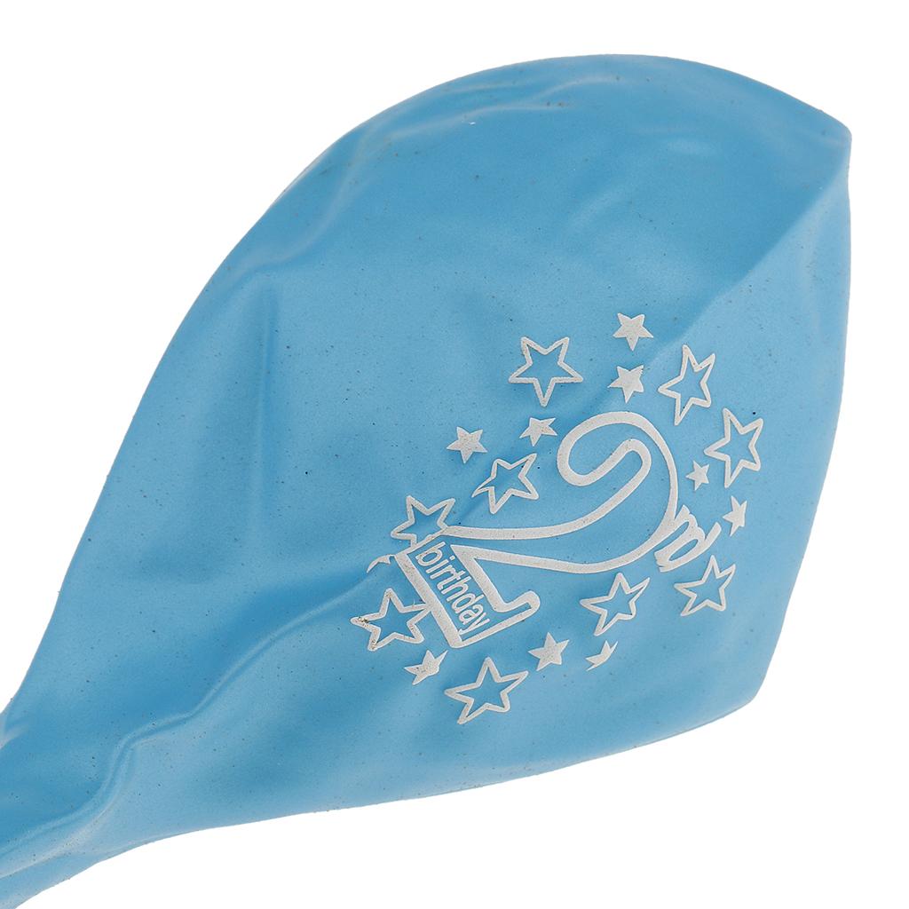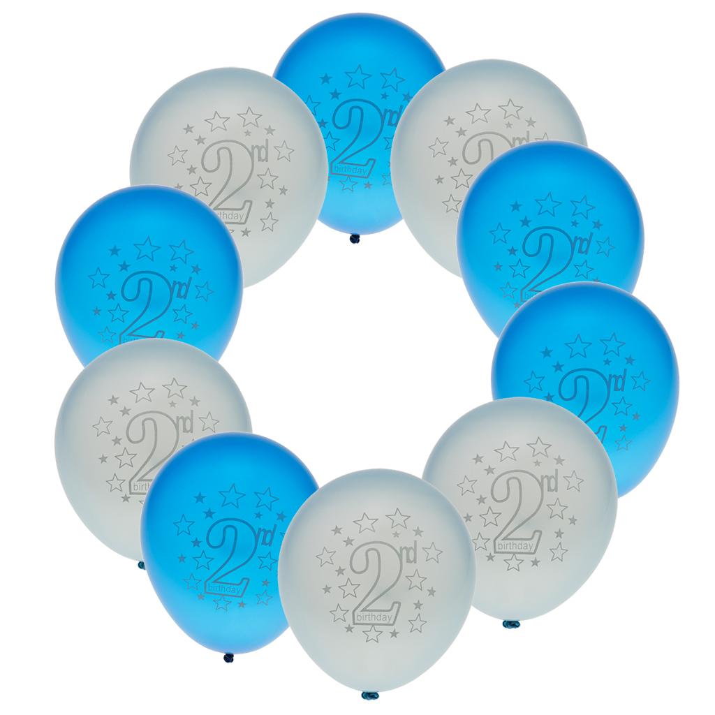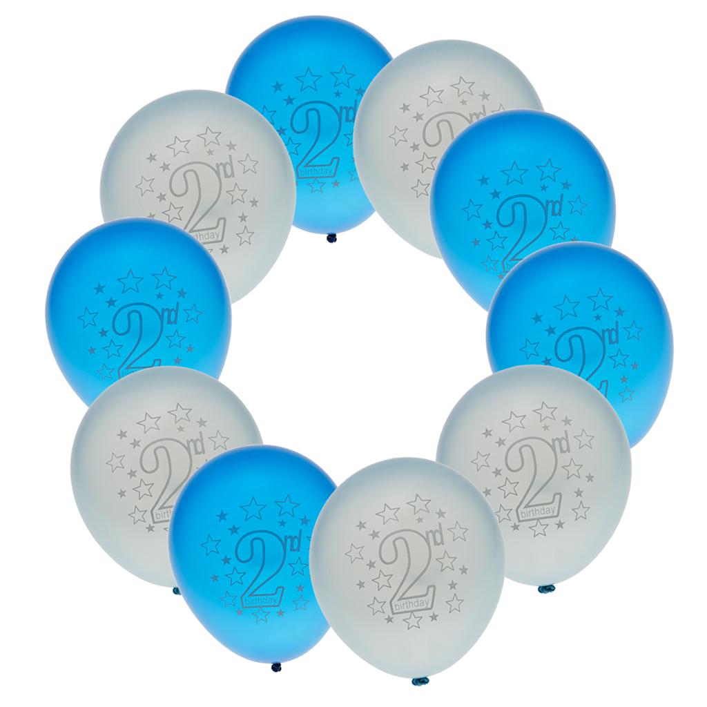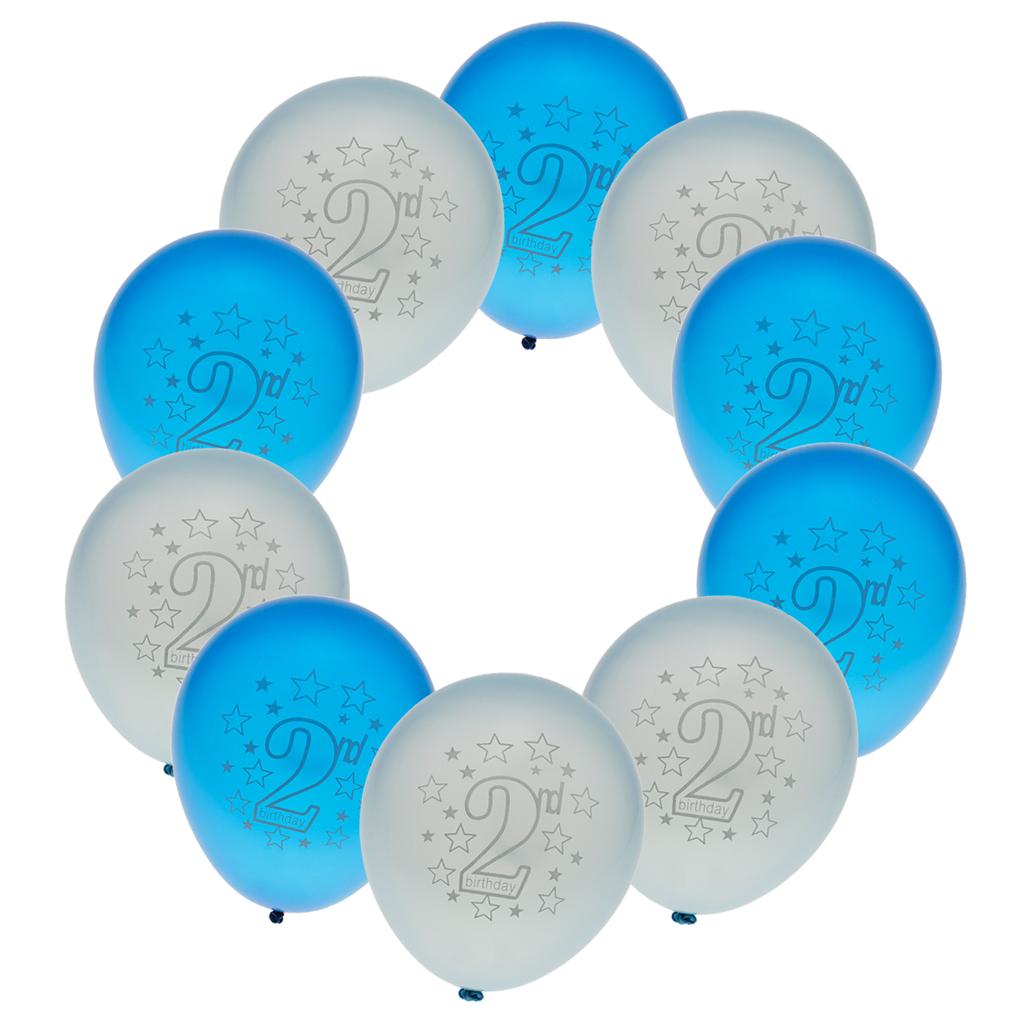 10pcs Latex Balloons with Heart Printed Baby 2nd Birthday Party Decoration Blue&Light Blue