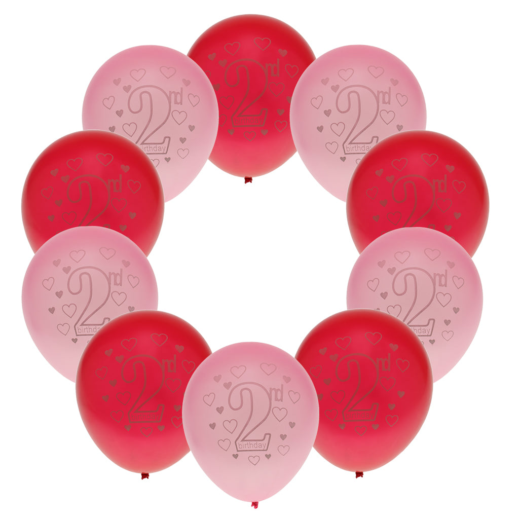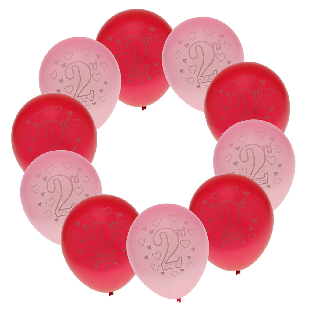 Lovely baby 2nd birthday latex balloons surrounded by printed love heart