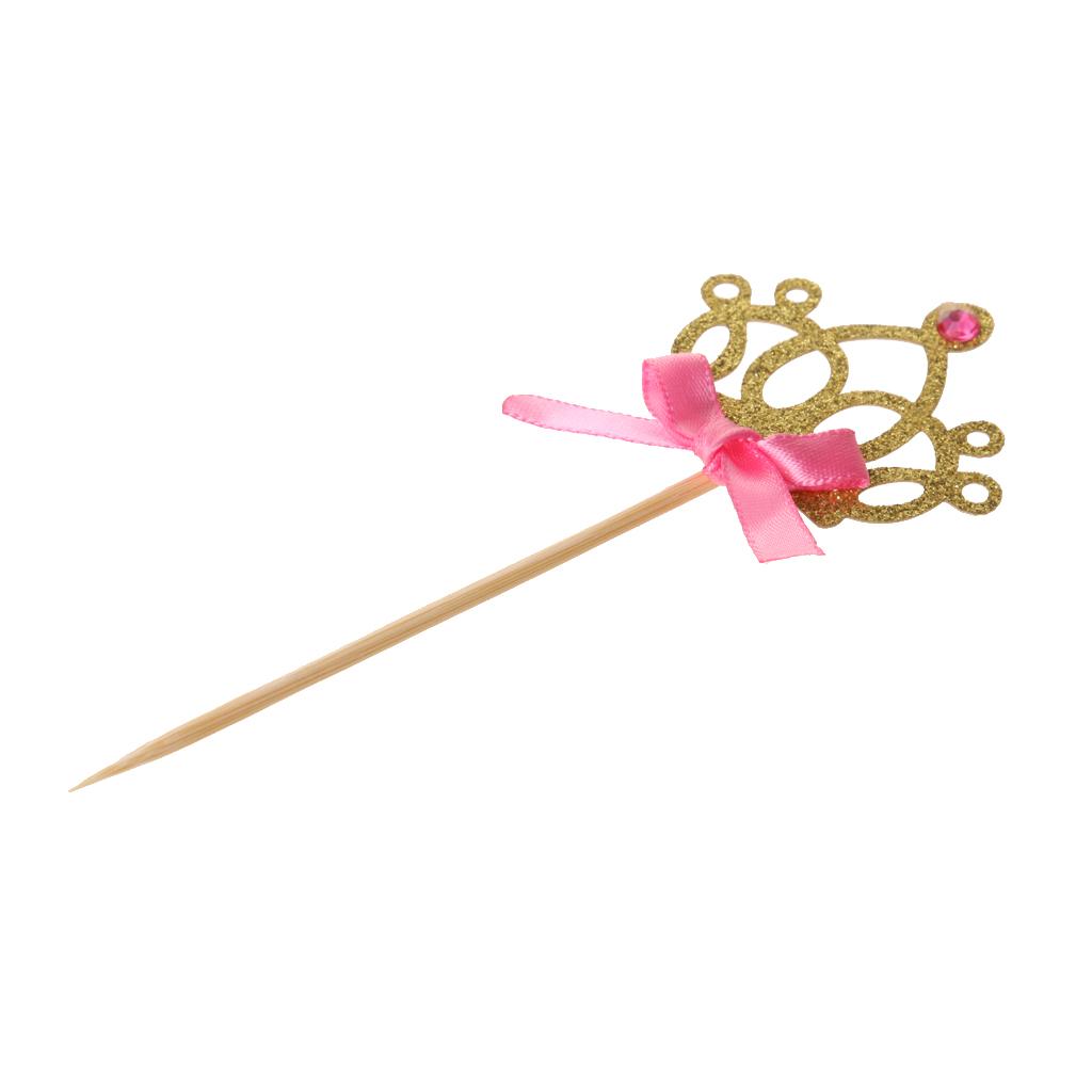 10pcs/set Pretty Crown Cake Topper Food Picks with Ribbon Pink and Gold