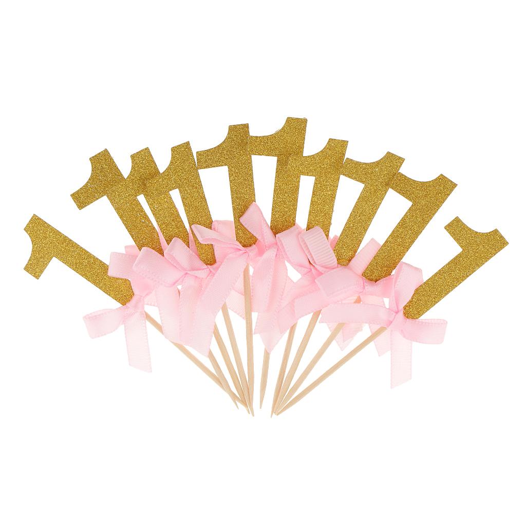 12 Glitter Number One Cake Cupcake Topper Pick Kid 1st Birthday Decor Gold