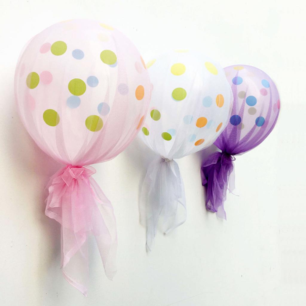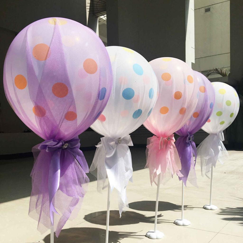 Polka dots style balloon, wrapped by tulle panel and bow, romantic and beautiful.