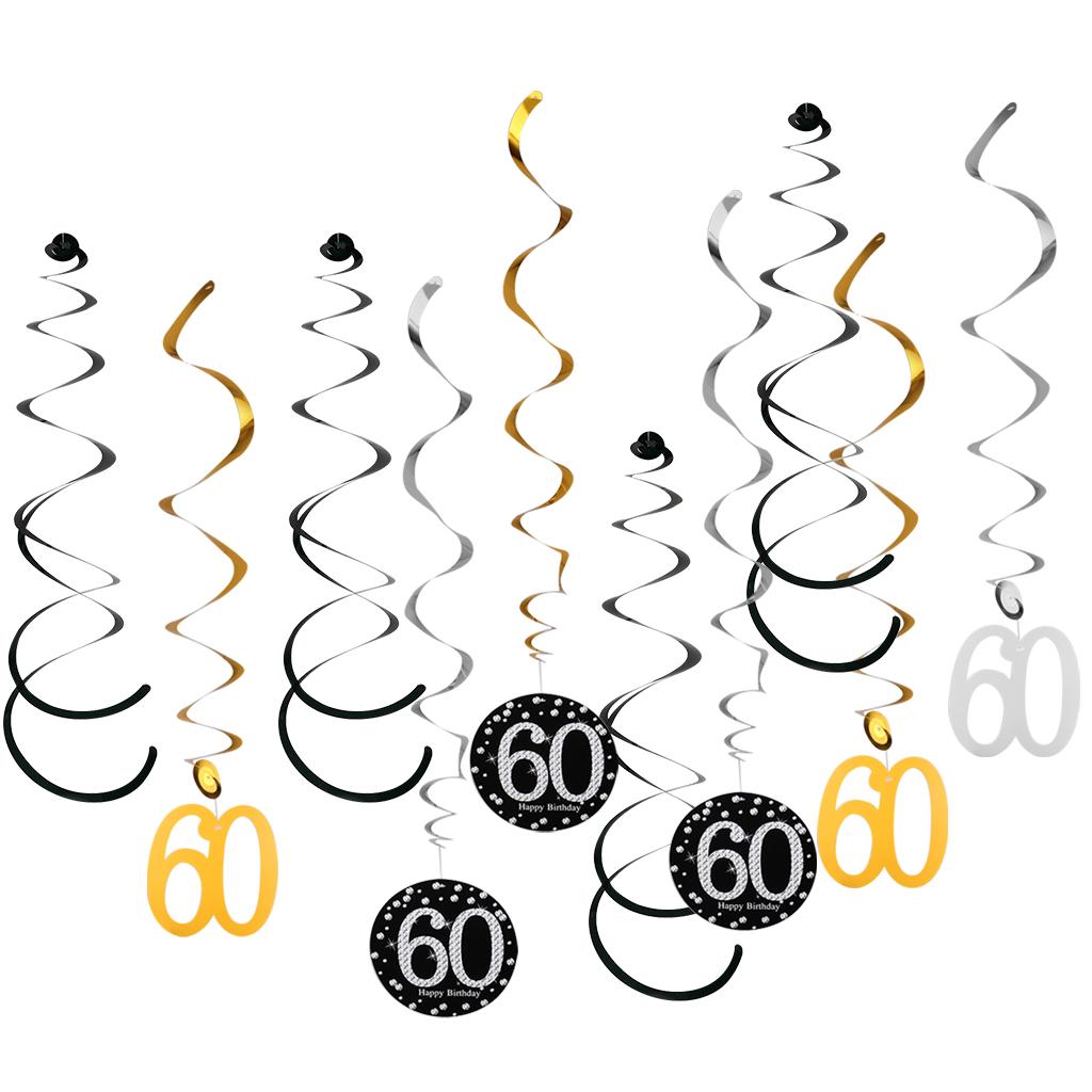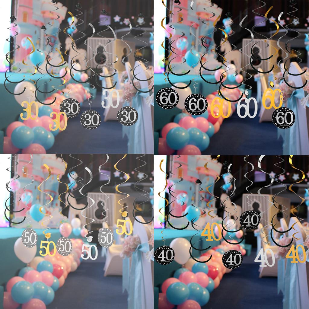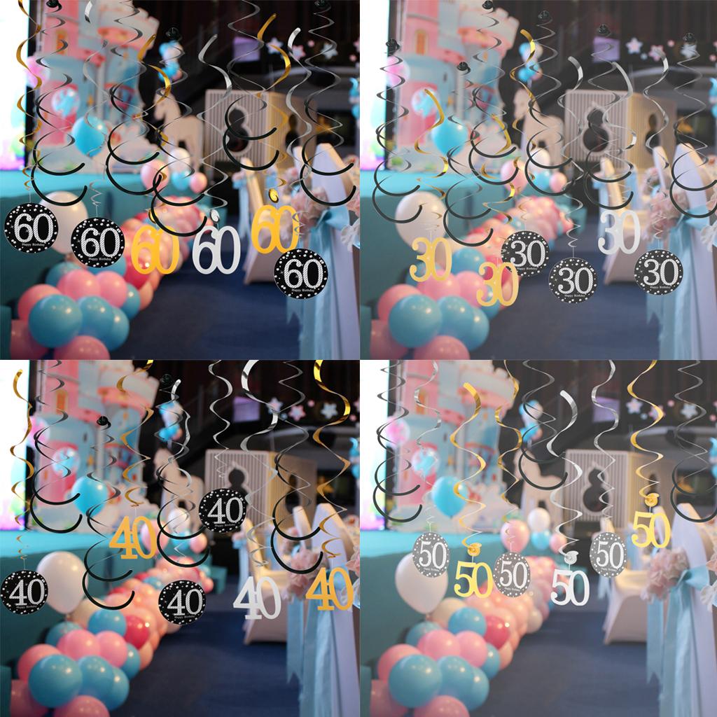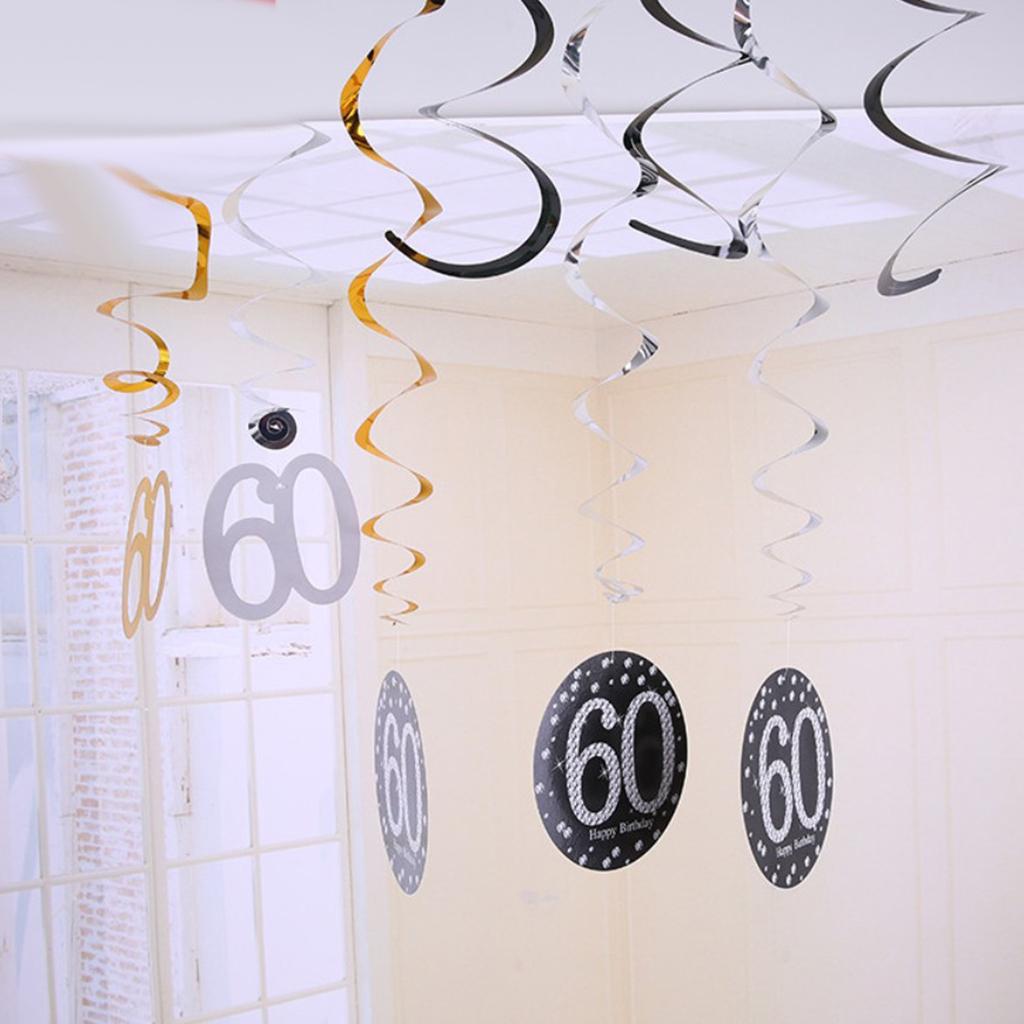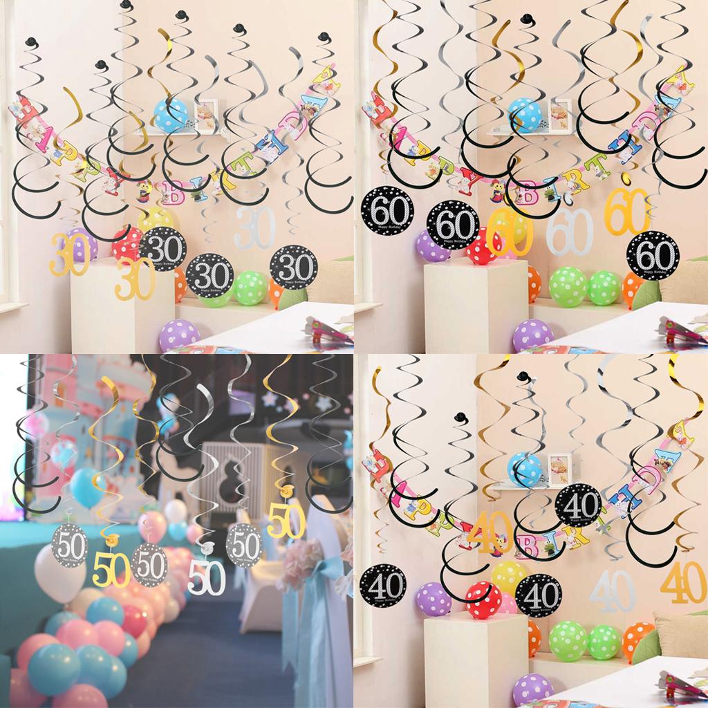 12pcs Digital Birthday Anniversary Celebration Hanging Swirls Party Decor 60