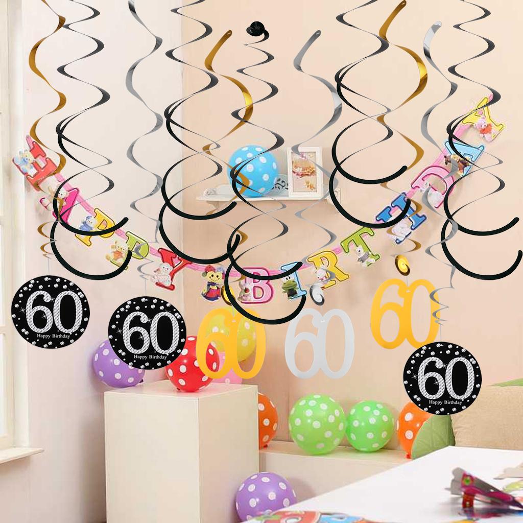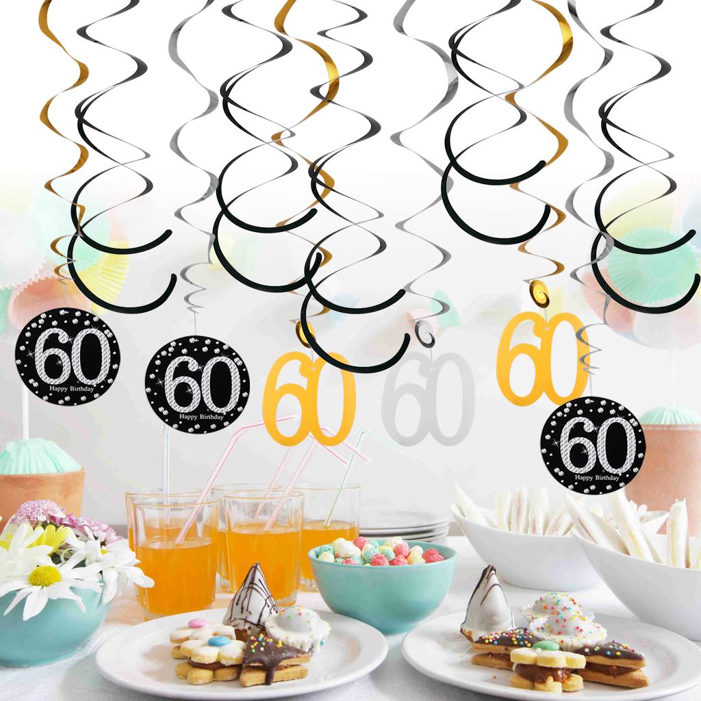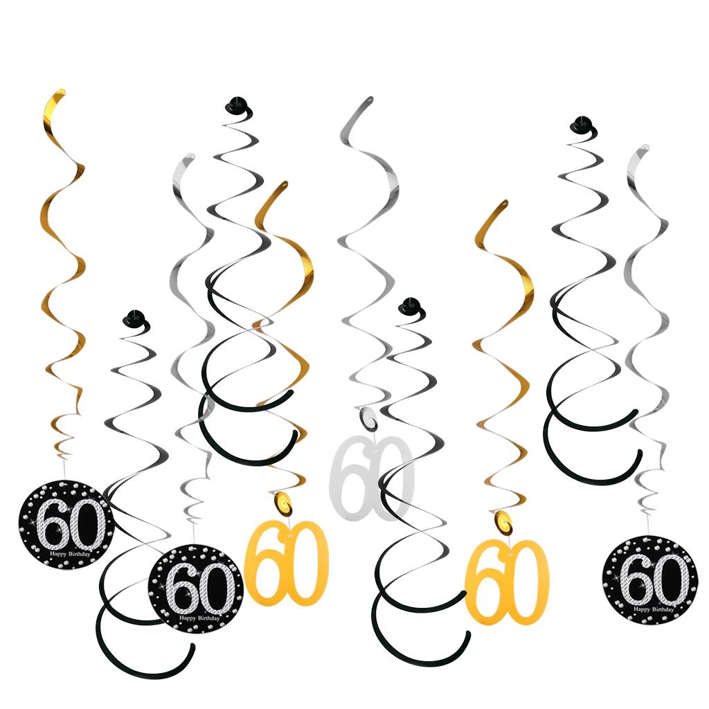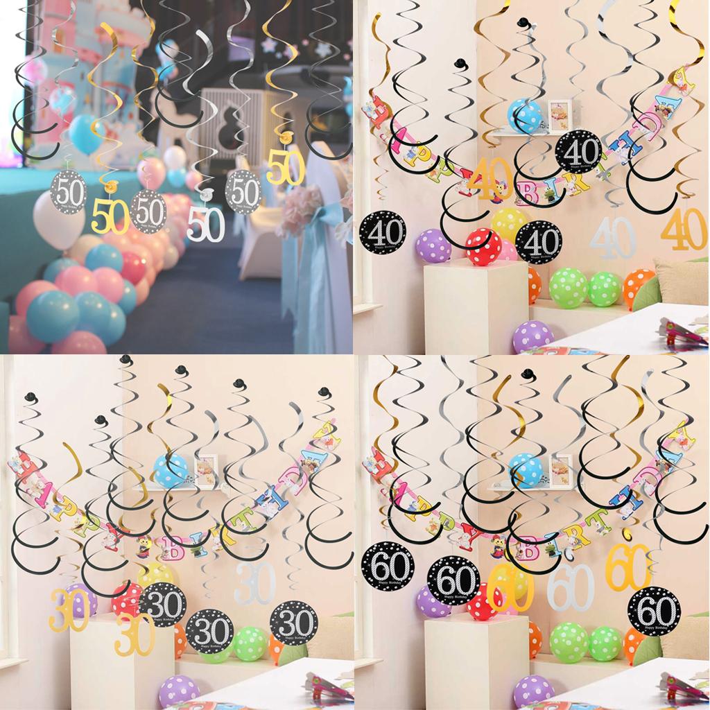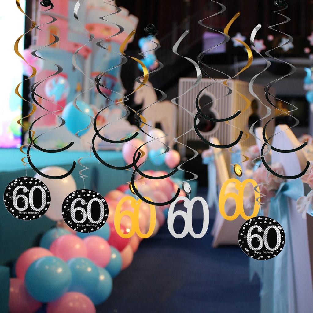12pcs Digital Birthday Anniversary Celebration Hanging Swirls Party Decor 60