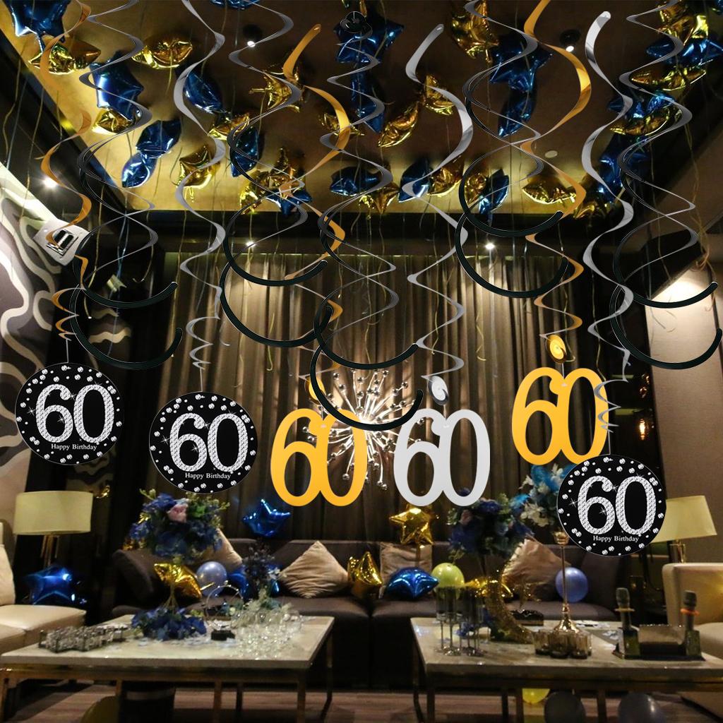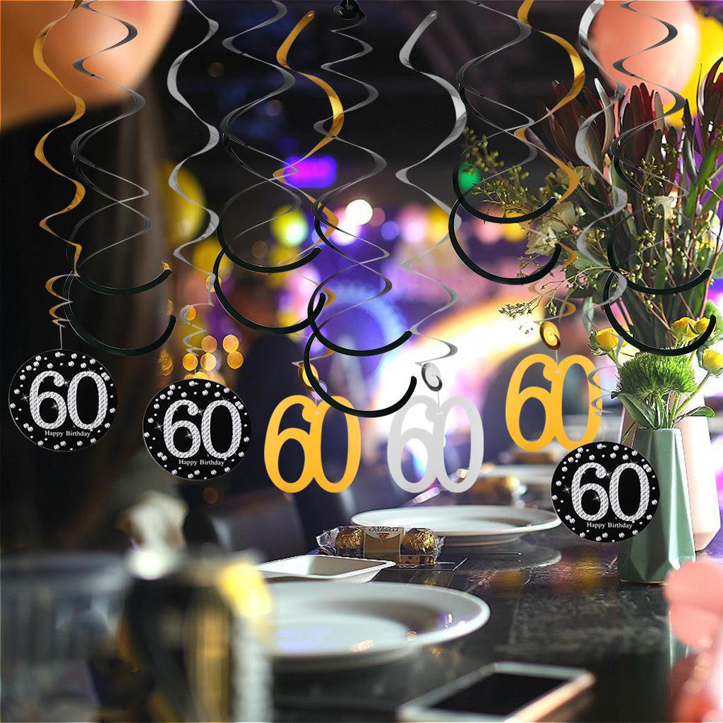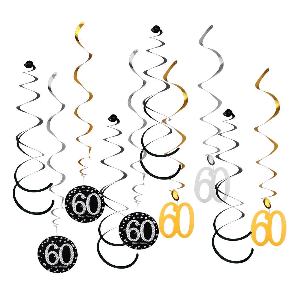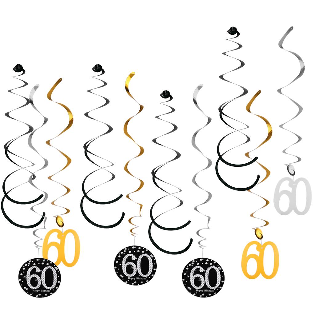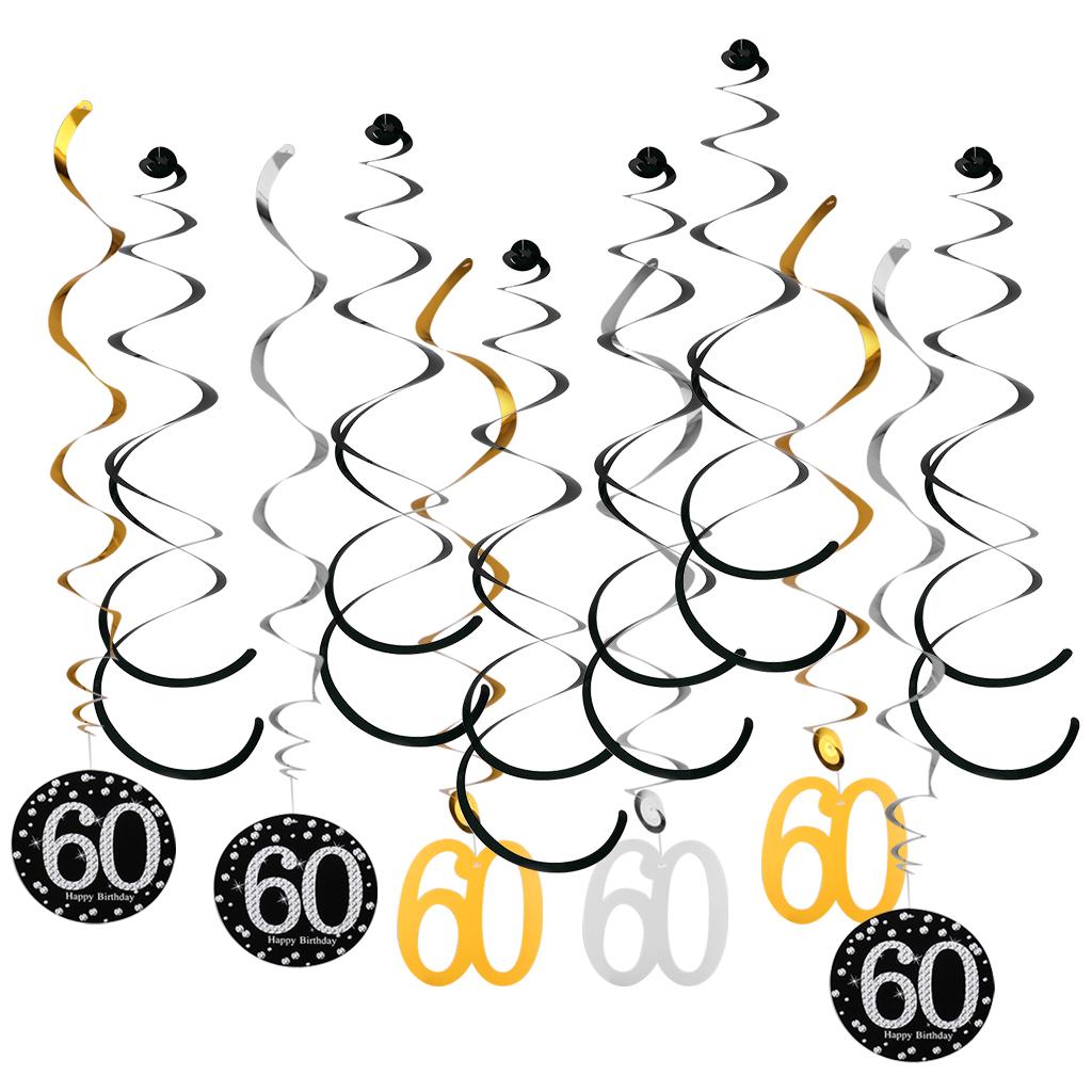 12pcs Digital Birthday Anniversary Celebration Hanging Swirls Party Decor 60