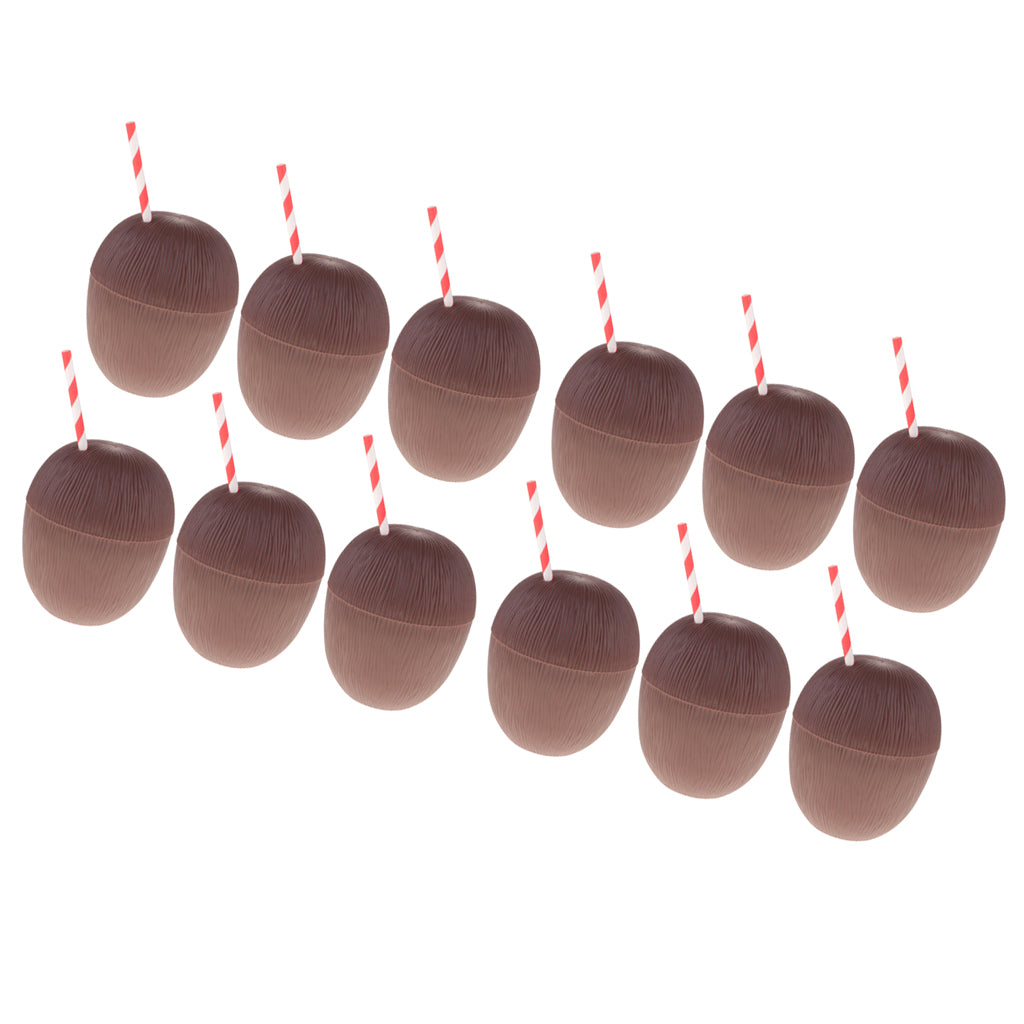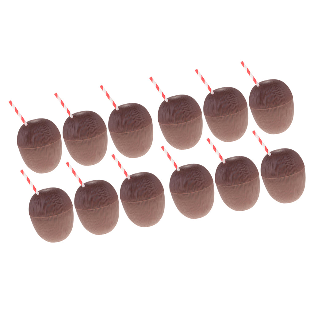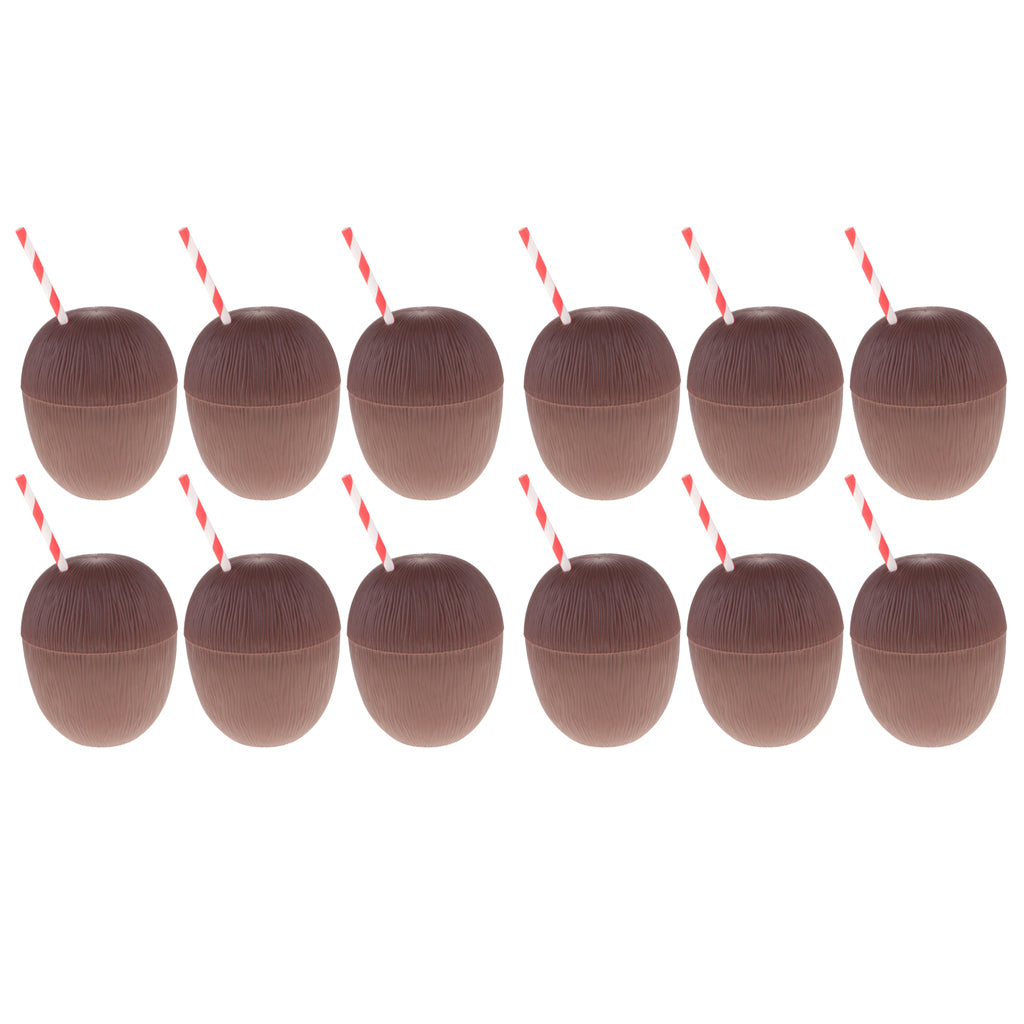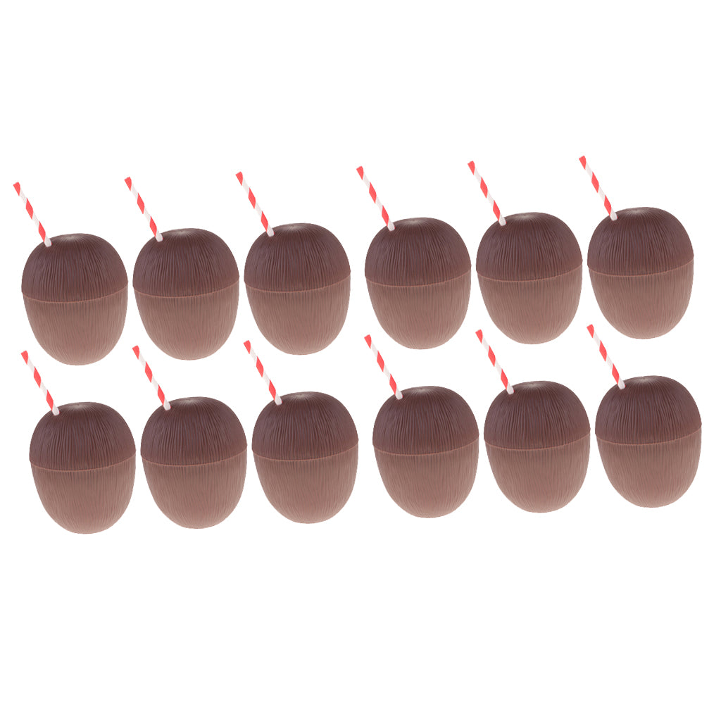 12xPlastic Tropical Coconut Drinking Cup Straw Hawaii Luau Beach Party Decor