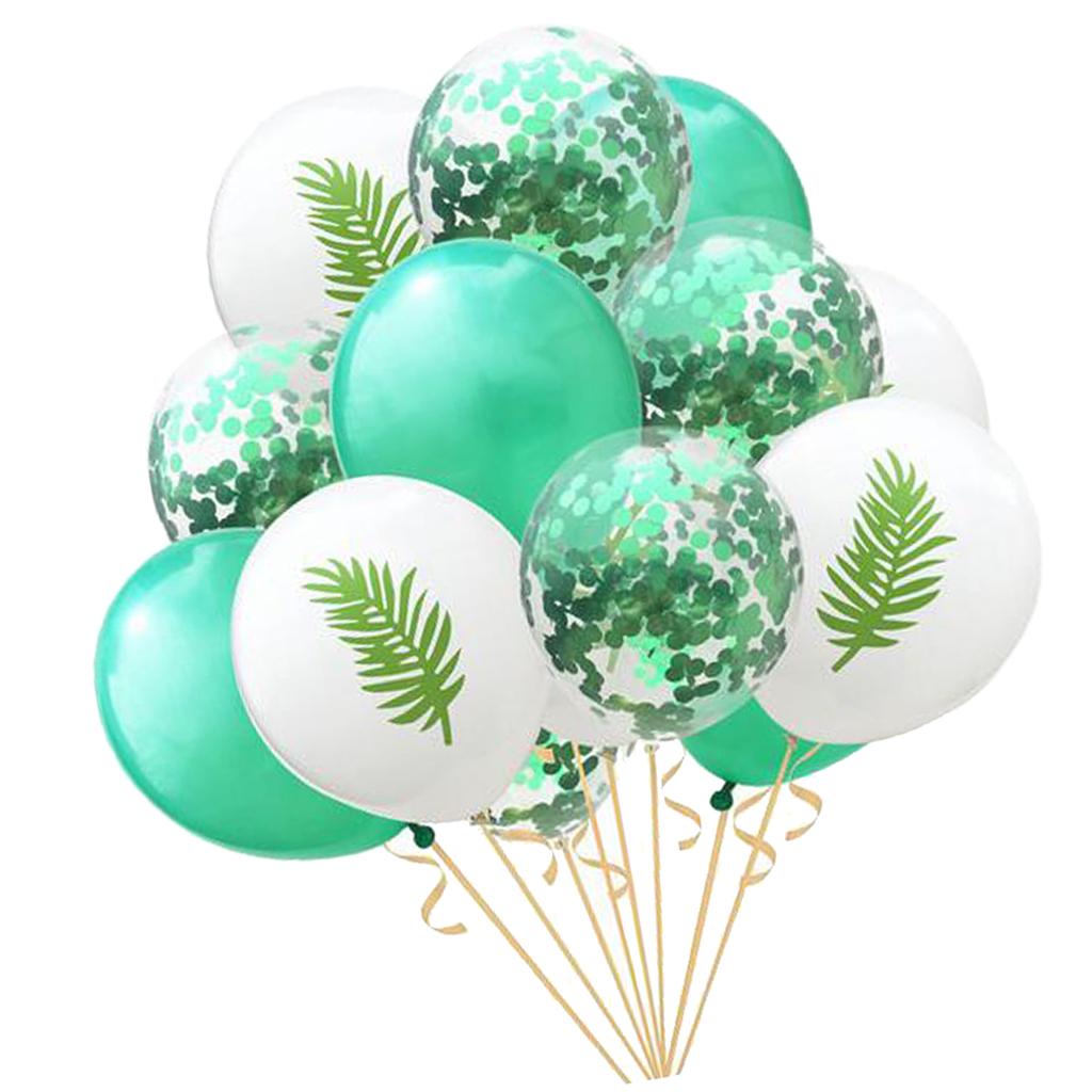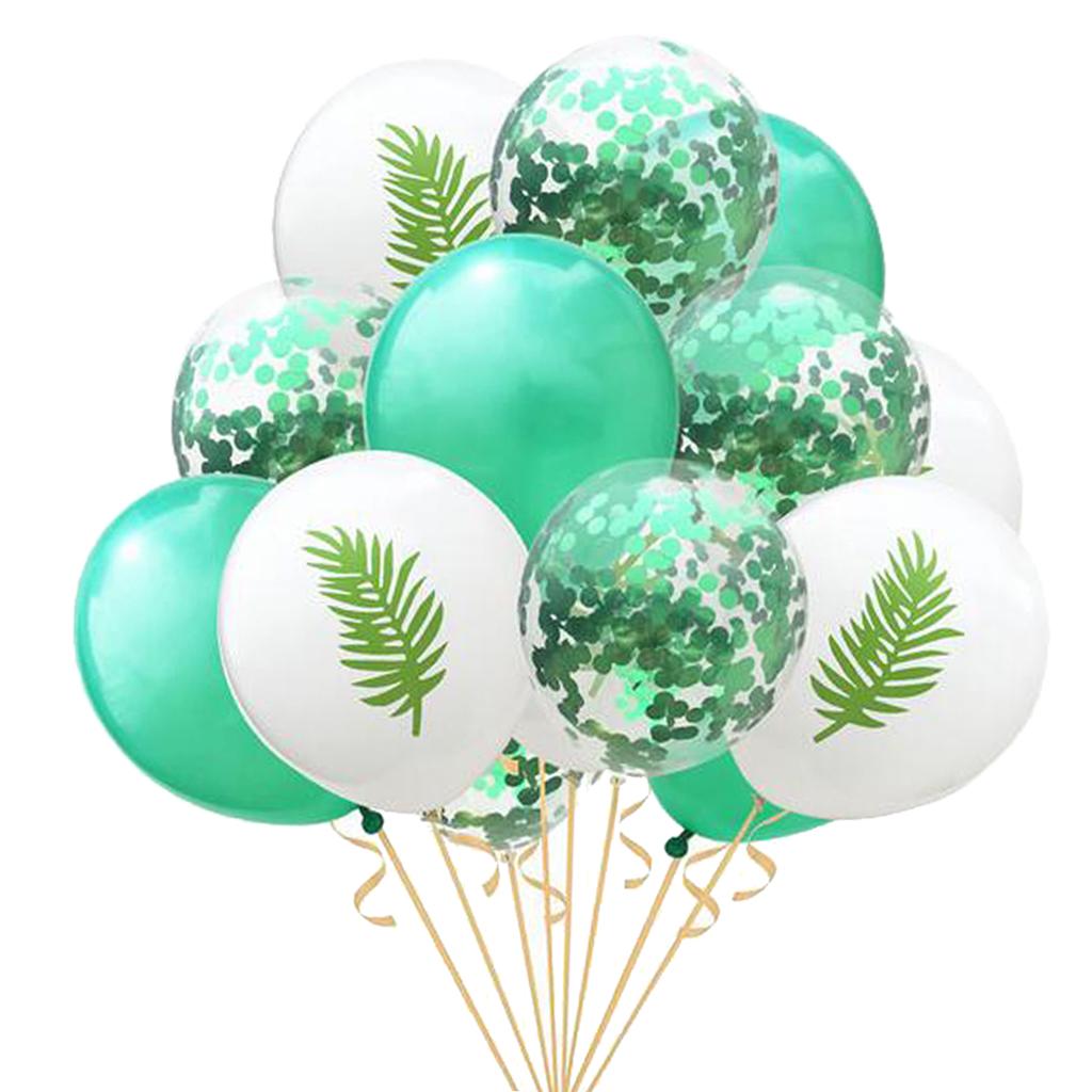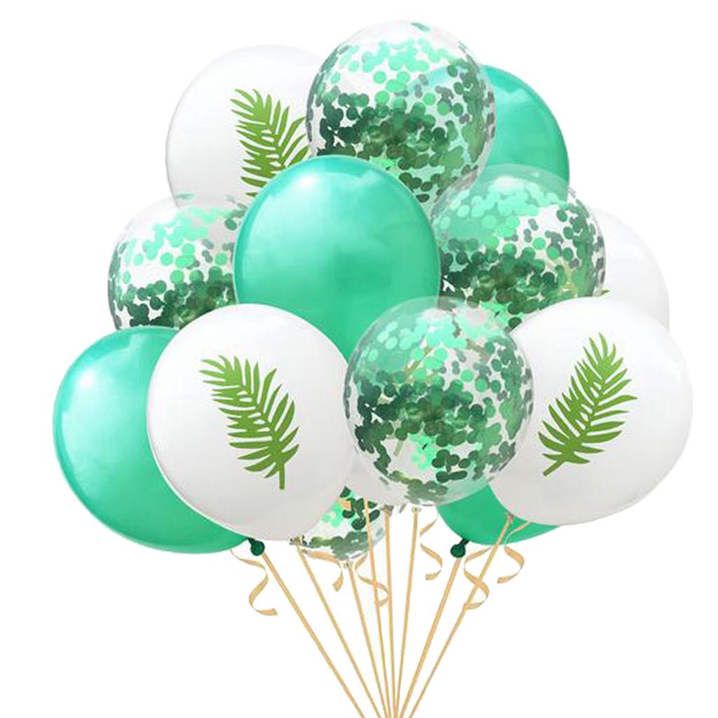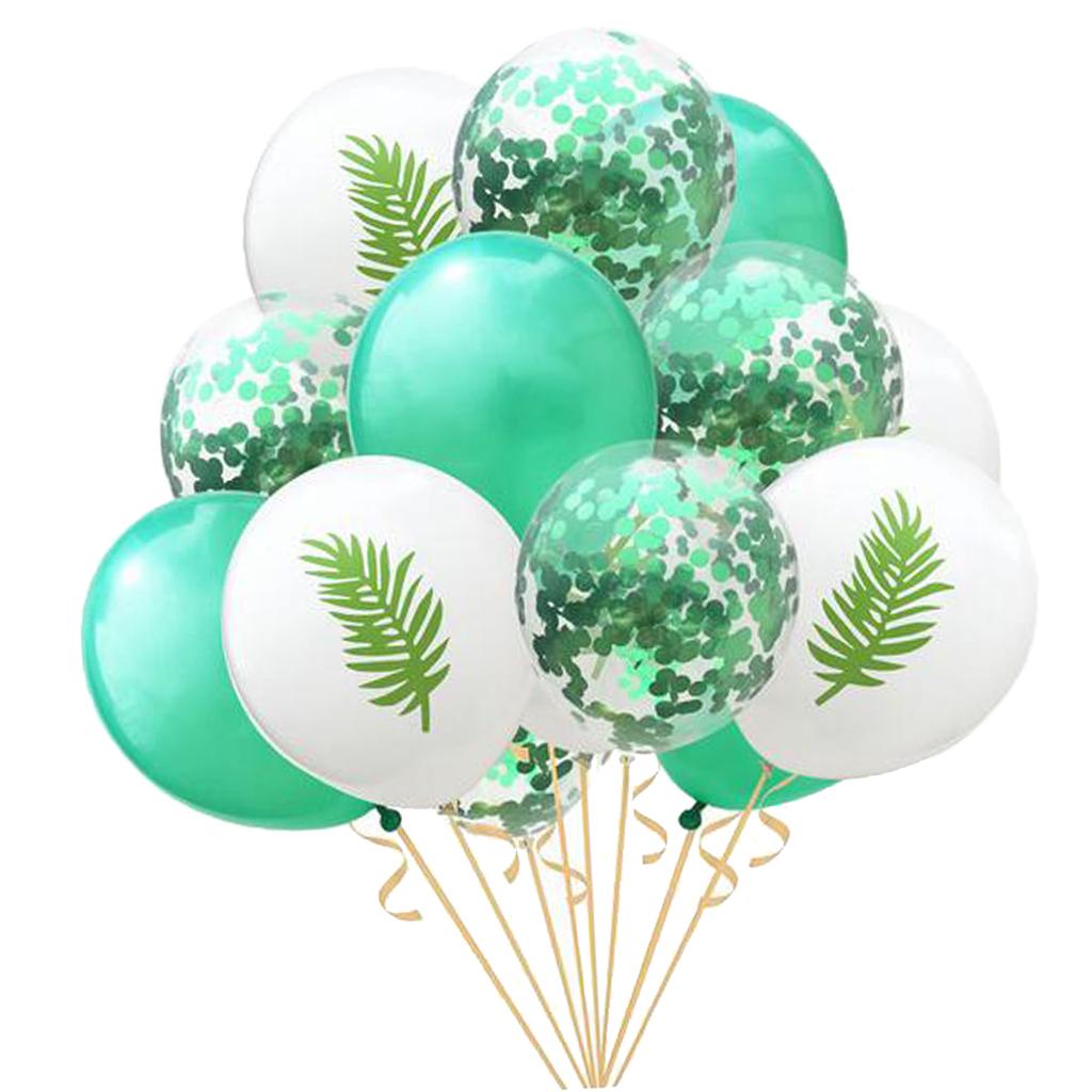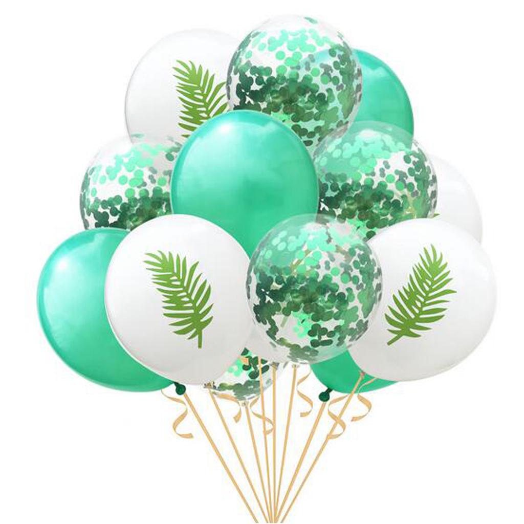 15 Pieces Assorted Balloons, inclued 5pcs confetti balloons, 5pcs different patterns(Flamingo, Leaf, Pineapple)and 5pcs solid color balloons.
