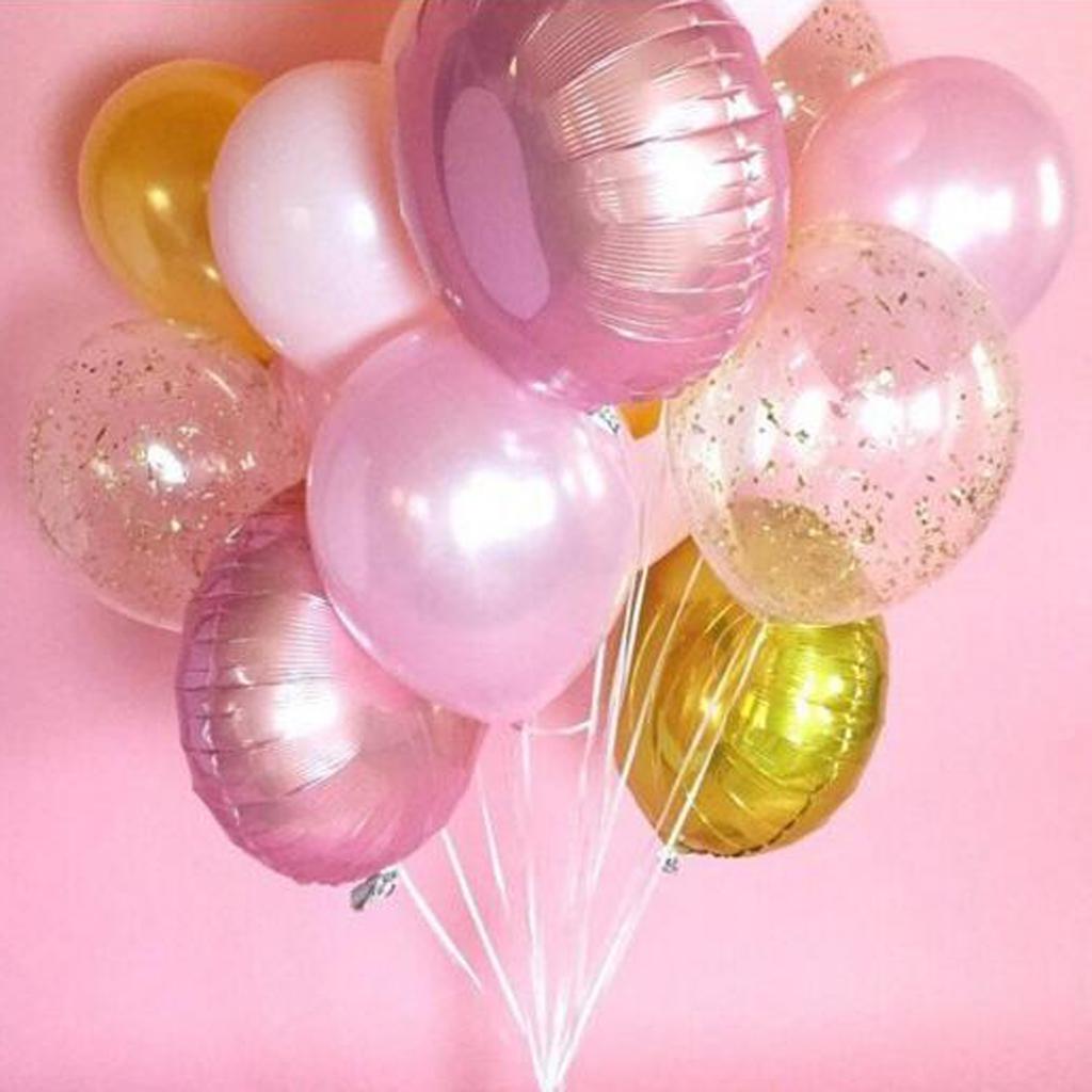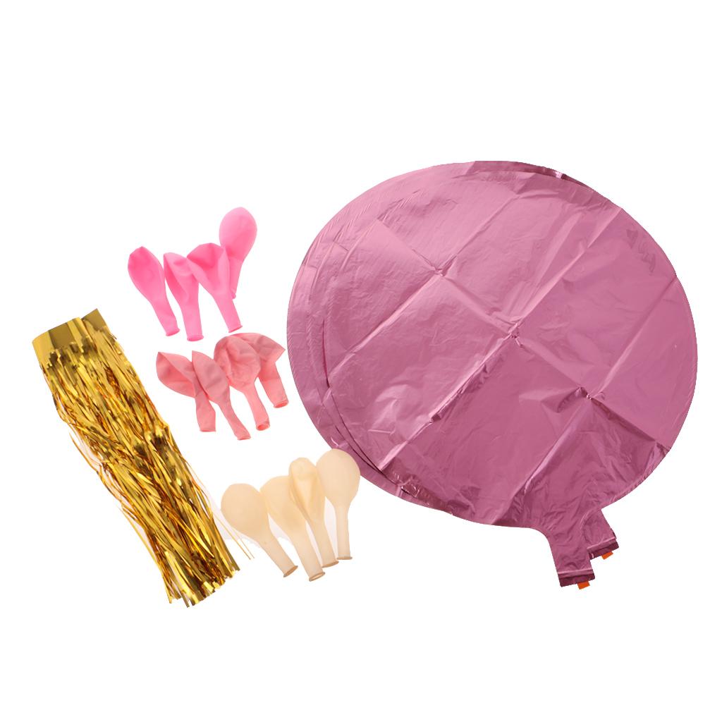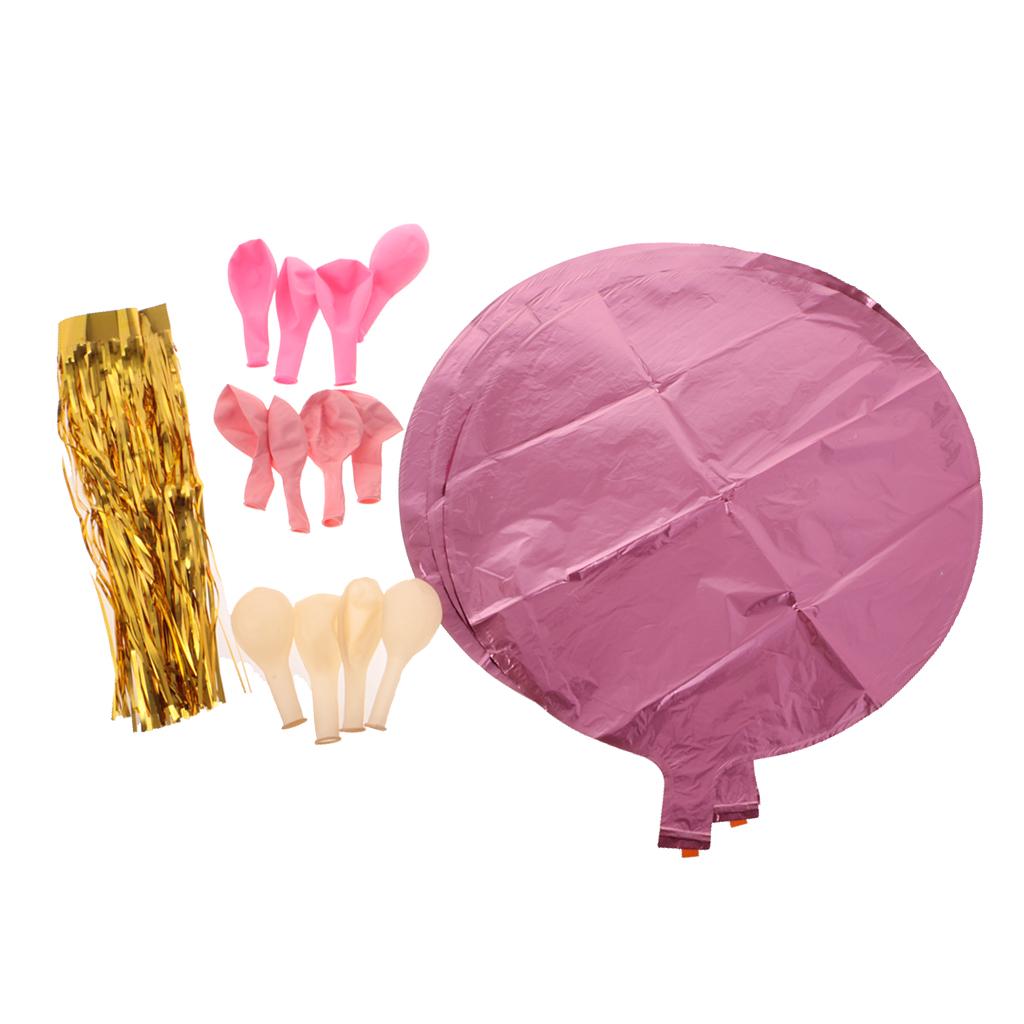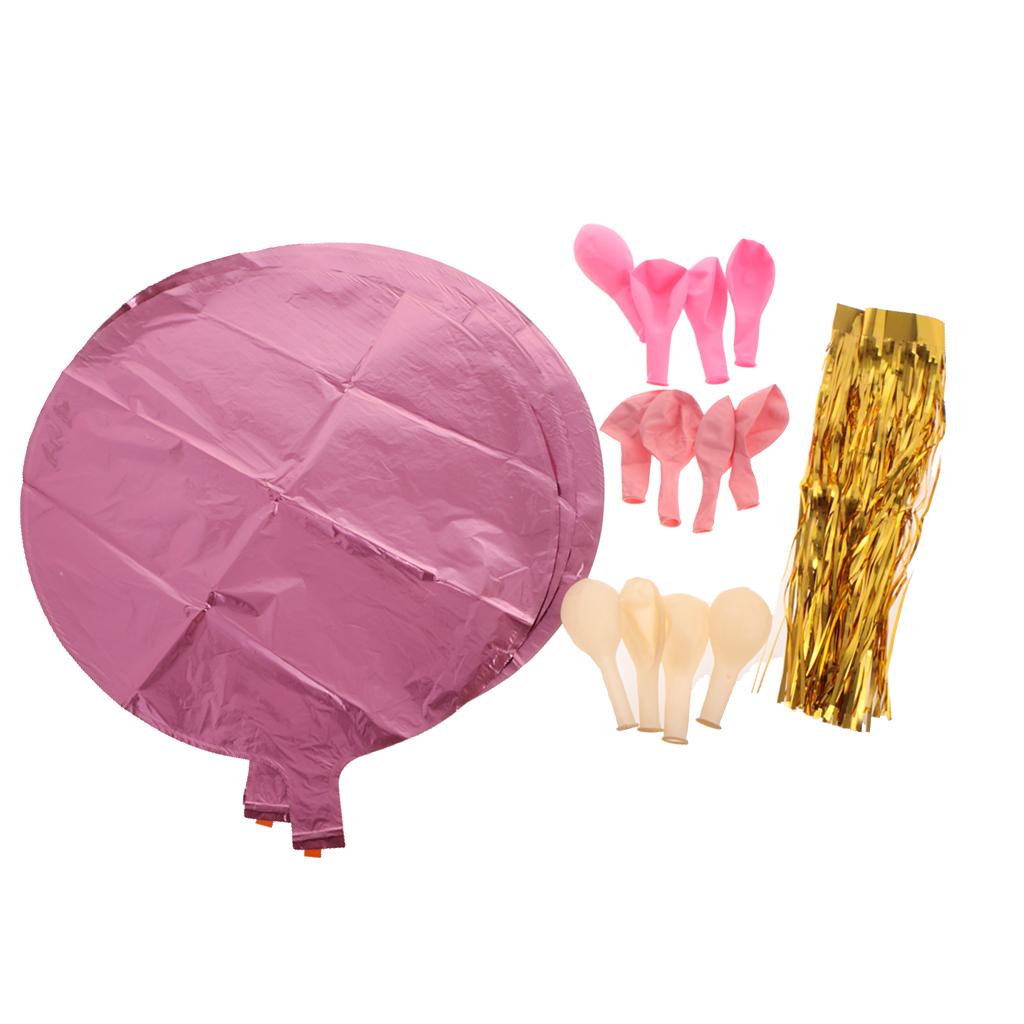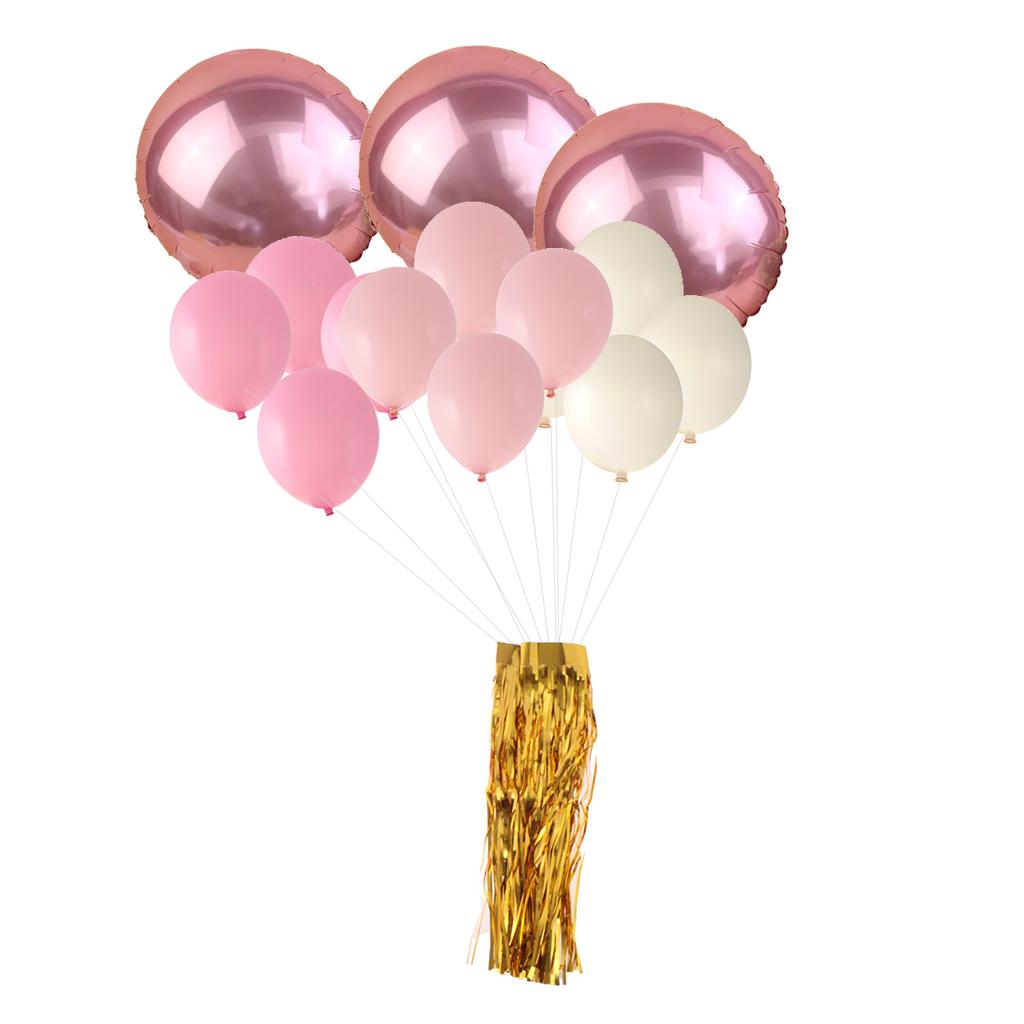 3 pieces of large pink foil balloons, 12 pieces of latex balloons (light pink, deep pink and clear, each color 4 pieces)