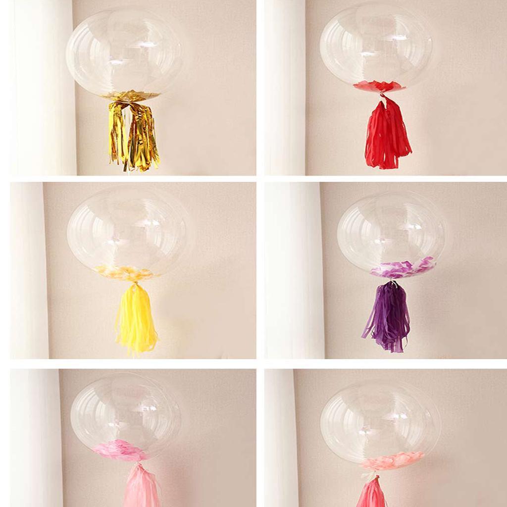 18" Transparent Bobo Balloon Roseleaf Tassel Balloon Accessories Red