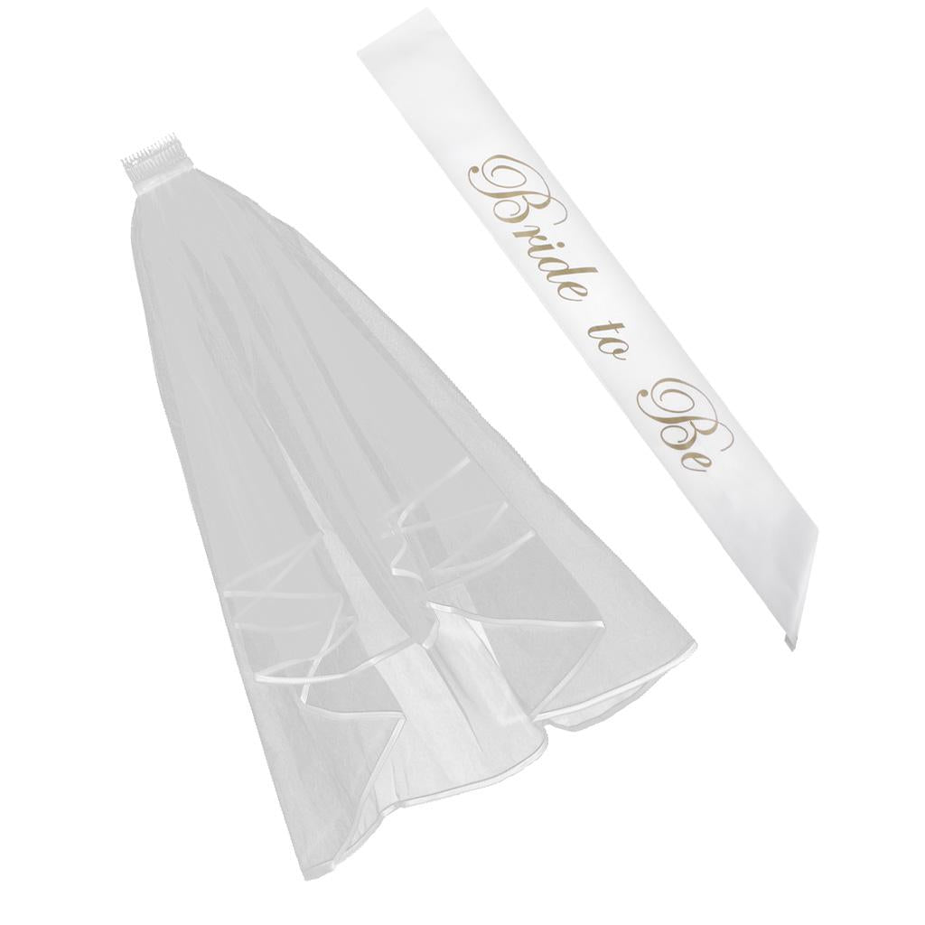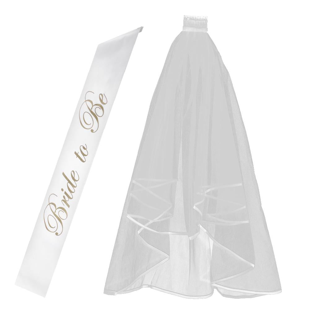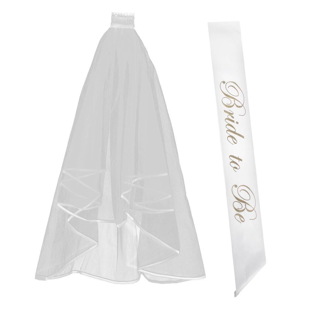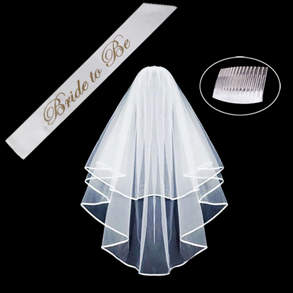 2 Layer Wedding Veil with Comb and Bride to be Satin Sash Party Decoration
