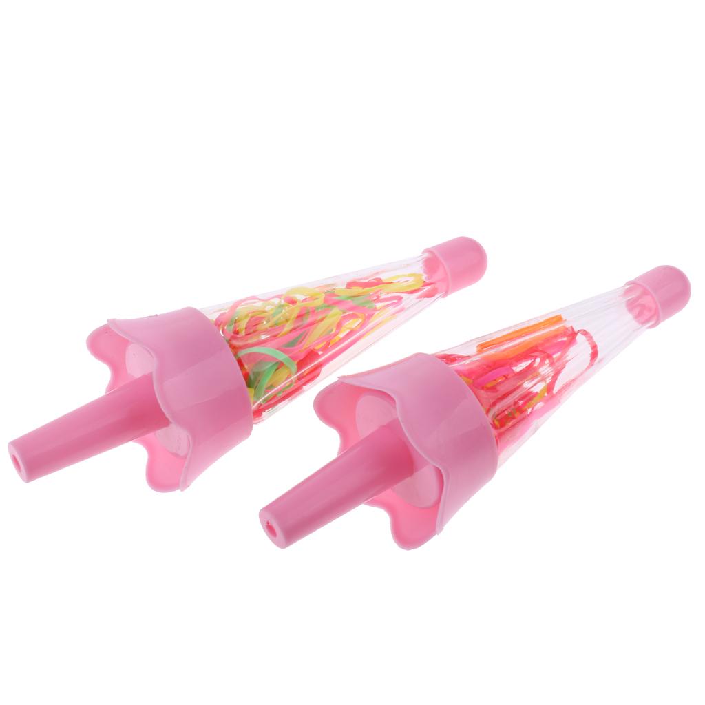 2 Set Mixed Color Elastic Rubber Bands Provided in a Pink Umbrella Shaped Box