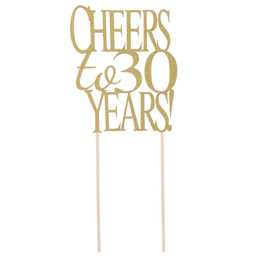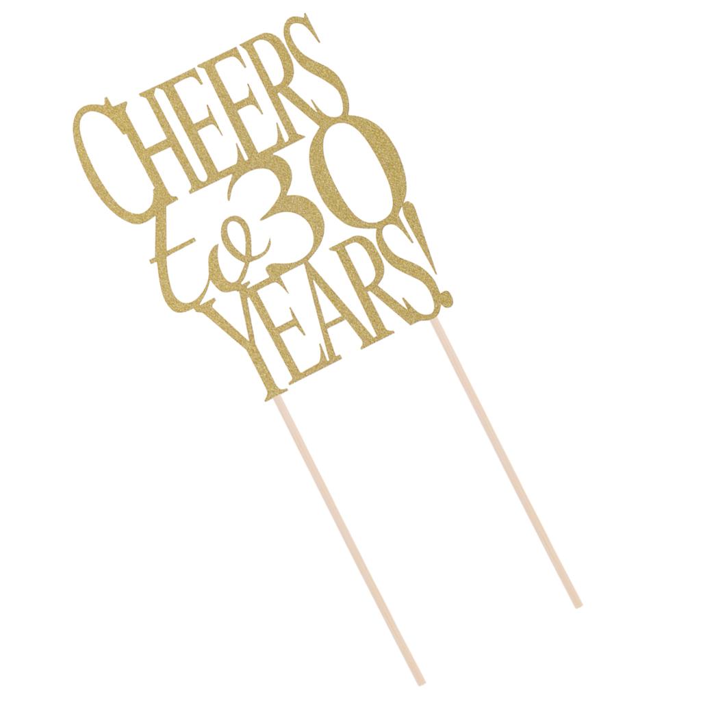 Glitter non-toxic cheers to 30 years letters design cake topper for 30 years birthday or anniversary decoration