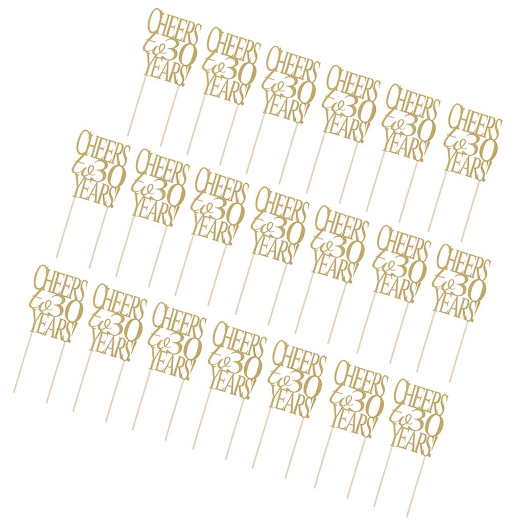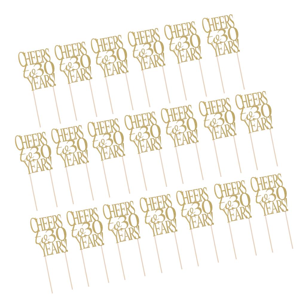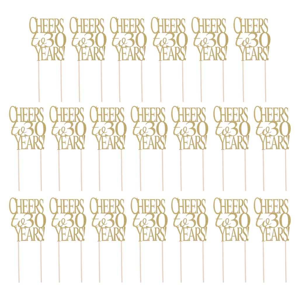 20 Pieces Cheers to 30 Years Cake Topper for Birthday Anniversary Gold