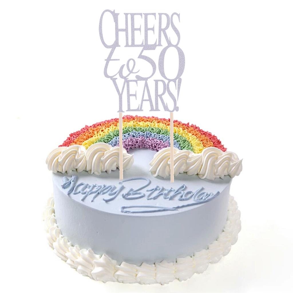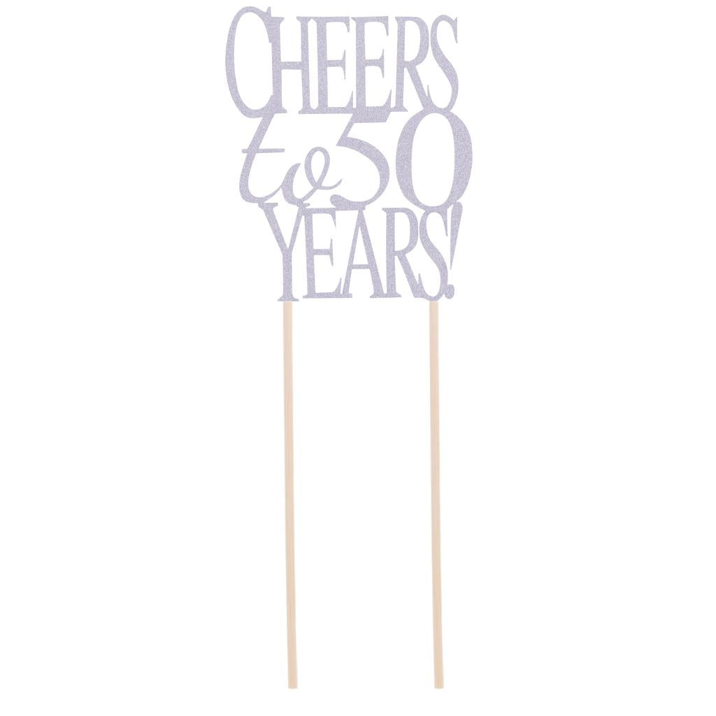 Glitter non-toxic cheers to 50 years letters design cake topper for 50 years birthday or anniversary decoration
