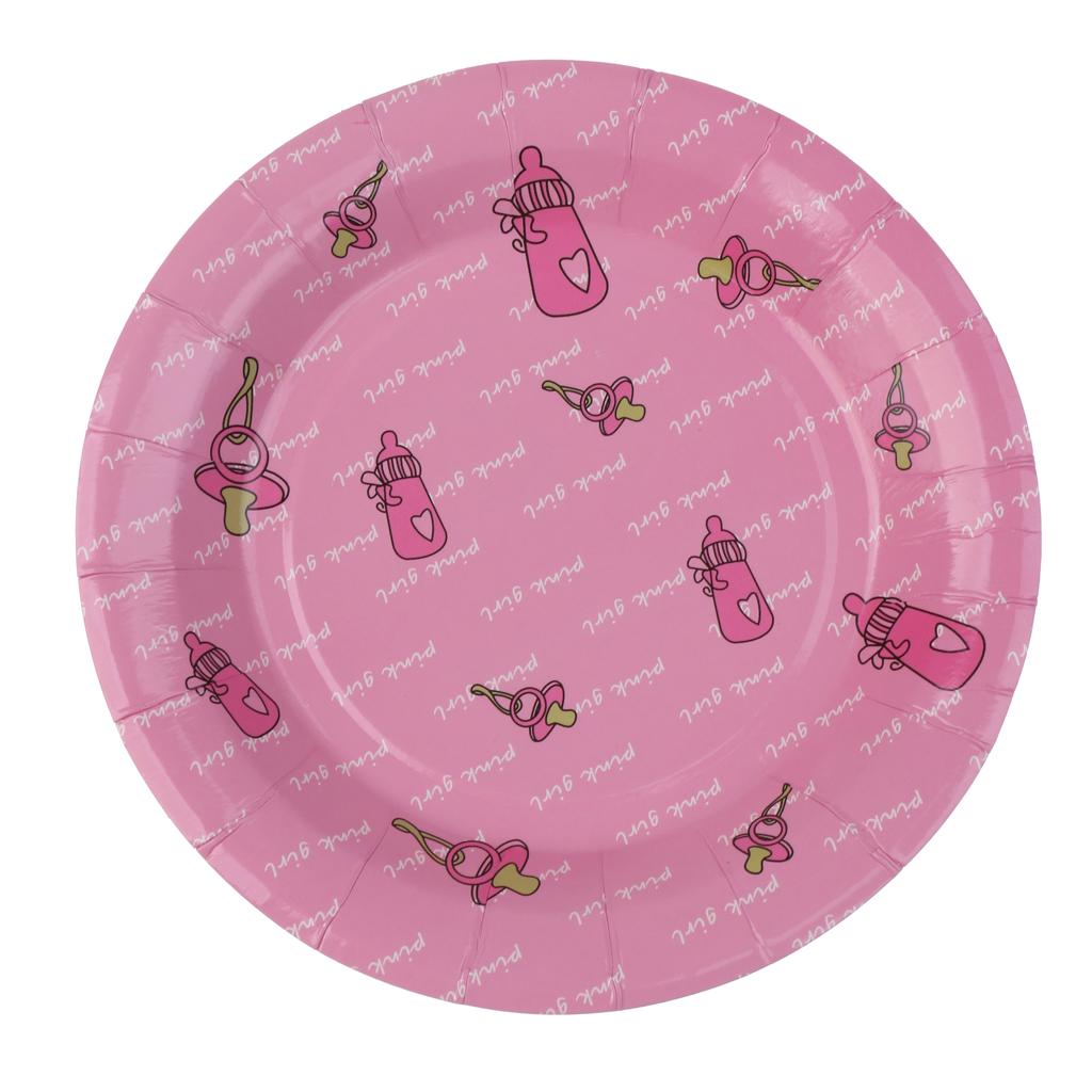 Round shape with Feeding Bottles Pacifiers Pattern Paper Plates