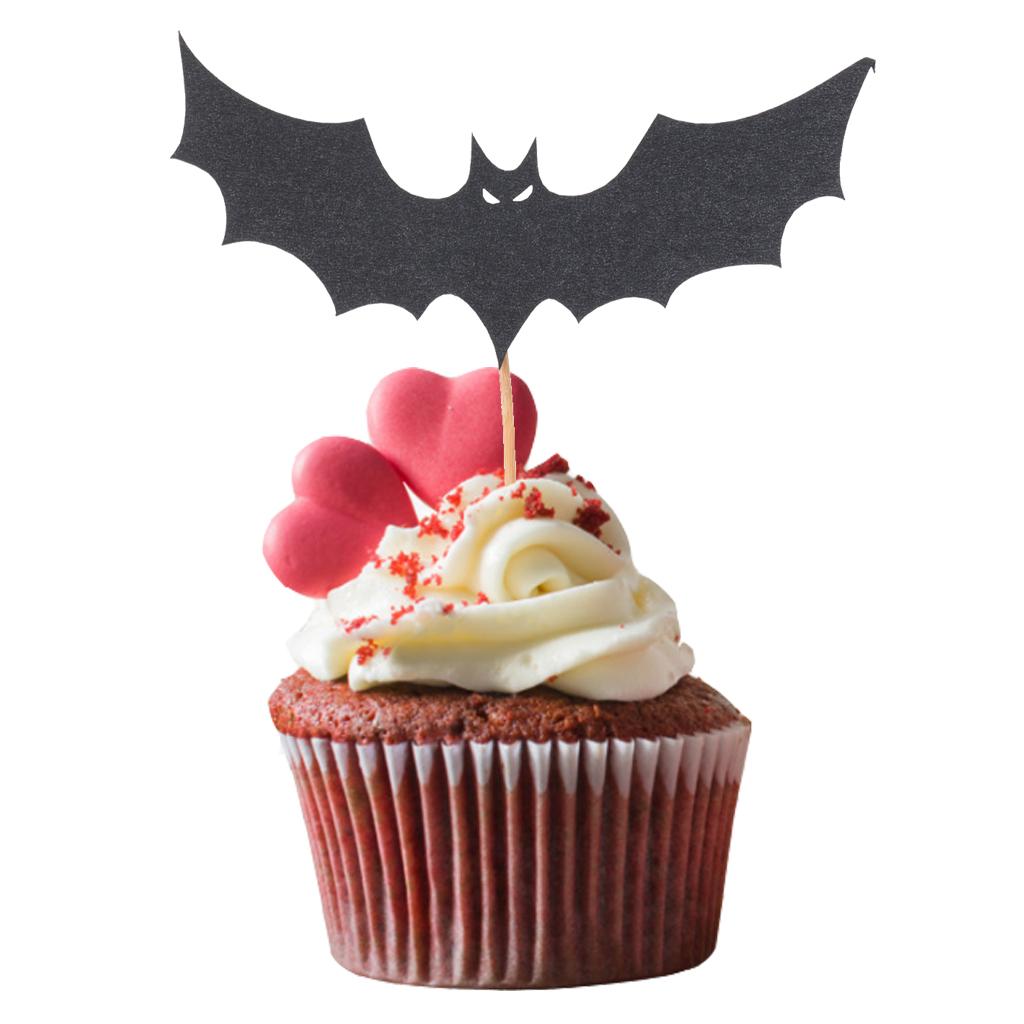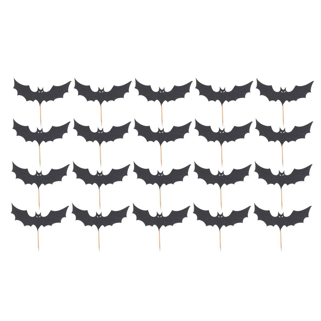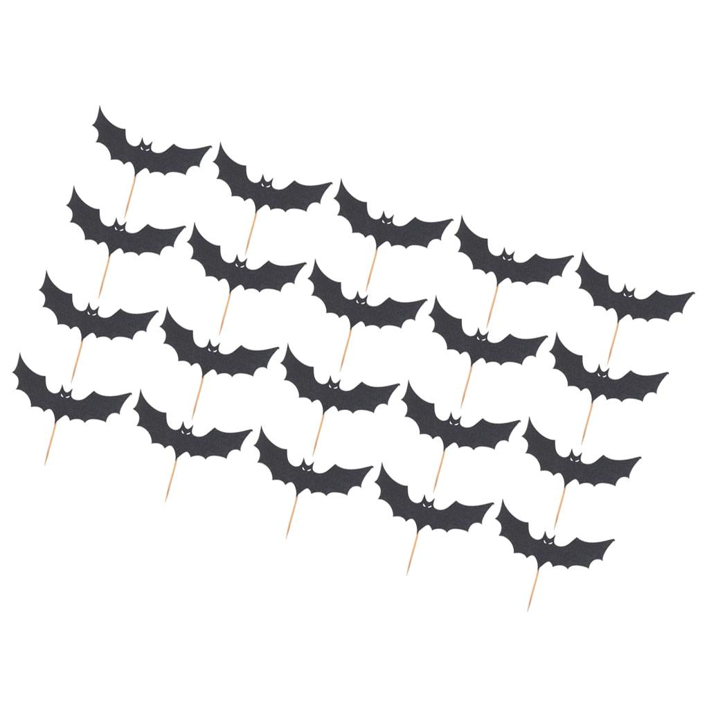 20 Pieces Halloween Bat Shape Festive Cake Topper Cupcake Picks Decor Black