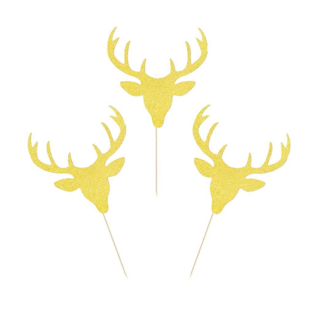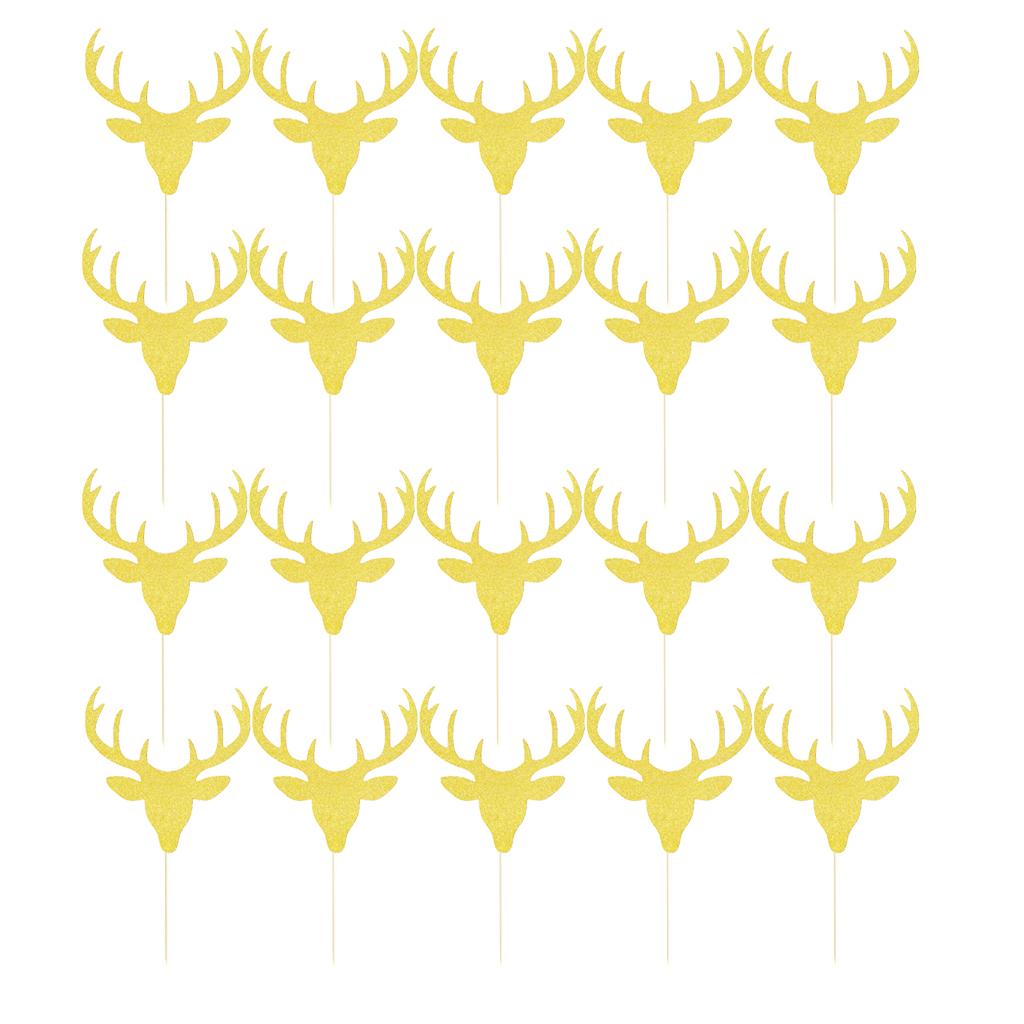 20 Pieces Reindeer Cake Topper Christmas Treat Party Food Picks Gold
