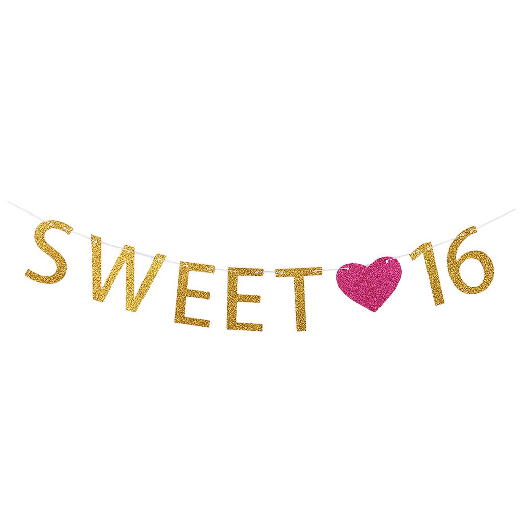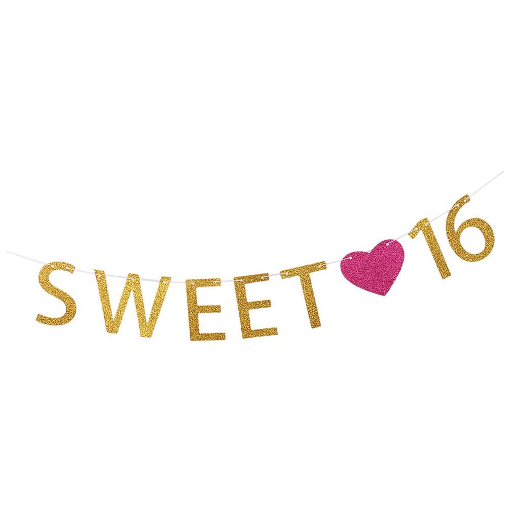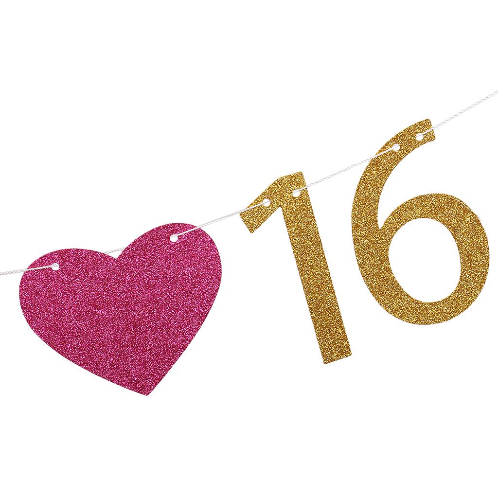 Glitter gold Sweet 16 letter number garland banner with rose heart