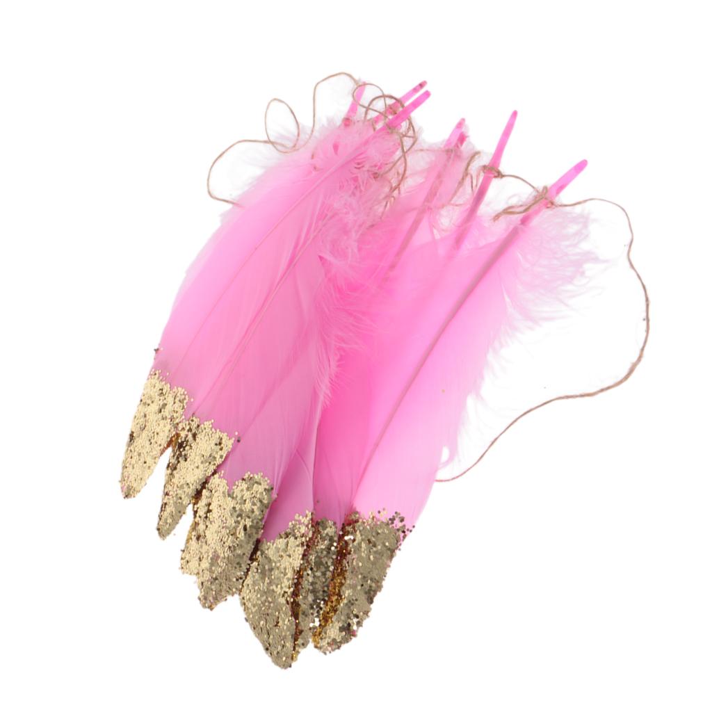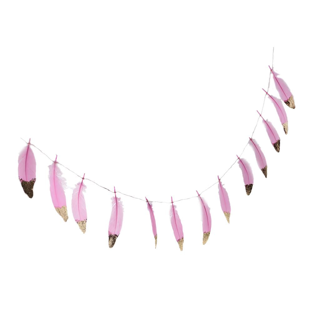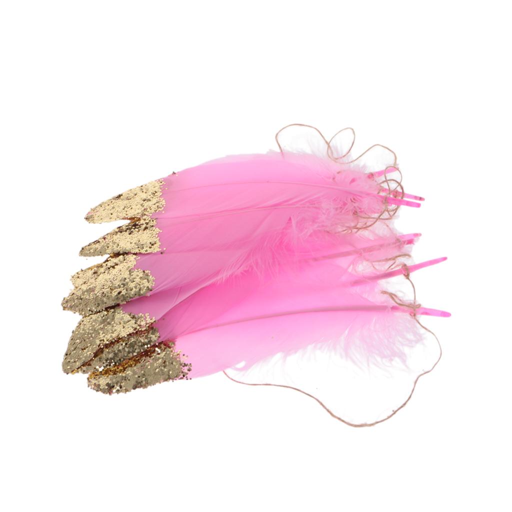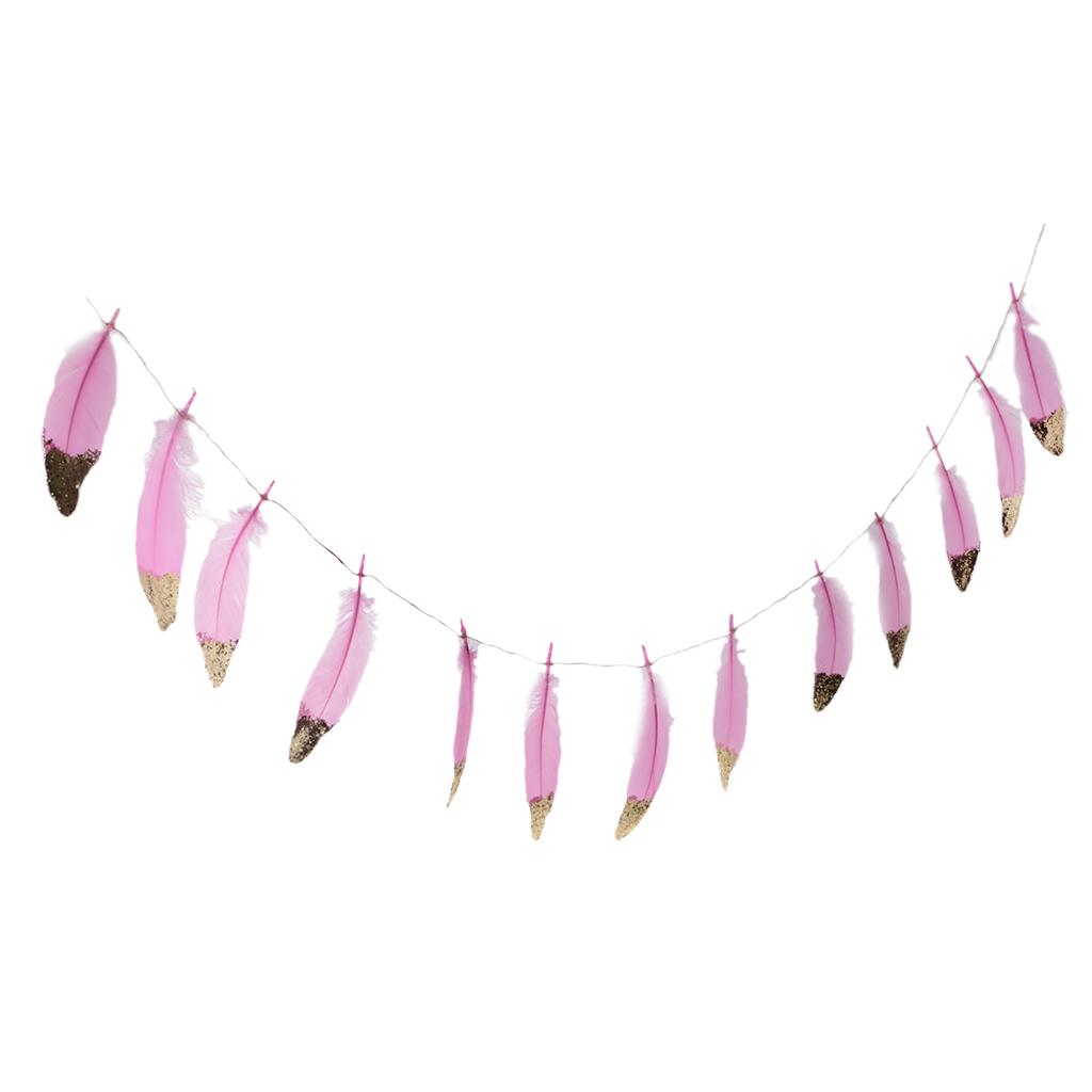 Two string of glitter gold dipped feather garlands (pink / white), 13 pieces in total